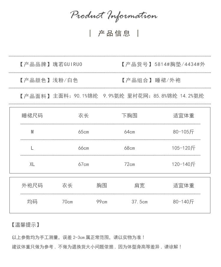 5814 white (nightgown), 4434 white (outer robe), 5814 light pink (nightgown), 4434 pink (outer robe)