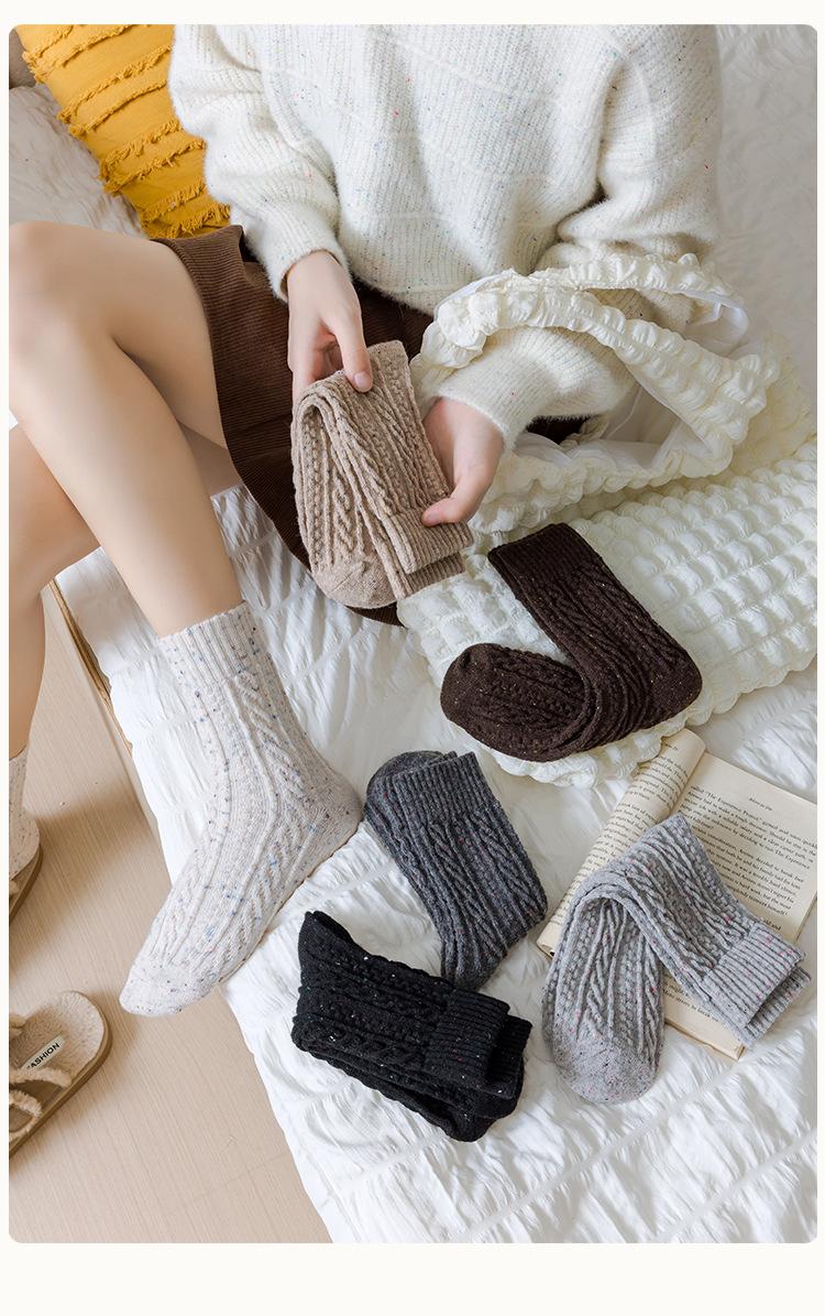 Calcetines Gruesos de Lana para Mujer hasta Media Pantorrilla Otoño e Invierno Extra Gruesos Cálidos de Cachemira Tejido de Cable Hilo Jaspeado Calcetines Holgados Calcetines Largos
