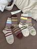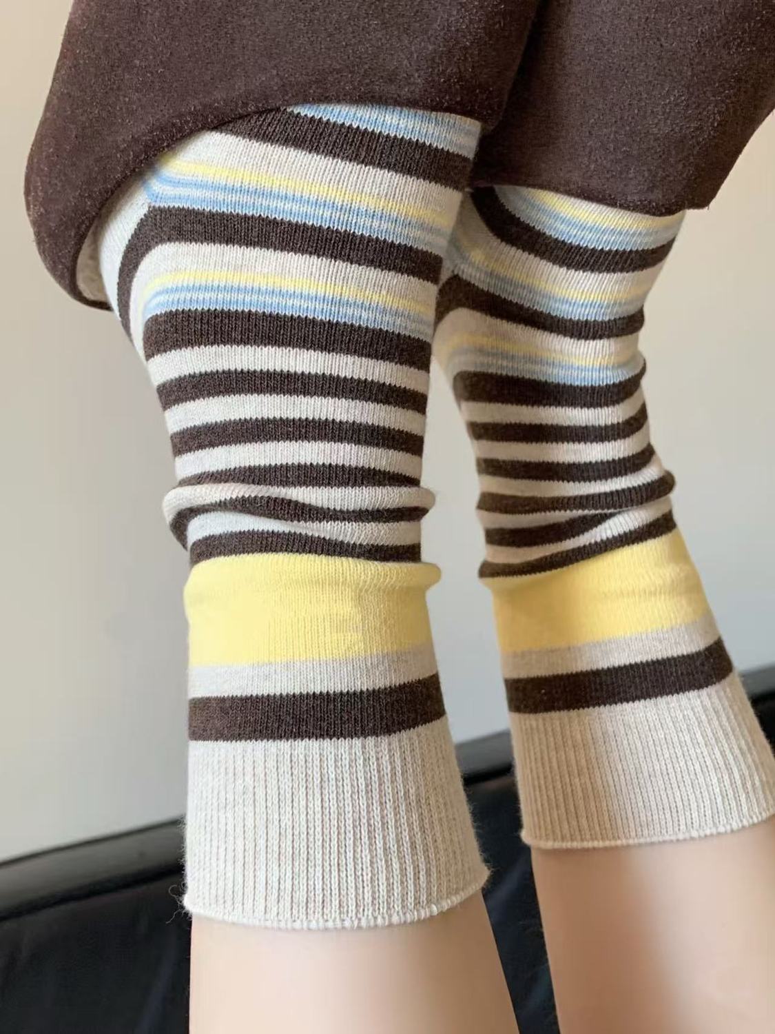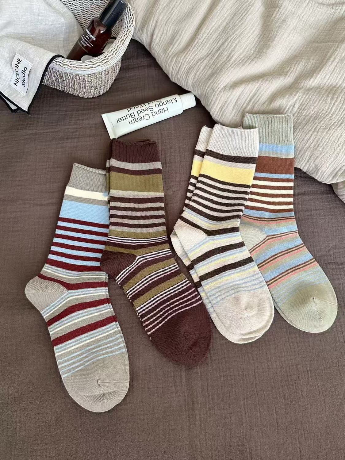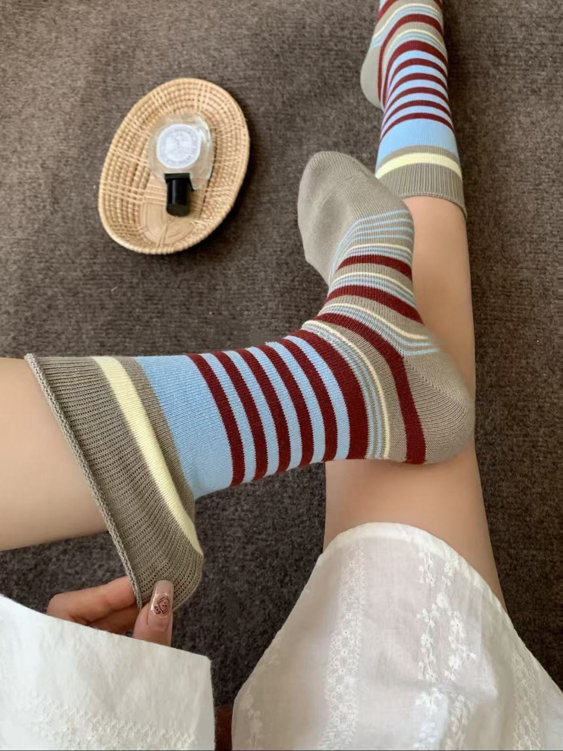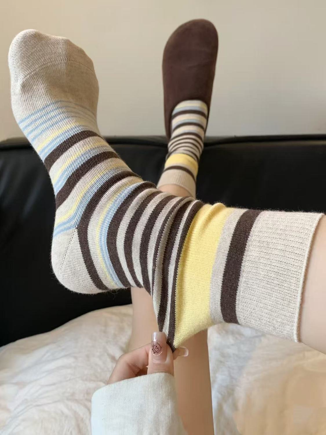Calcetines de Media Caña para Mujer de Principios de Otoño Estilo Coreano ins Retro Rayados Bloque de Color Estilo Universitario Hasta la Rodilla Tejidos Versátiles Calcetines Arrugados