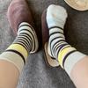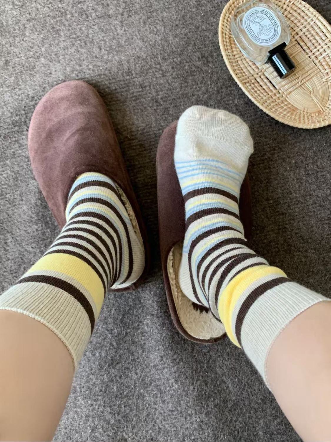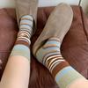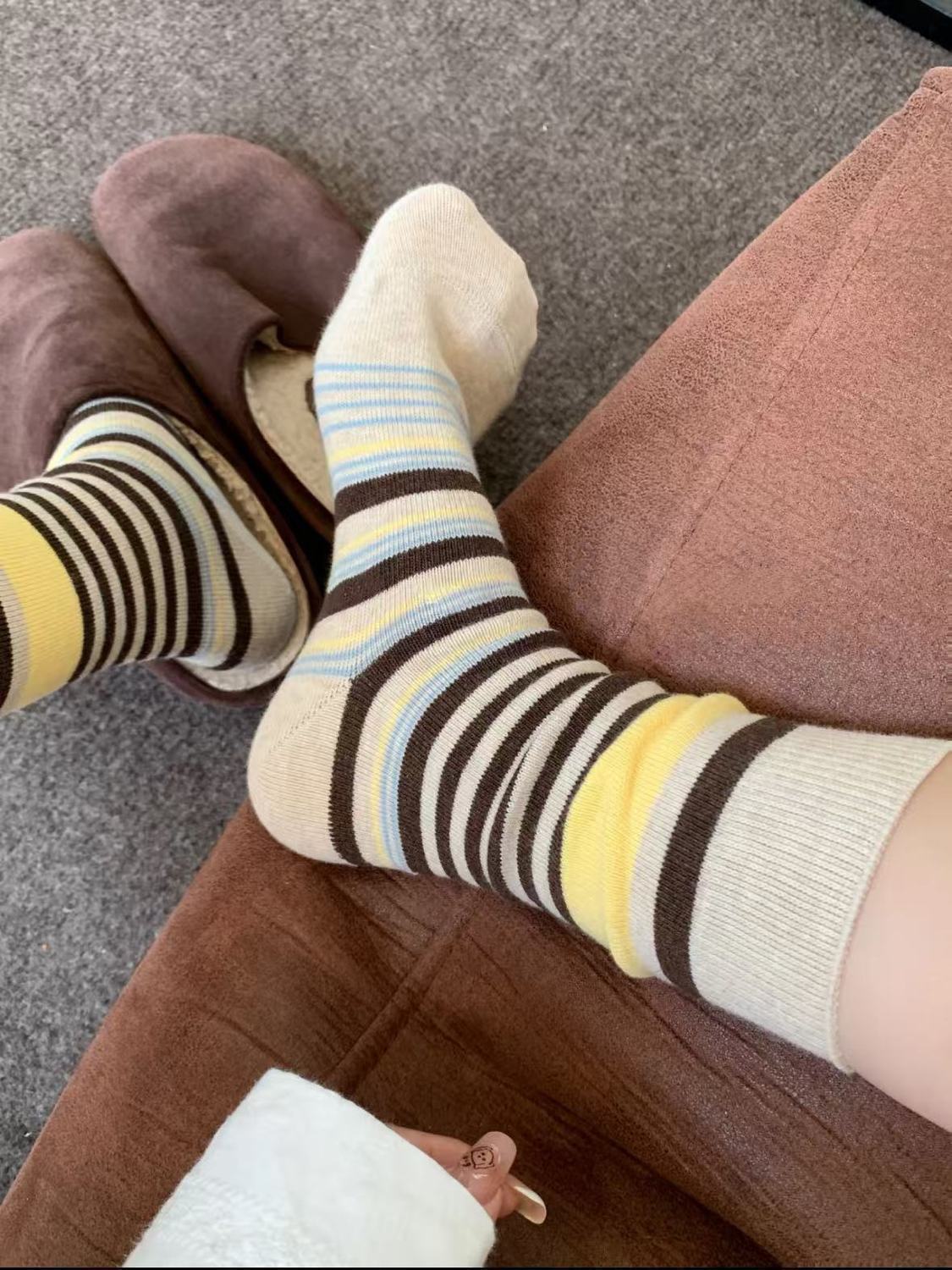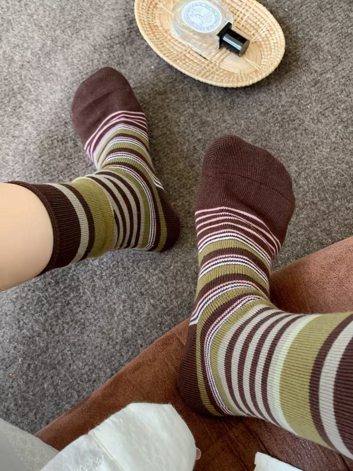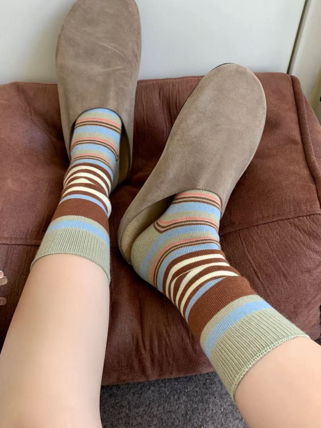 Calcetines de Media Caña para Mujer de Principios de Otoño Estilo Coreano ins Retro Rayados Bloque de Color Estilo Universitario Hasta la Rodilla Tejidos Versátiles Calcetines Arrugados
