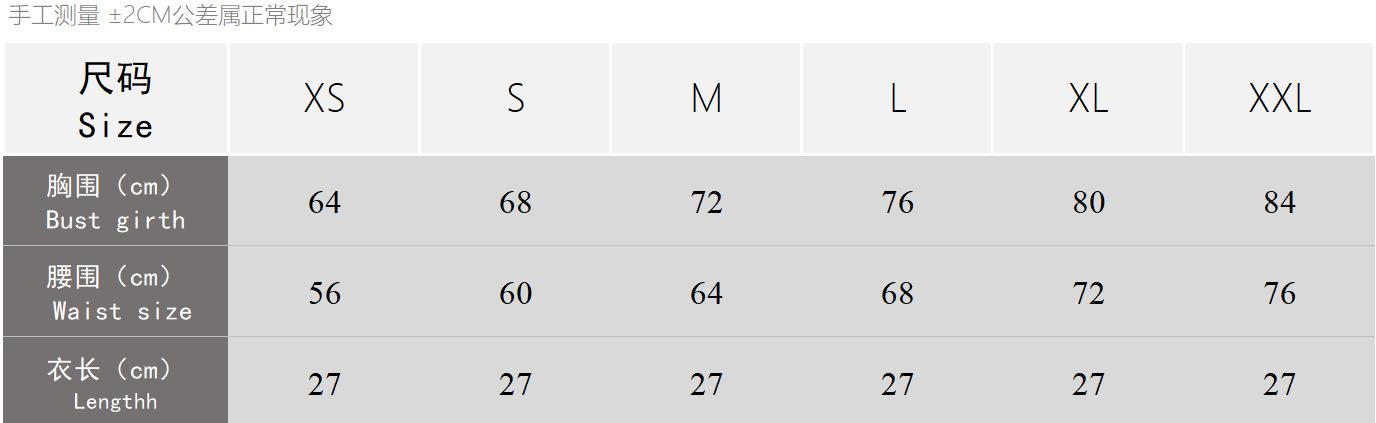 XS, S, M, L, XL, XXL