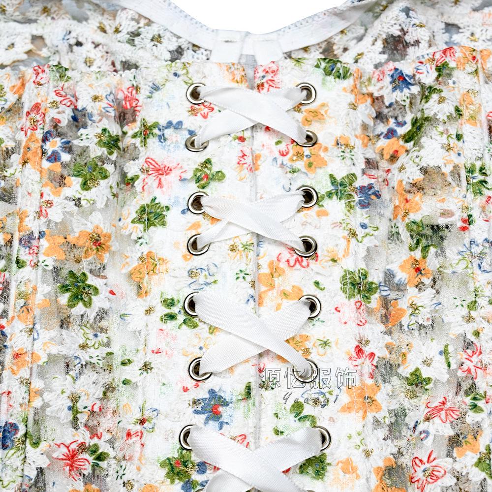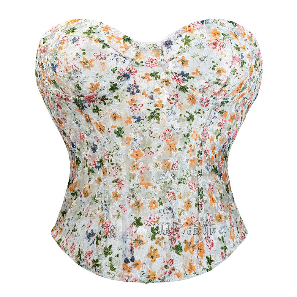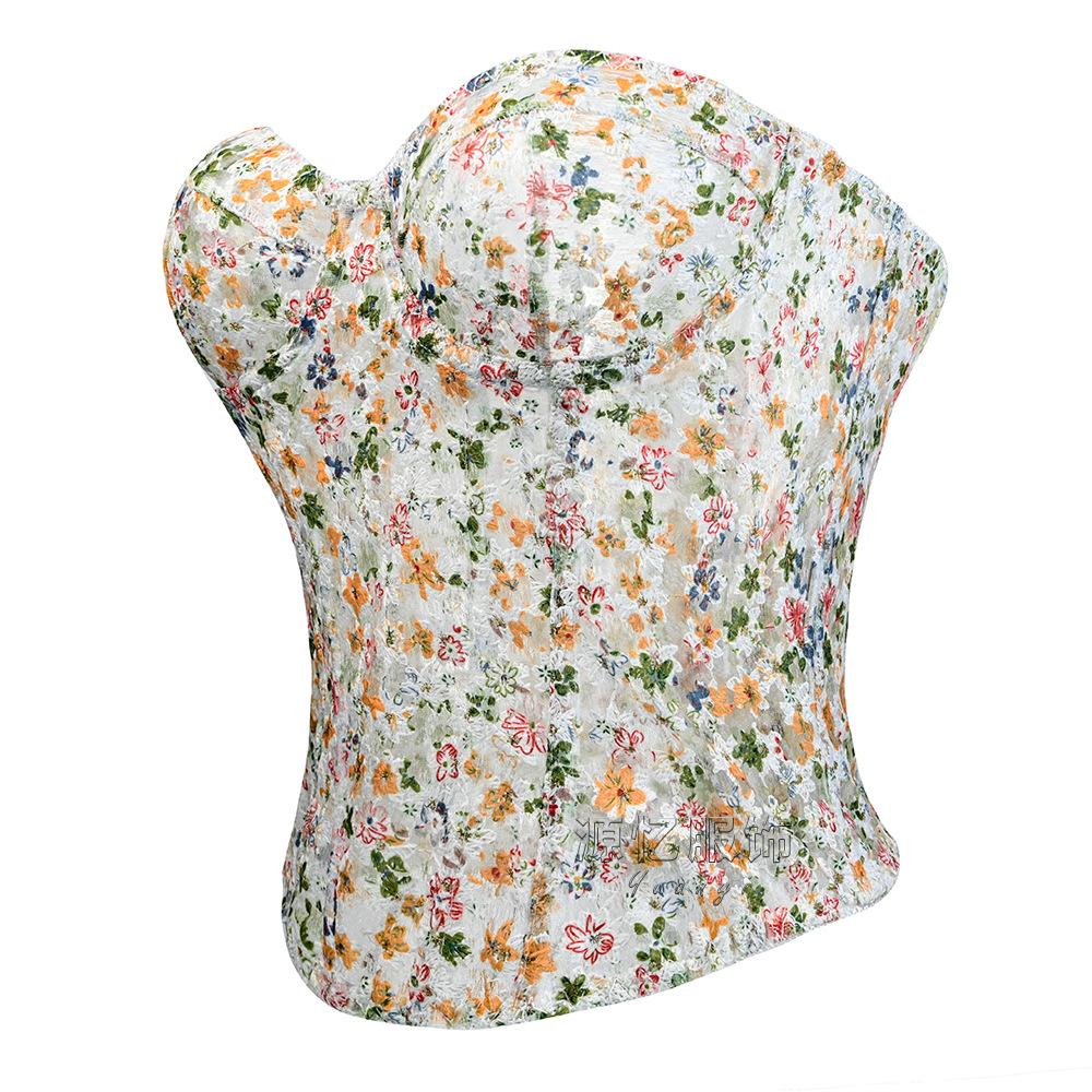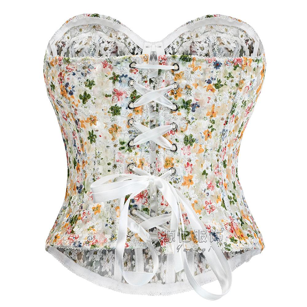 Corsé de Espina de Pescado Europeo y Americano Transfronterizo Amazon Moldeador de Abdomen Cinturilla Reductora Corsé con Varillas Floral Francés Deseo Puro Corsé Ajustado Nuevo