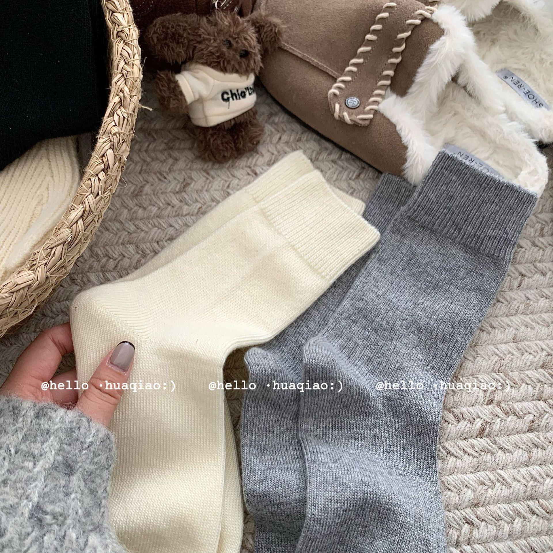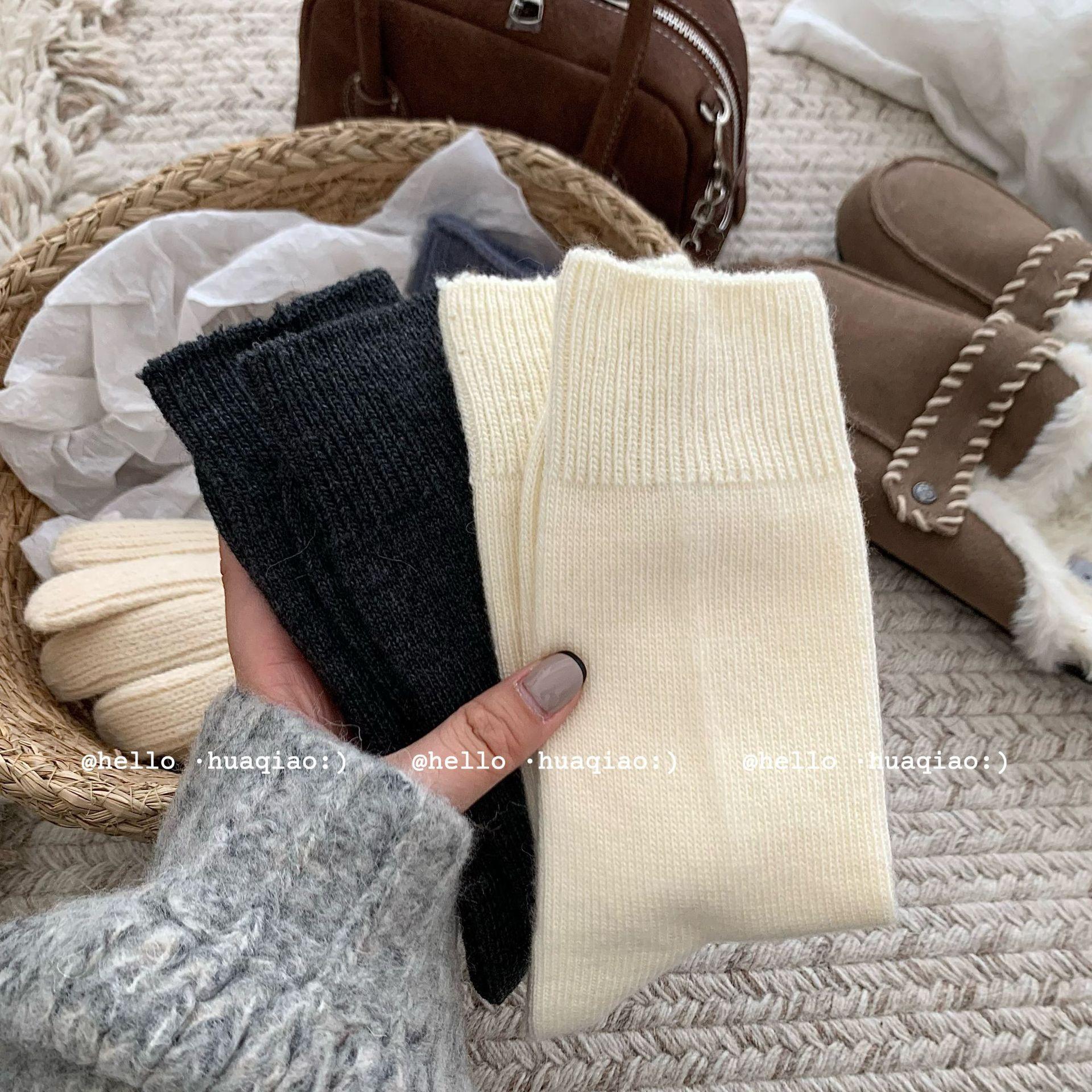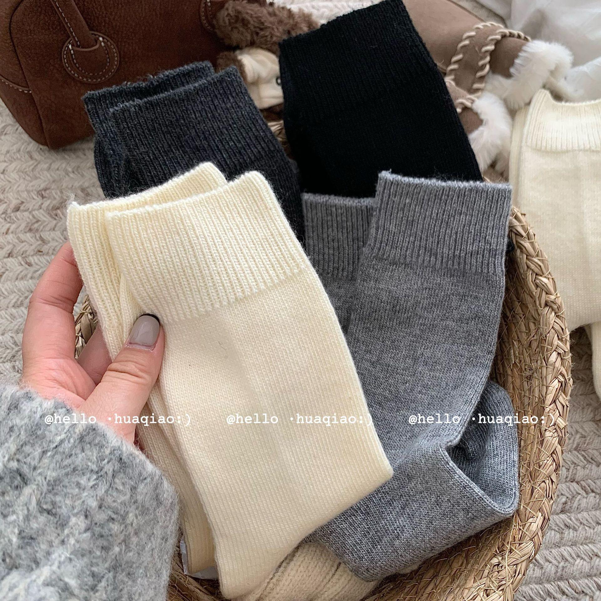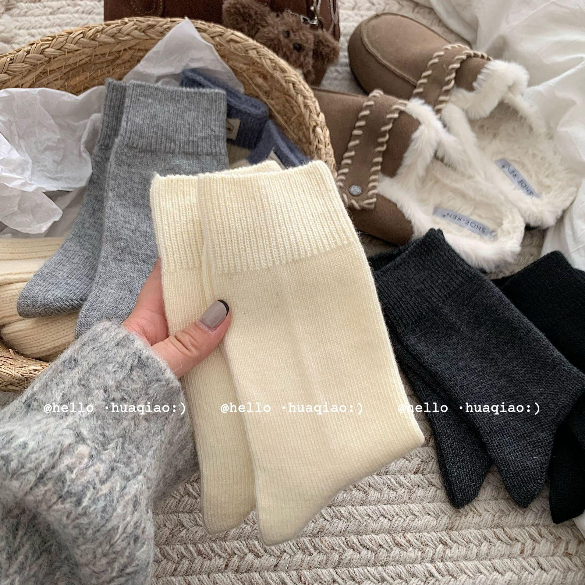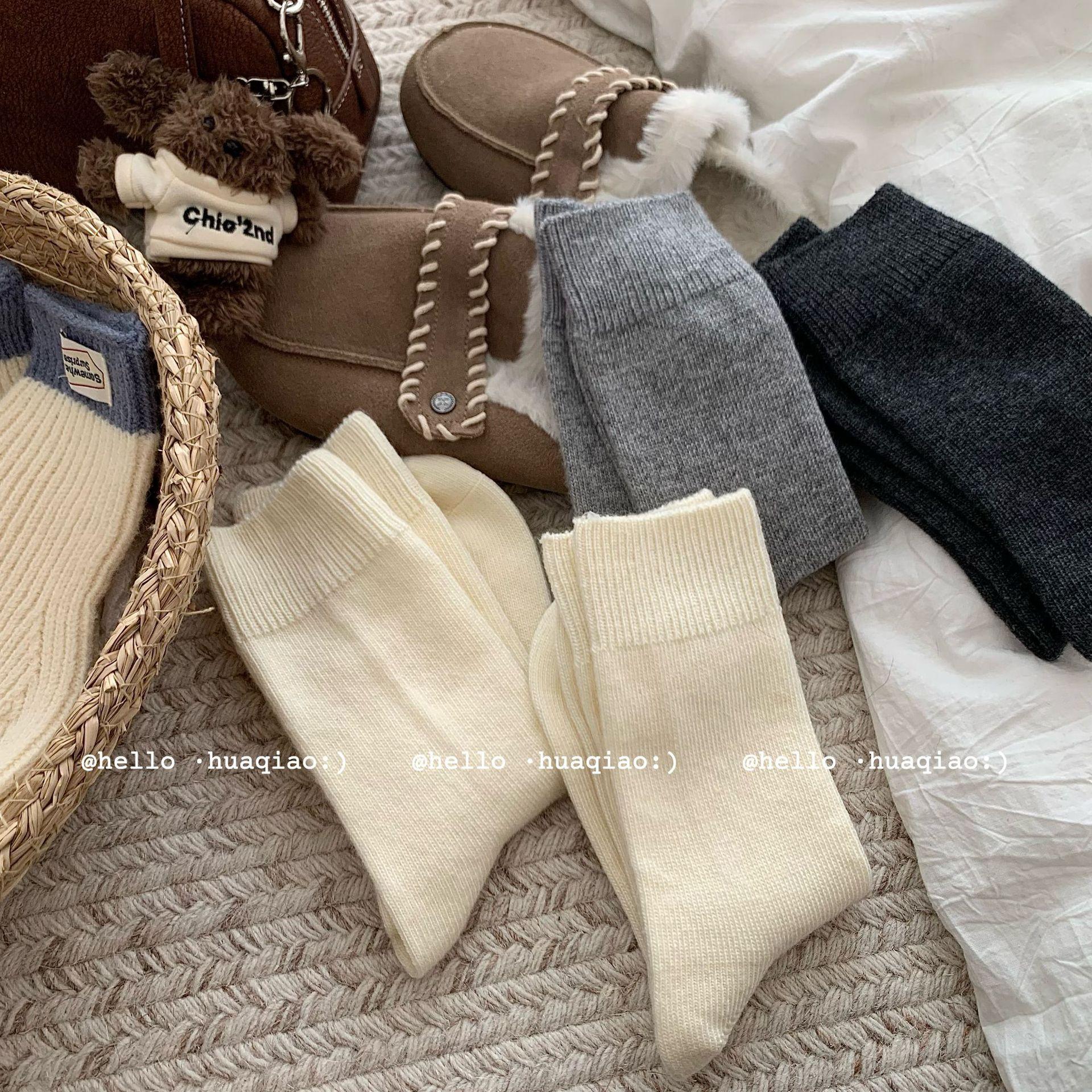 Calcetines Gruesos de Cachemira Tejidos para Mujer, Calcetines de Media Caña Otoño e Invierno con Forro Polar, Calcetines Gruesos Cálidos Japoneses de Lana de Color Sólido Apilables