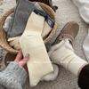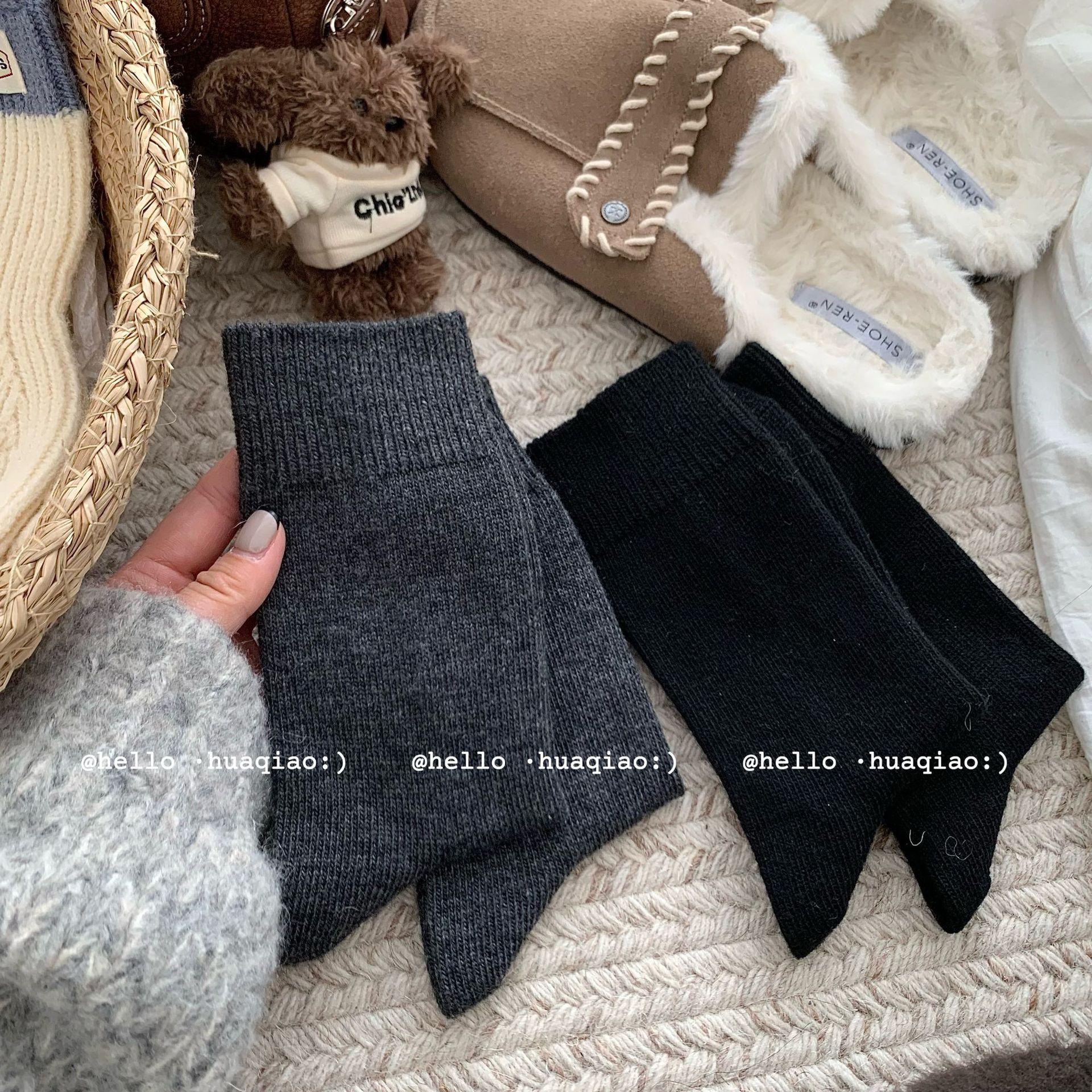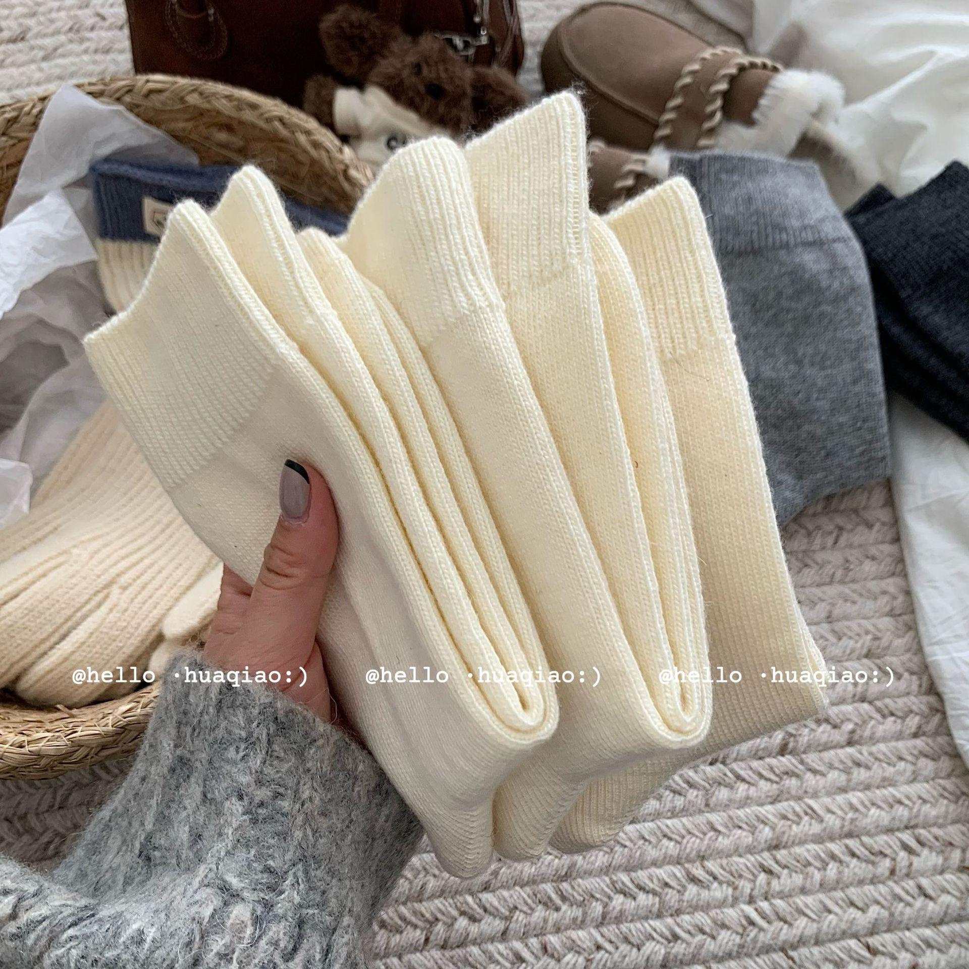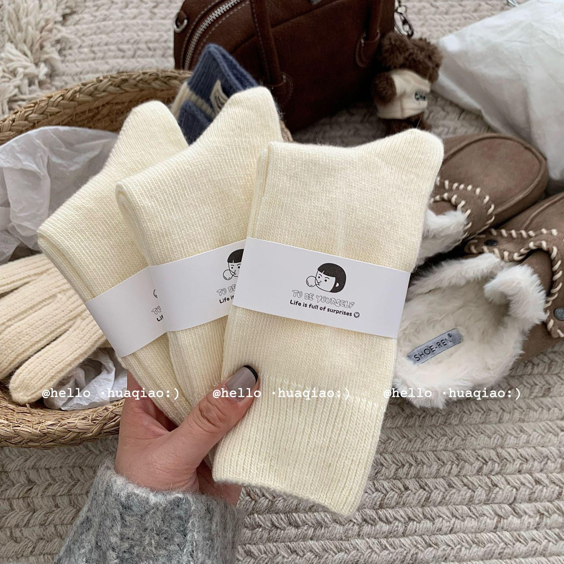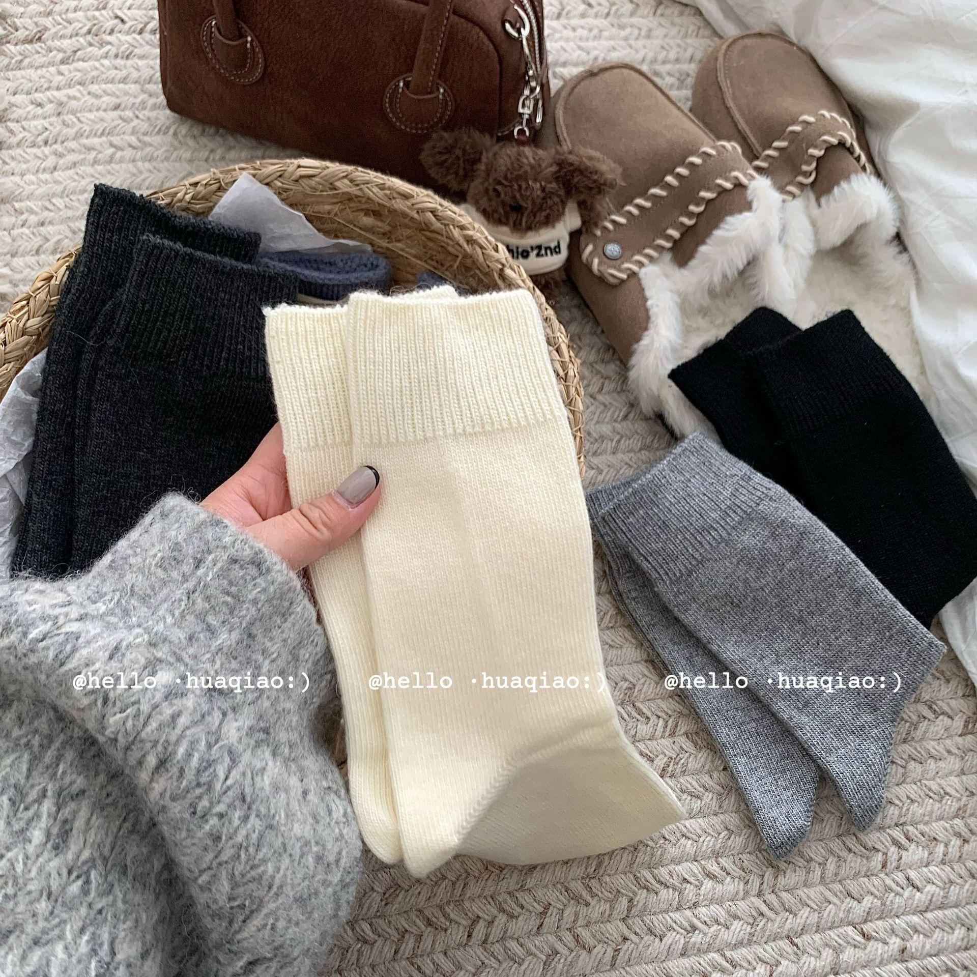 Calcetines Gruesos de Cachemira Tejidos para Mujer, Calcetines de Media Caña Otoño e Invierno con Forro Polar, Calcetines Gruesos Cálidos Japoneses de Lana de Color Sólido Apilables