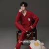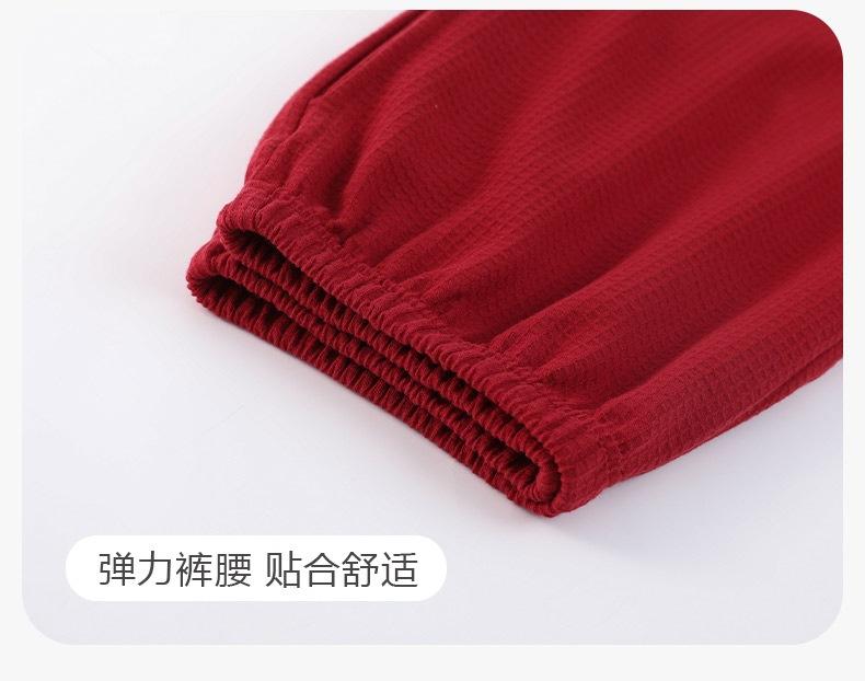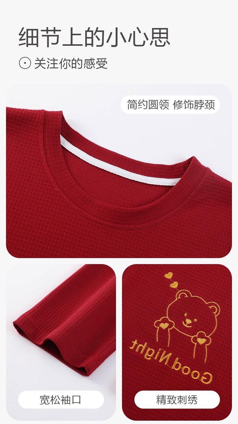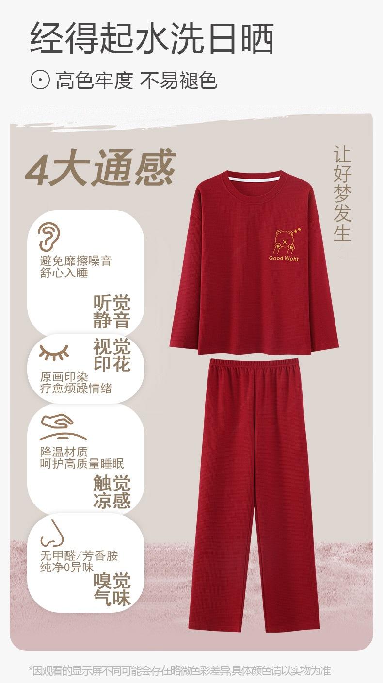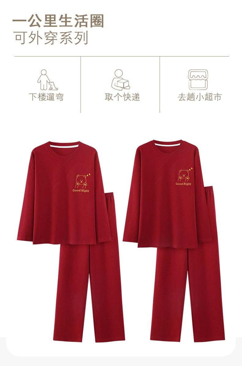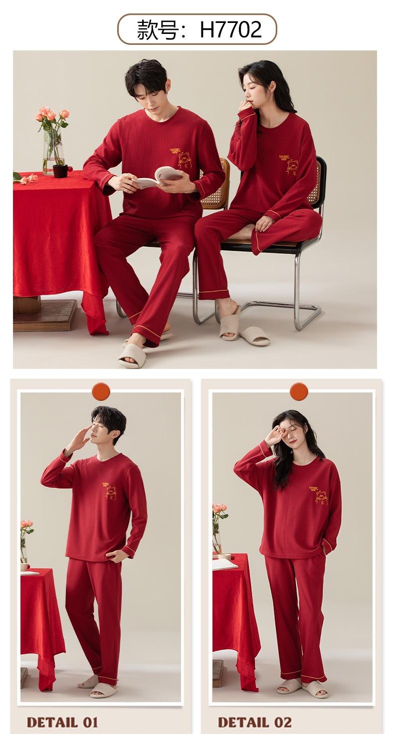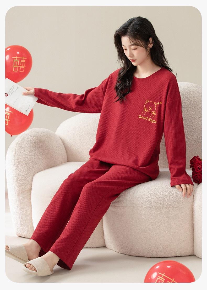 Punto sólido al por mayor Otoño y Primavera Nuevo Pijama de Pareja Mujer 65 Marea Algodón de Punto Manga Larga Rojo Boda Hombre Hogar