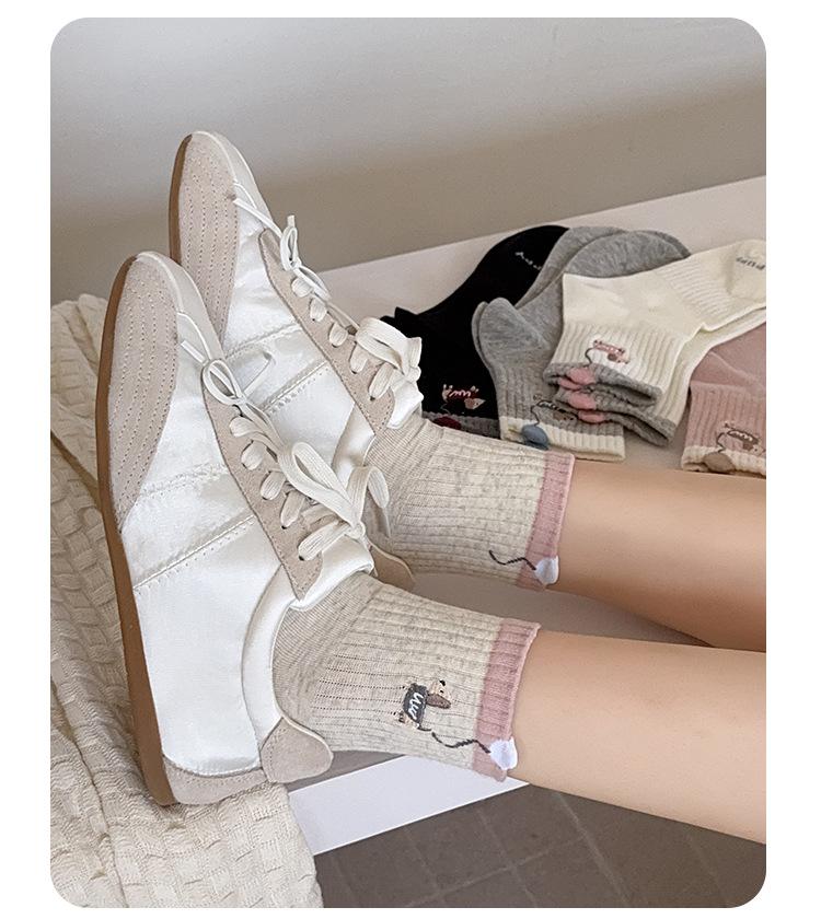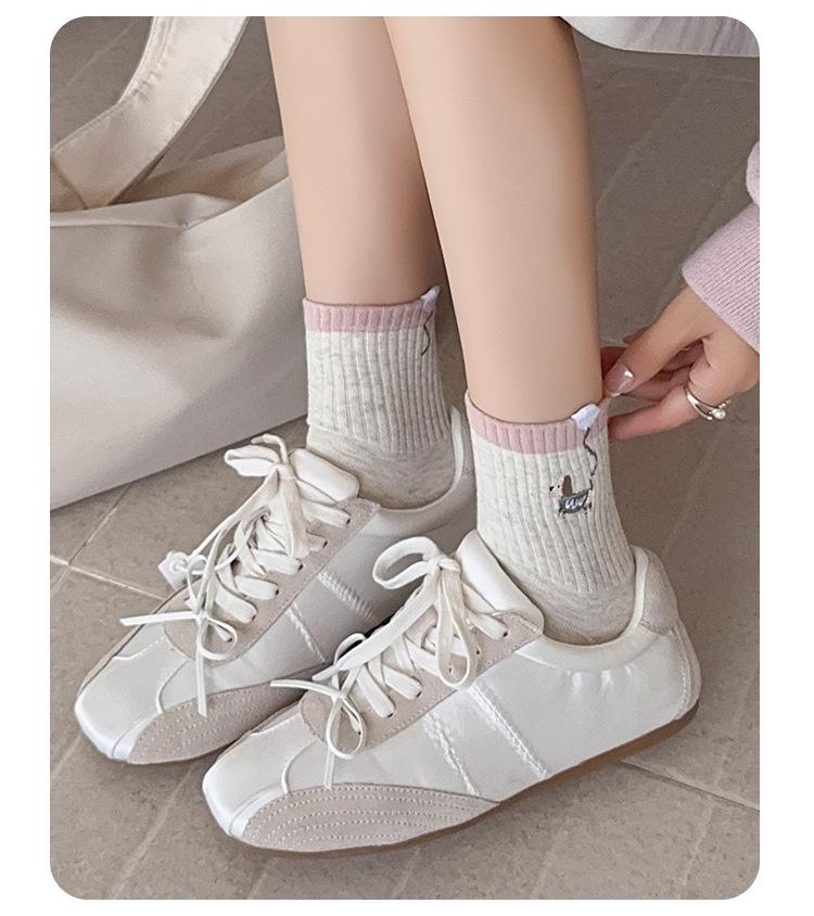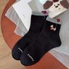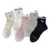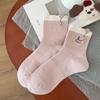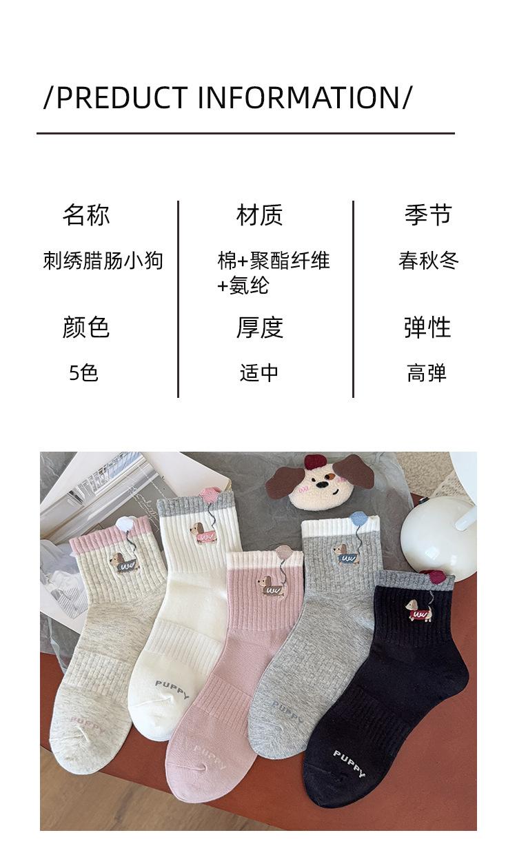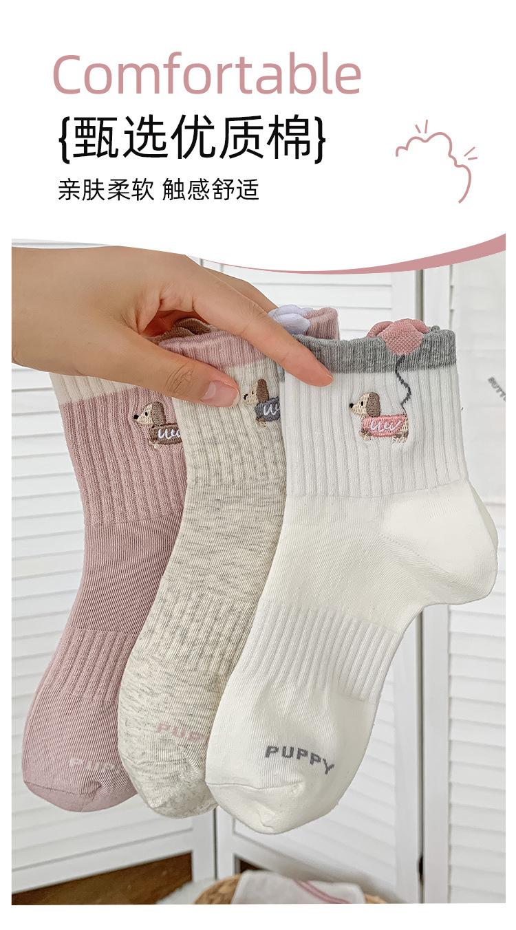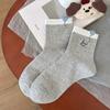 Calcetines grises de cachorro para mujer otoño e invierno tubo medio para mujer bloques de color deportivos ins modernos lindos bordado red de algodón al por mayor