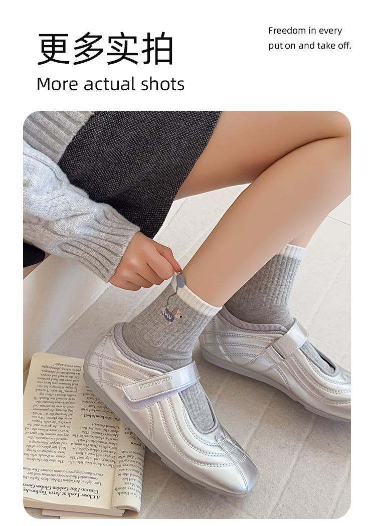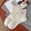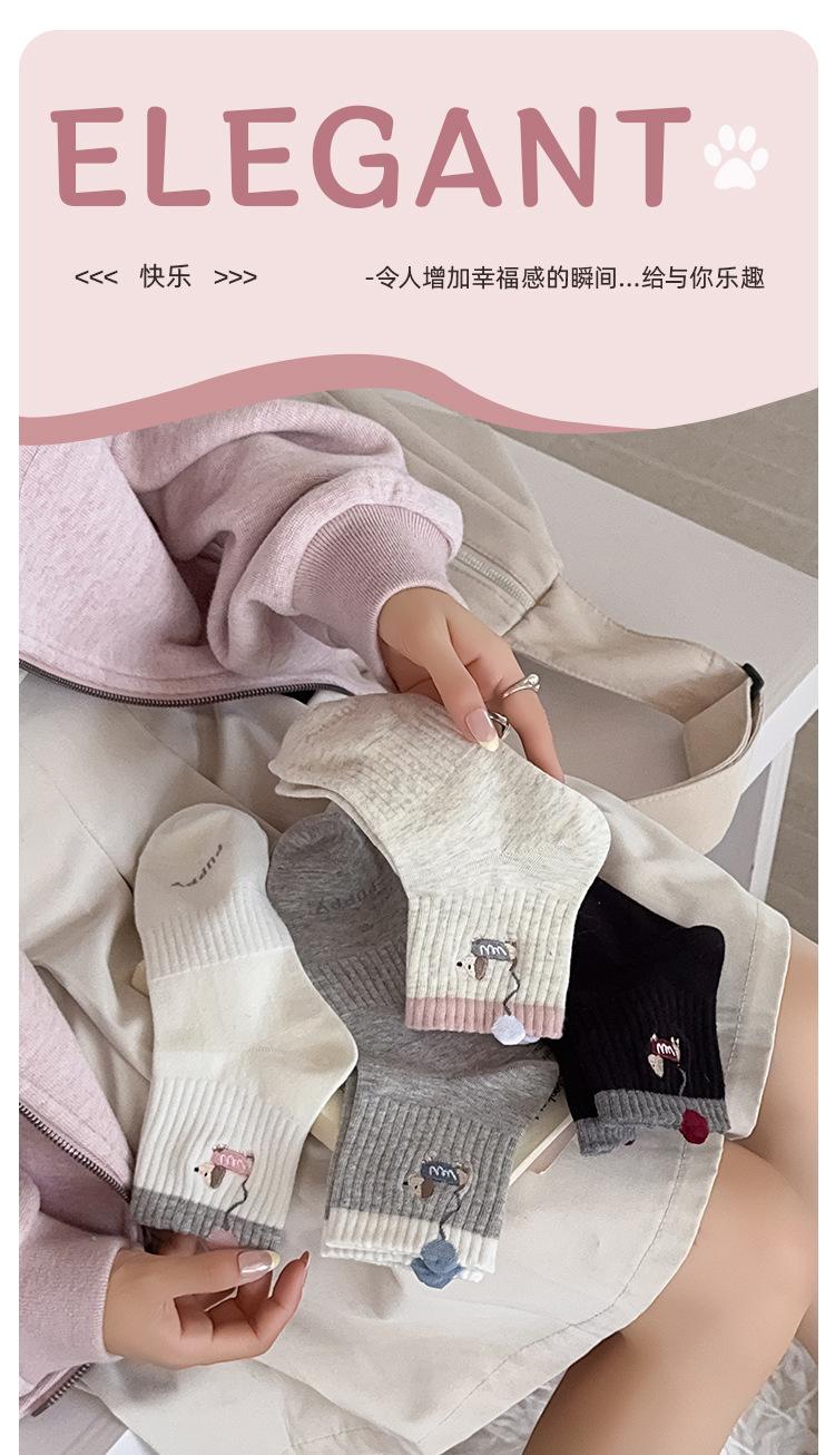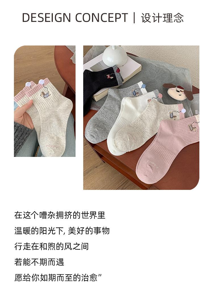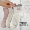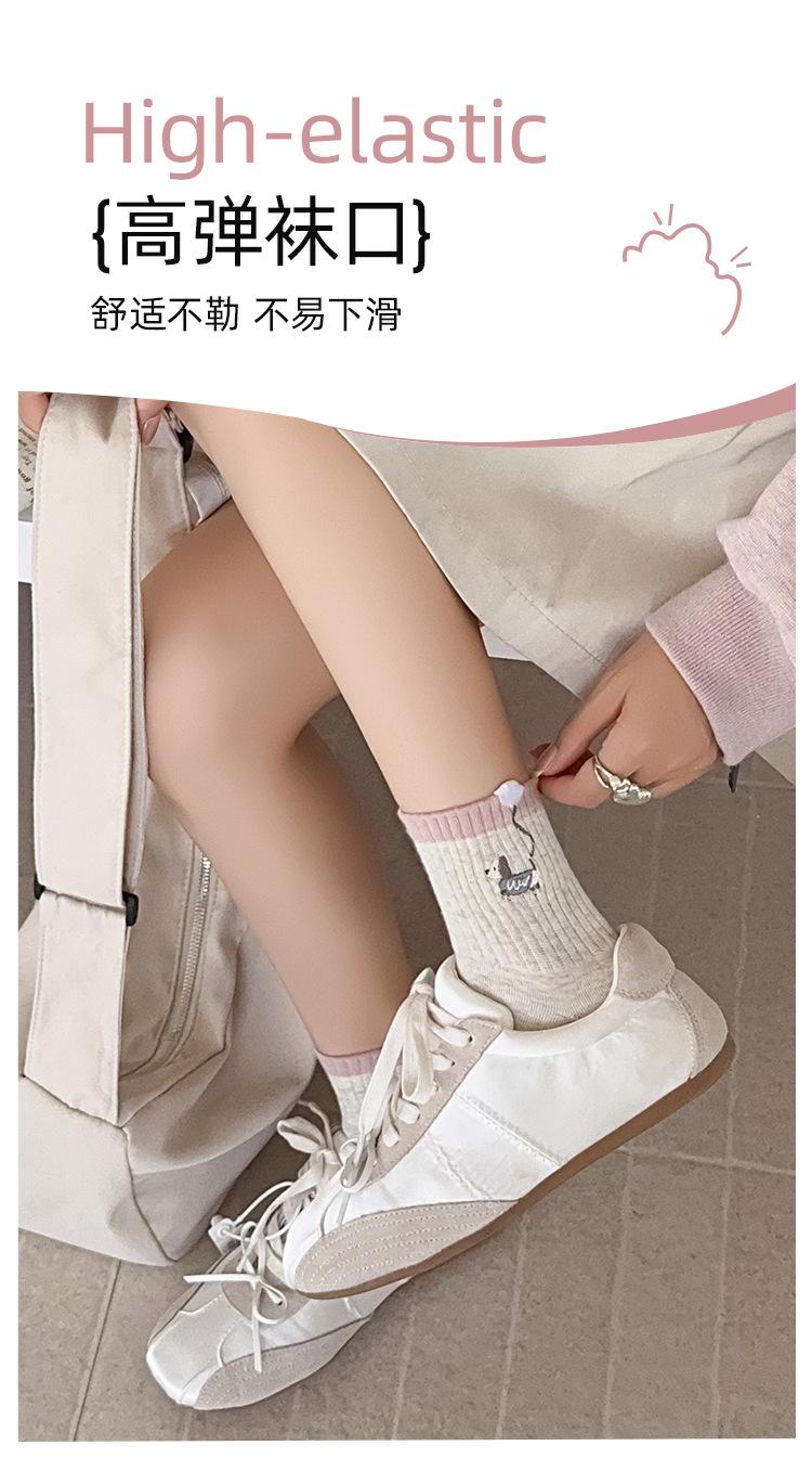 Calcetines grises de cachorro para mujer otoño e invierno tubo medio para mujer bloques de color deportivos ins modernos lindos bordado red de algodón al por mayor