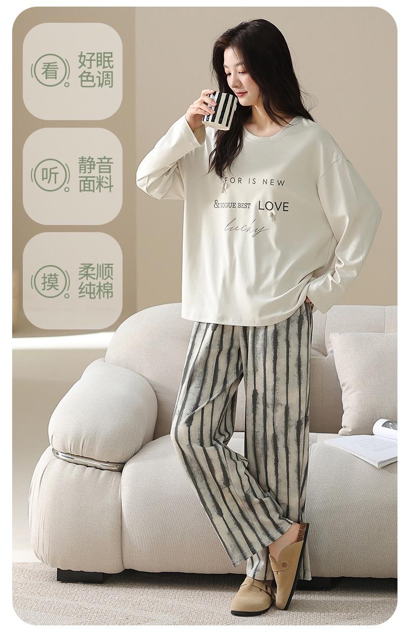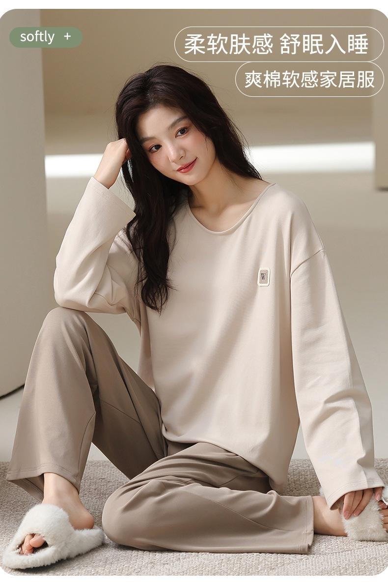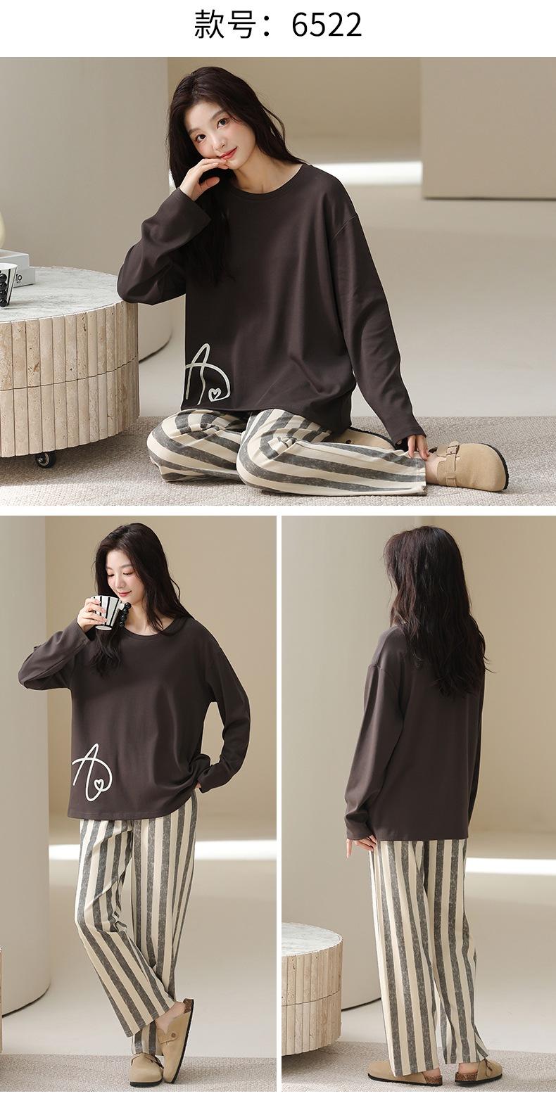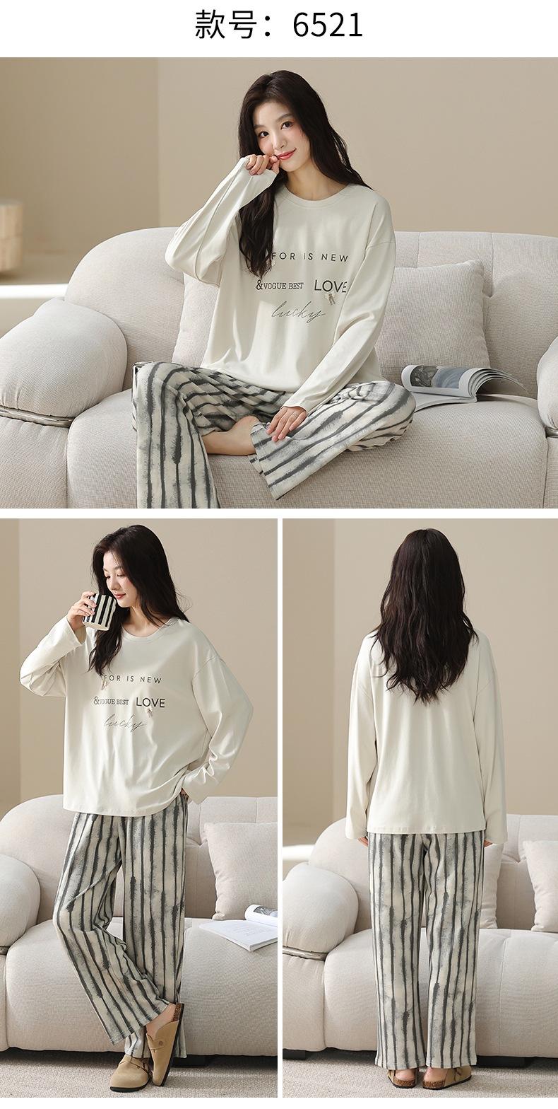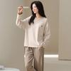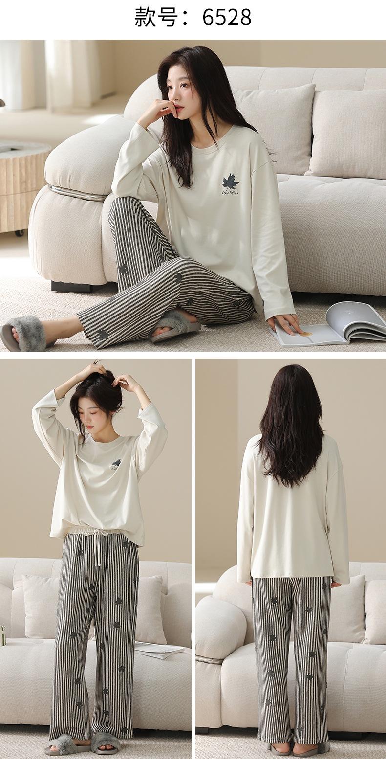 Venta al por mayor al contado de tiendas físicas Otoño nuevo pijama de algodón para mujer casual cuello redondo manga larga pantalón largo ropa de casa se puede usar para salir