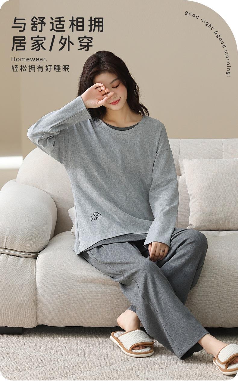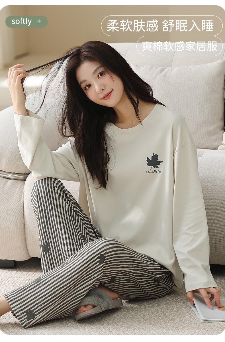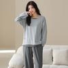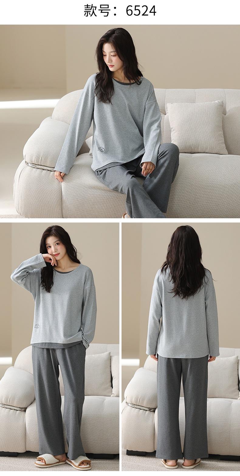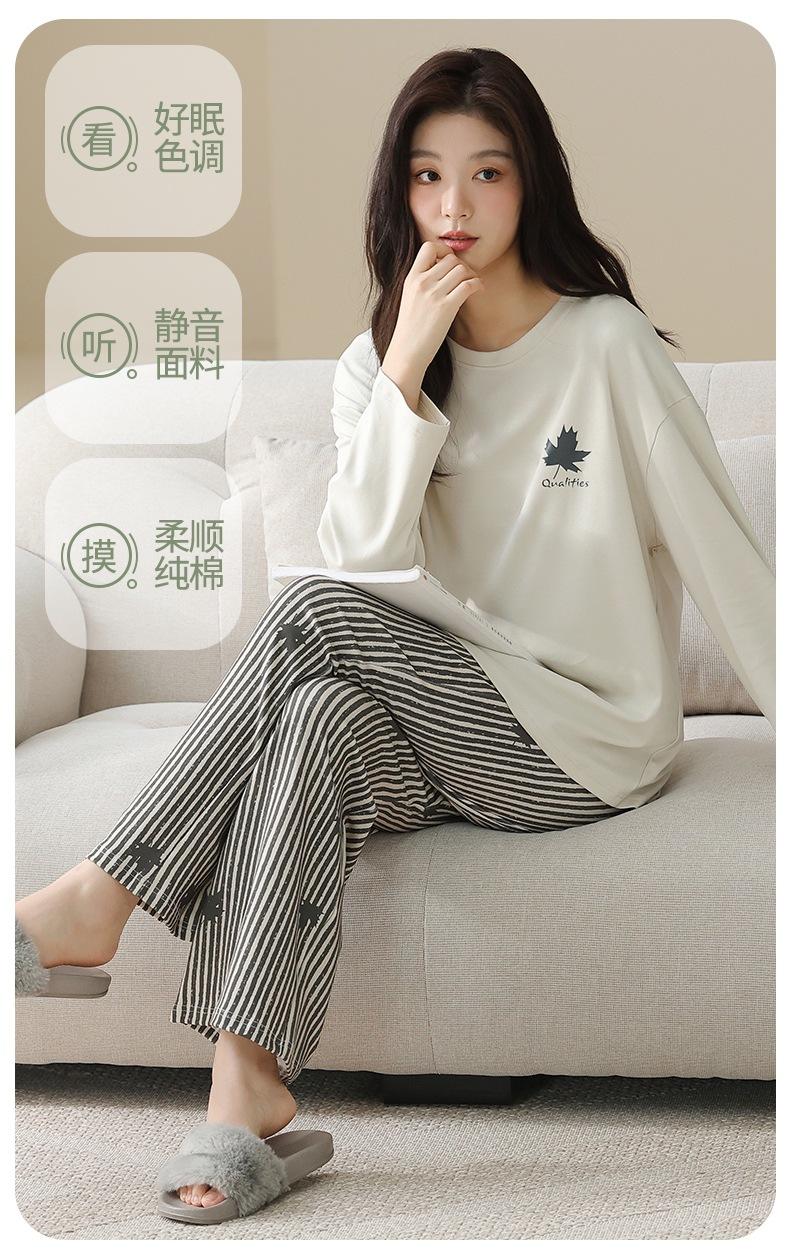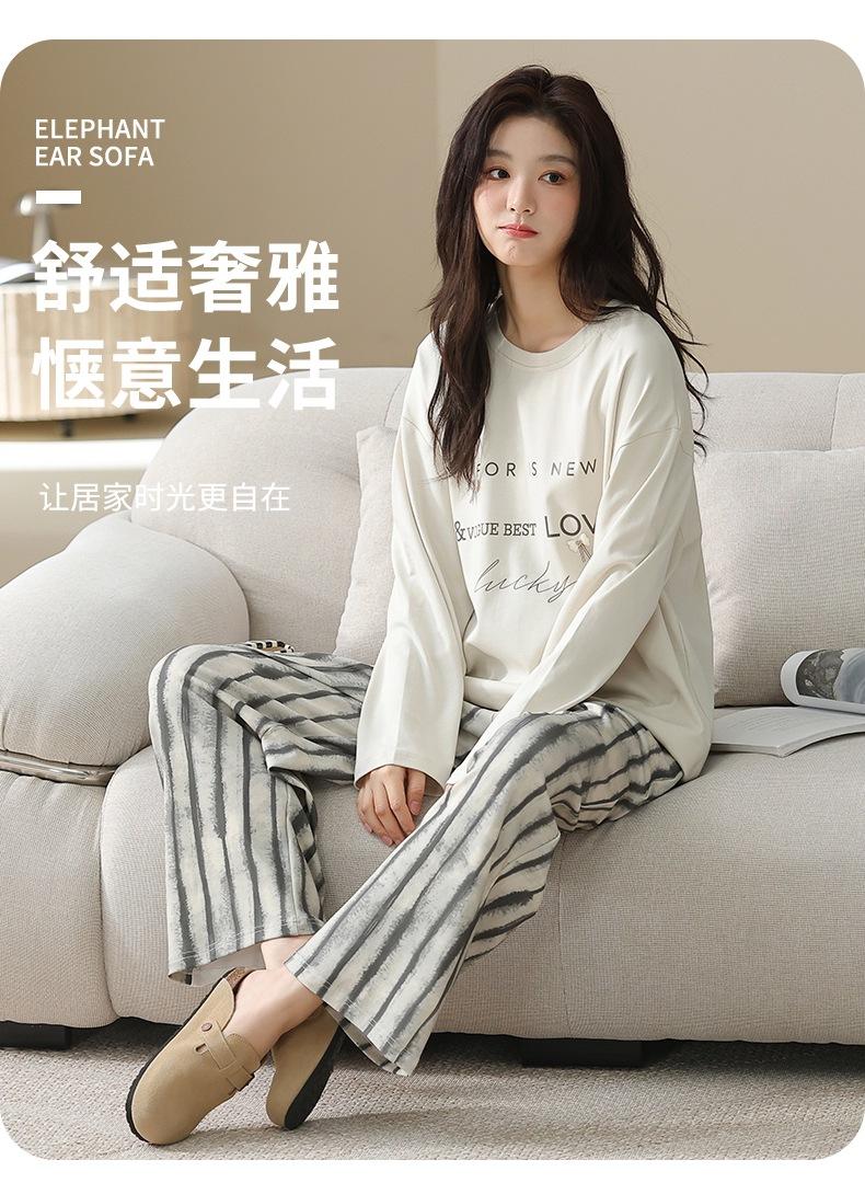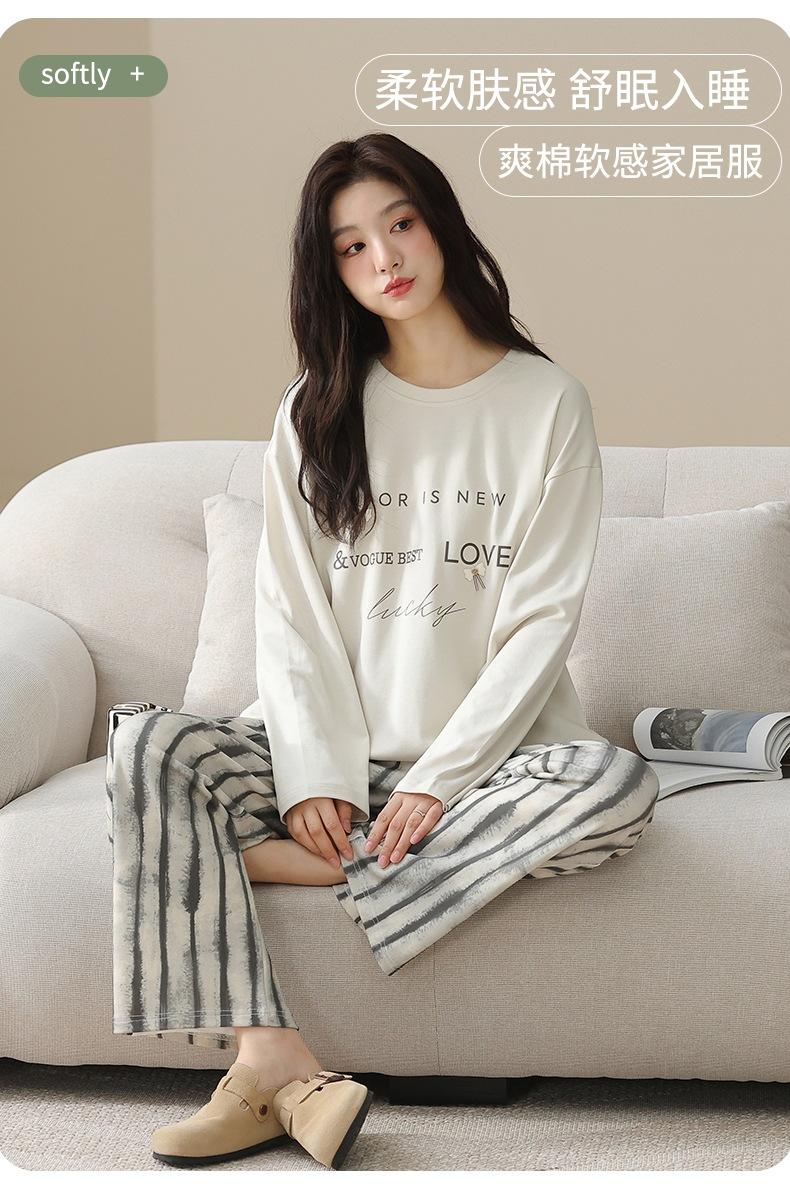 Venta al por mayor al contado de tiendas físicas Otoño nuevo pijama de algodón para mujer casual cuello redondo manga larga pantalón largo ropa de casa se puede usar para salir