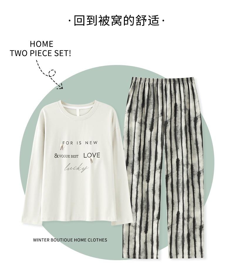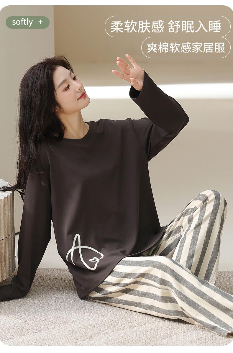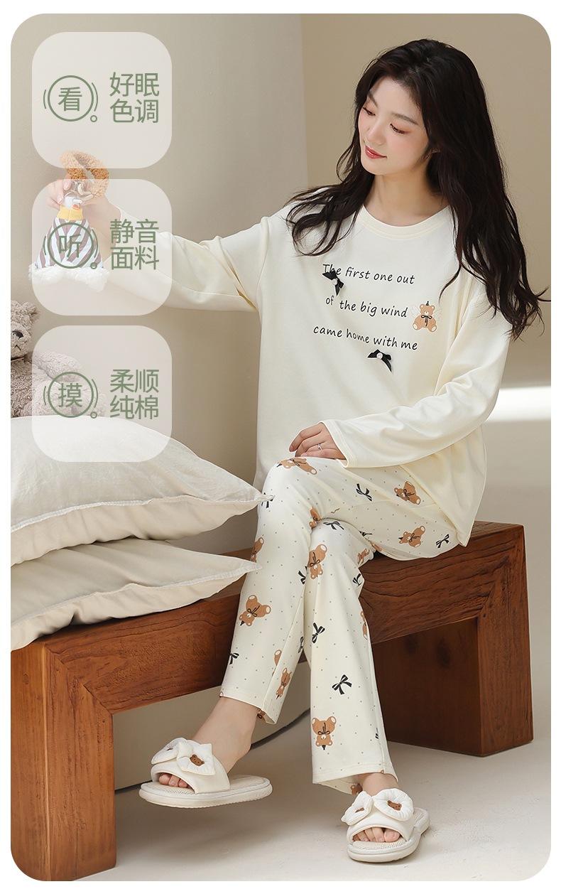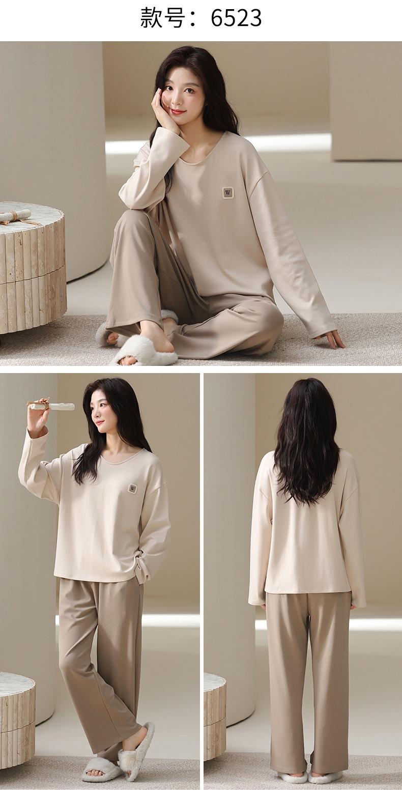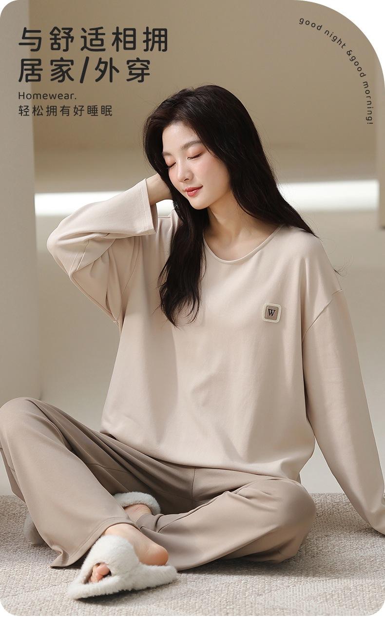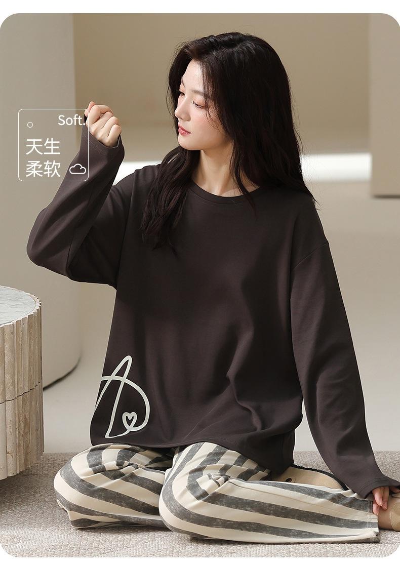 Venta al por mayor al contado de tiendas físicas Otoño nuevo pijama de algodón para mujer casual cuello redondo manga larga pantalón largo ropa de casa se puede usar para salir