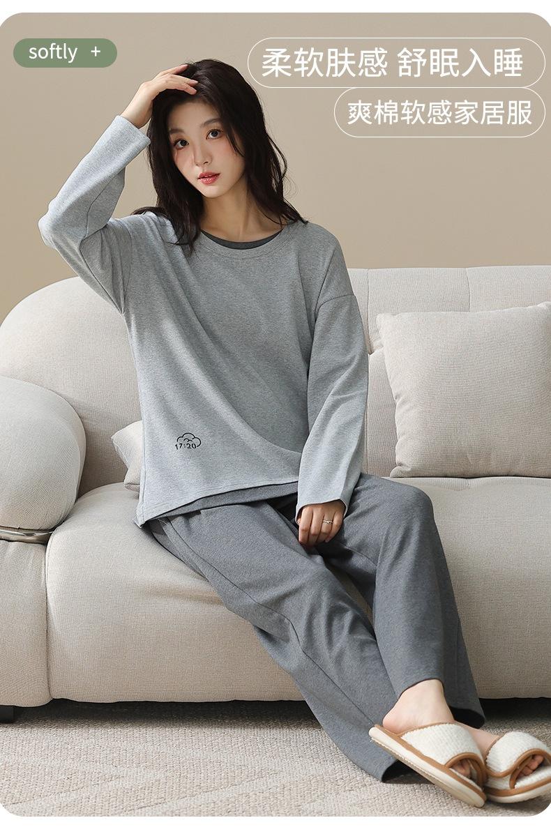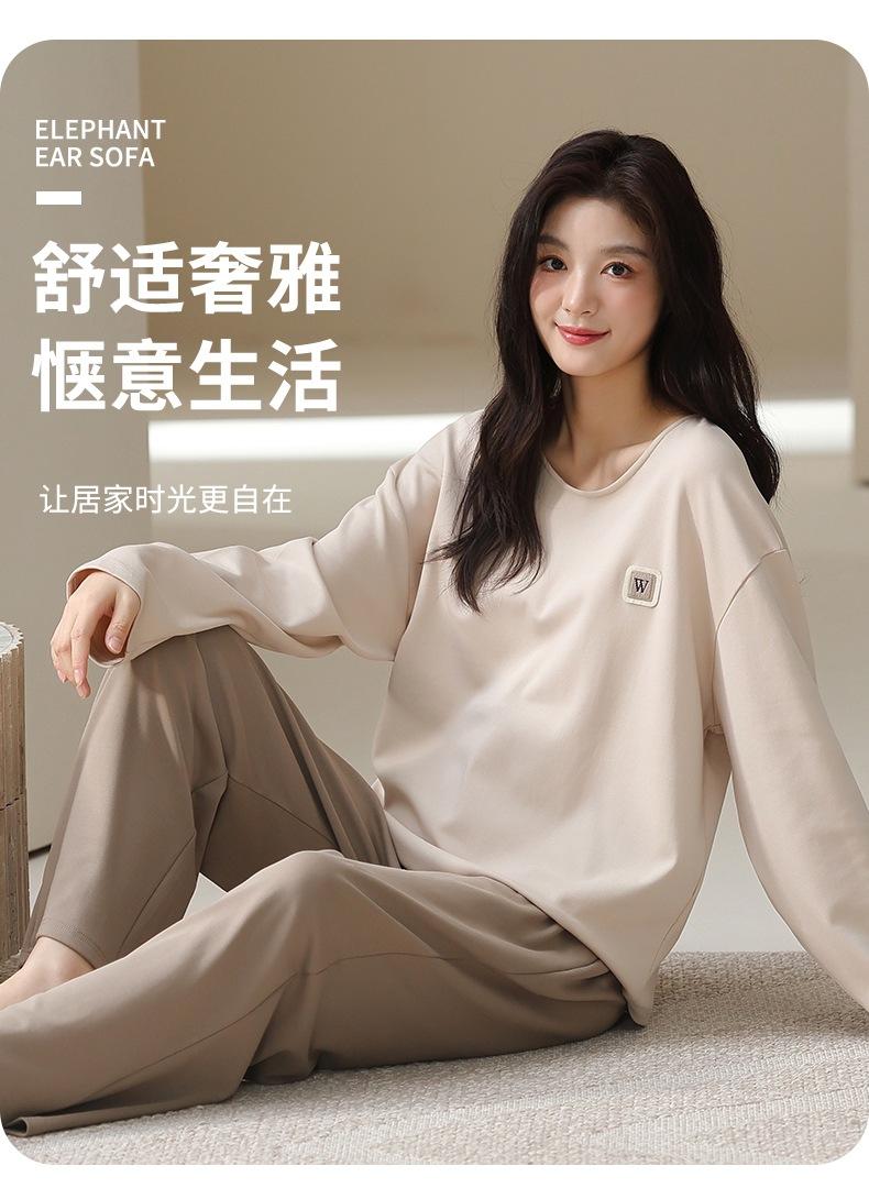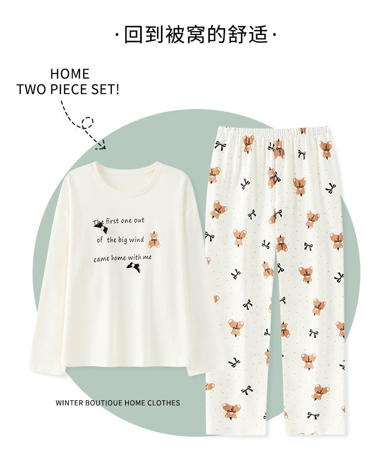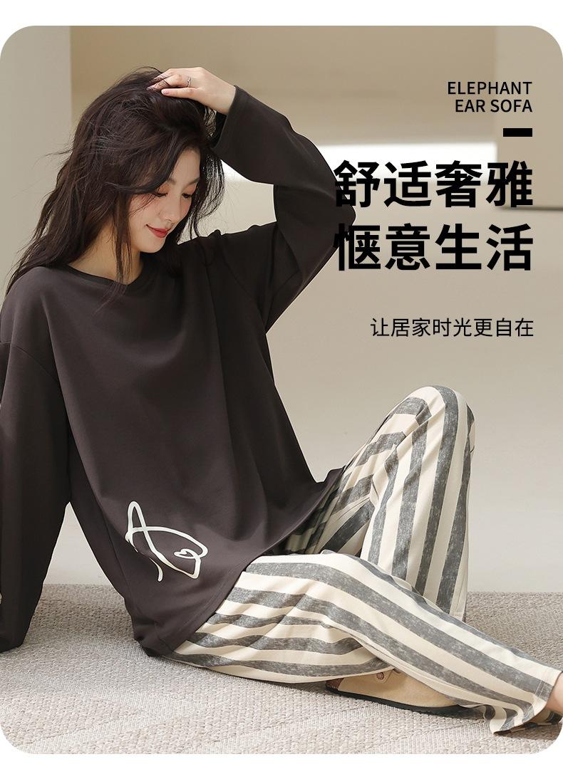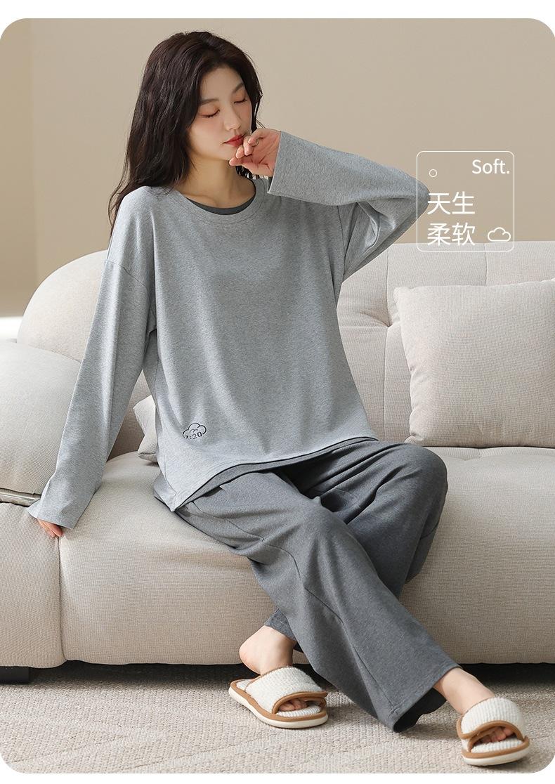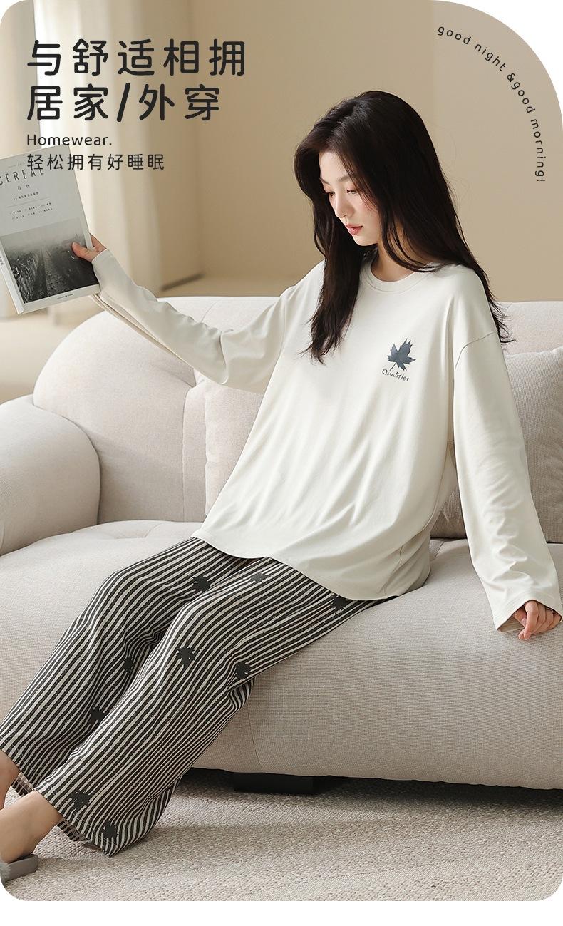 Venta al por mayor al contado de tiendas físicas Otoño nuevo pijama de algodón para mujer casual cuello redondo manga larga pantalón largo ropa de casa se puede usar para salir