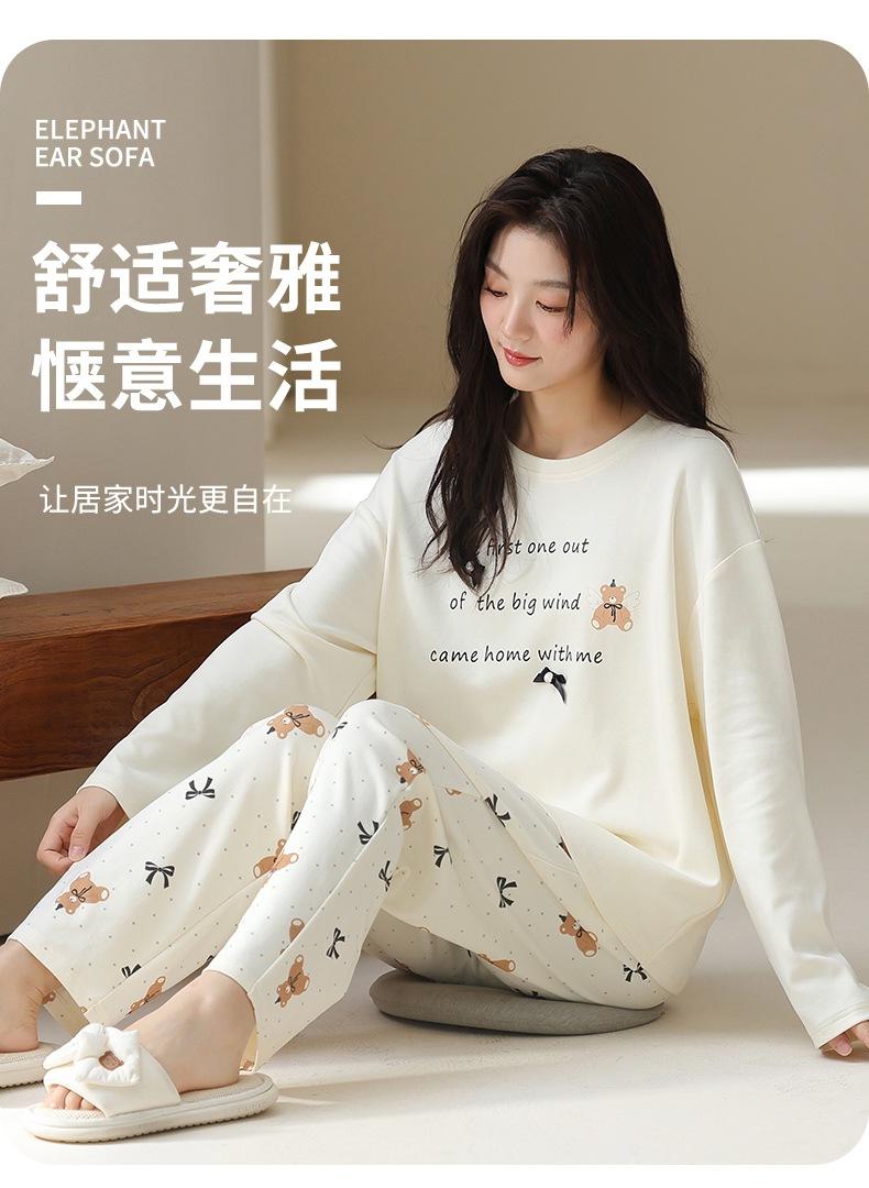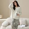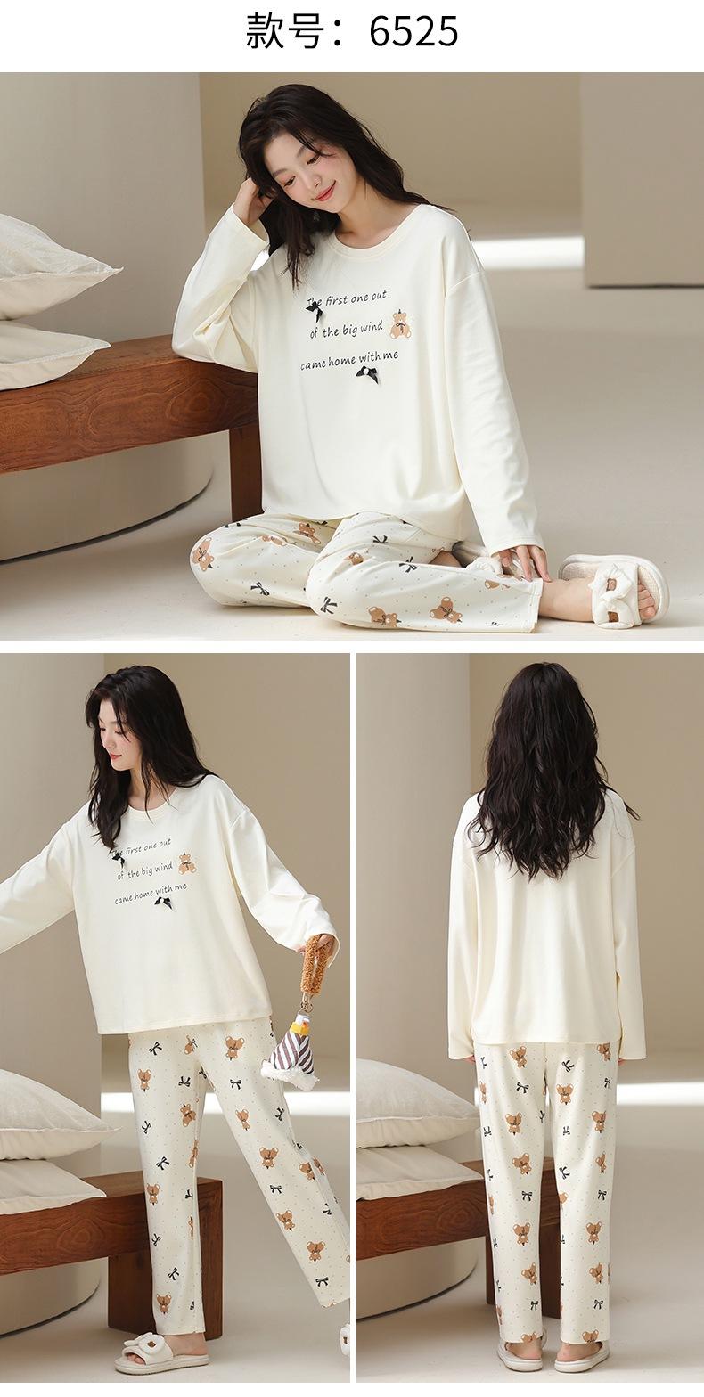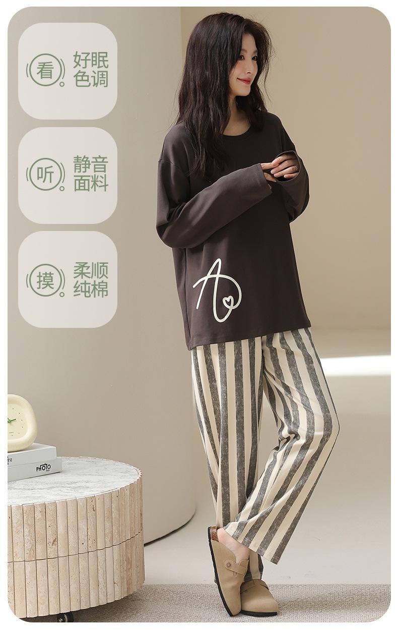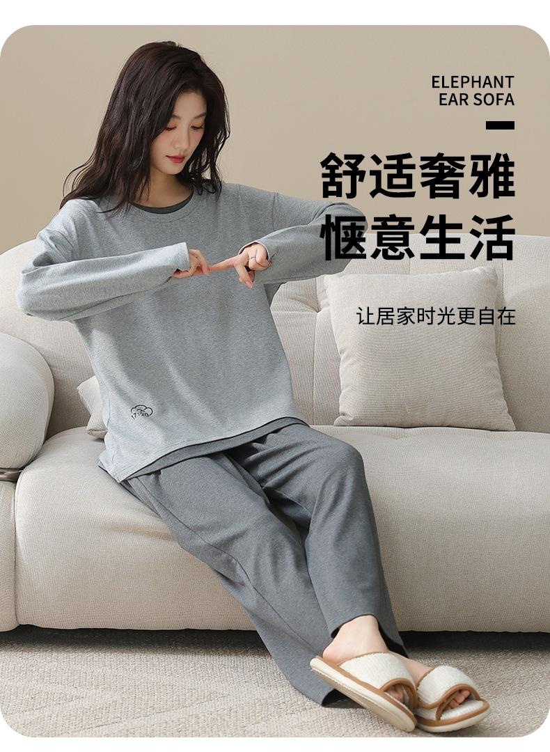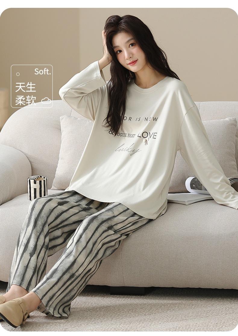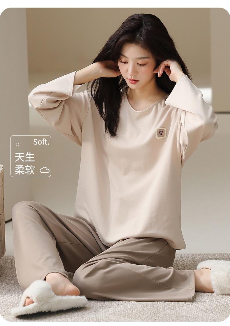 Venta al por mayor al contado de tiendas físicas Otoño nuevo pijama de algodón para mujer casual cuello redondo manga larga pantalón largo ropa de casa se puede usar para salir