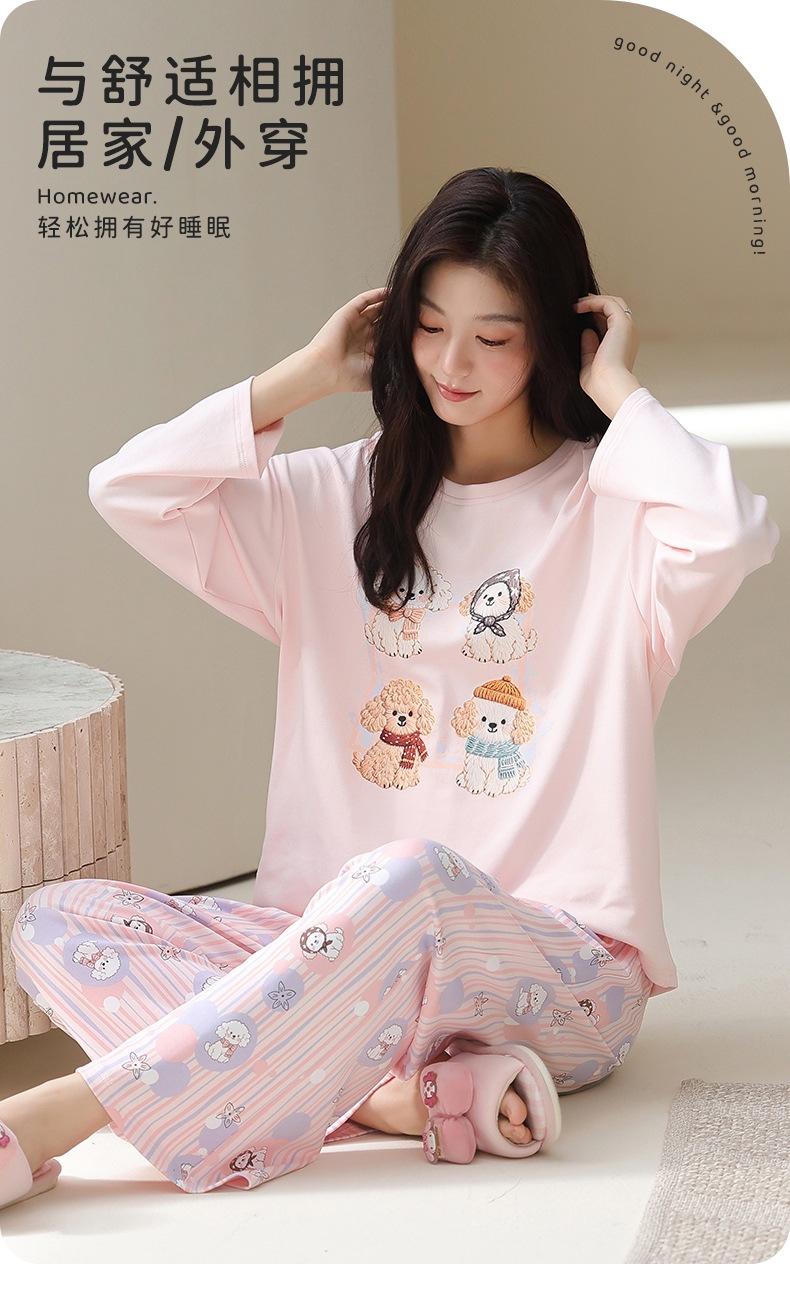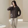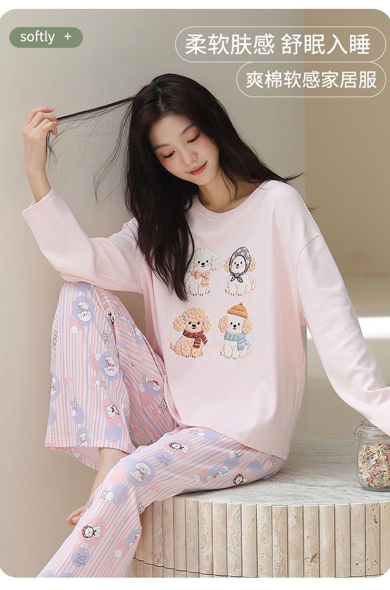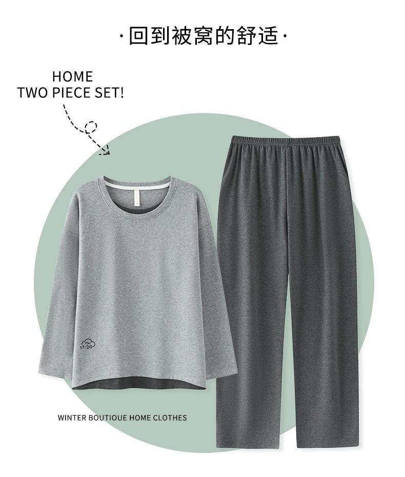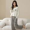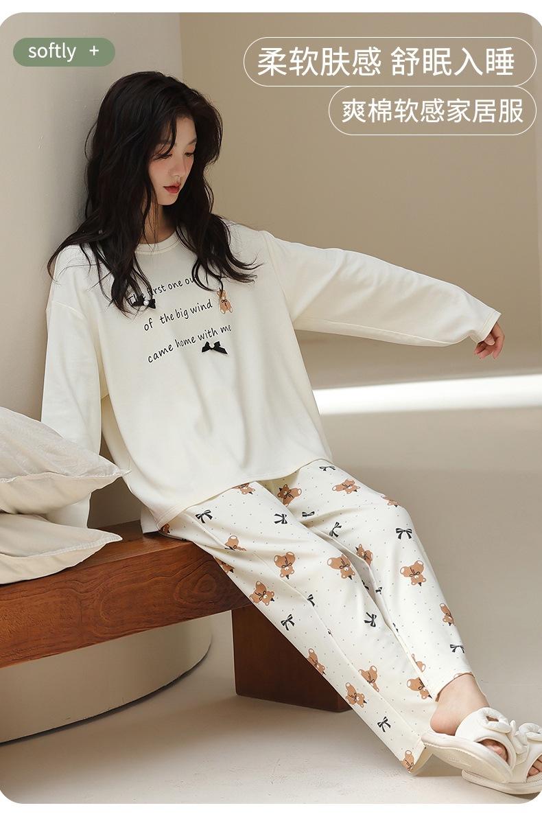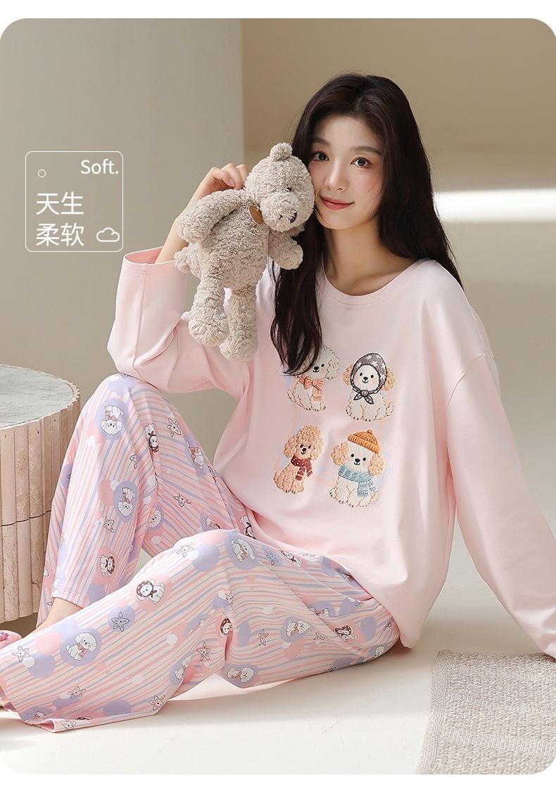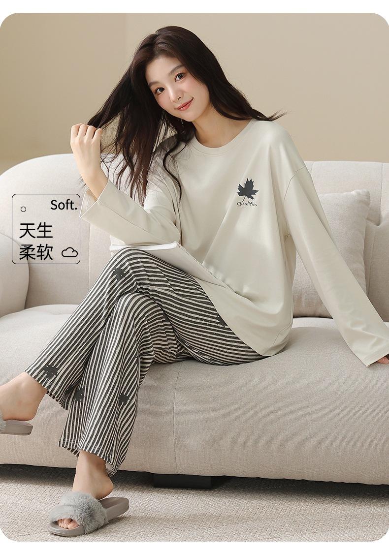 Venta al por mayor al contado de tiendas físicas Otoño nuevo pijama de algodón para mujer casual cuello redondo manga larga pantalón largo ropa de casa se puede usar para salir