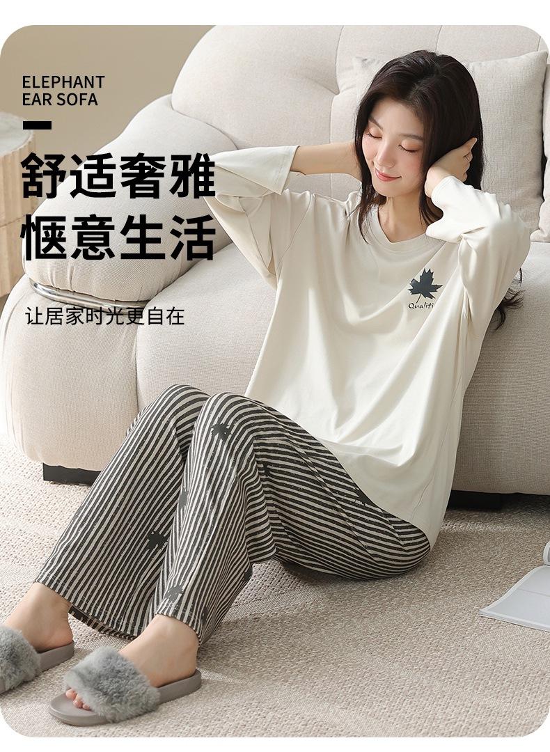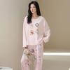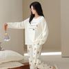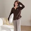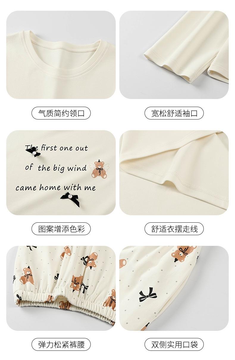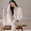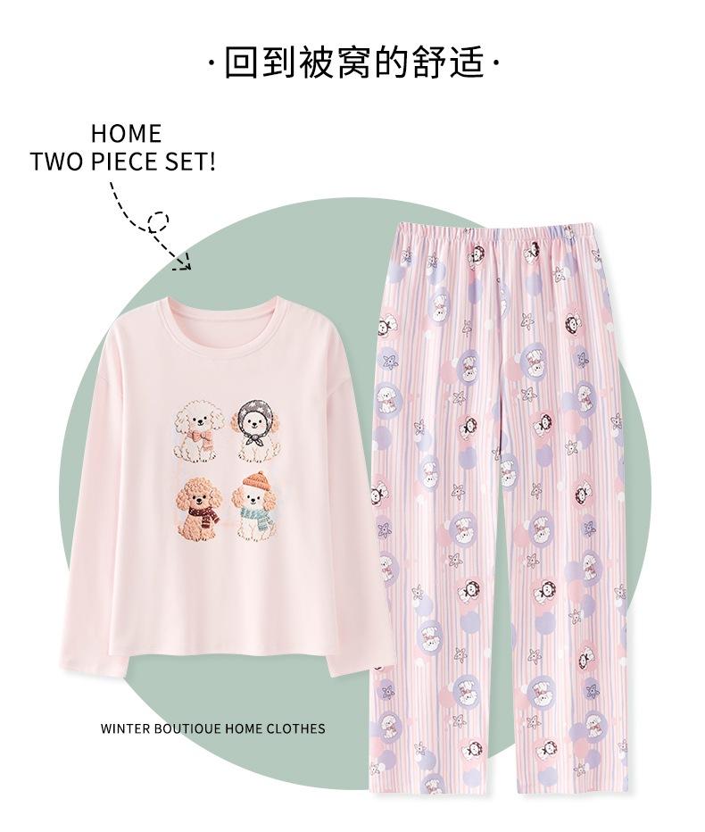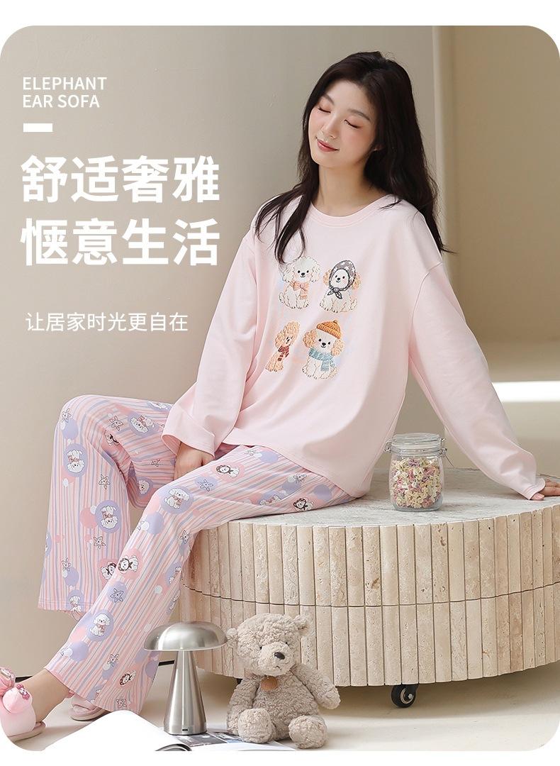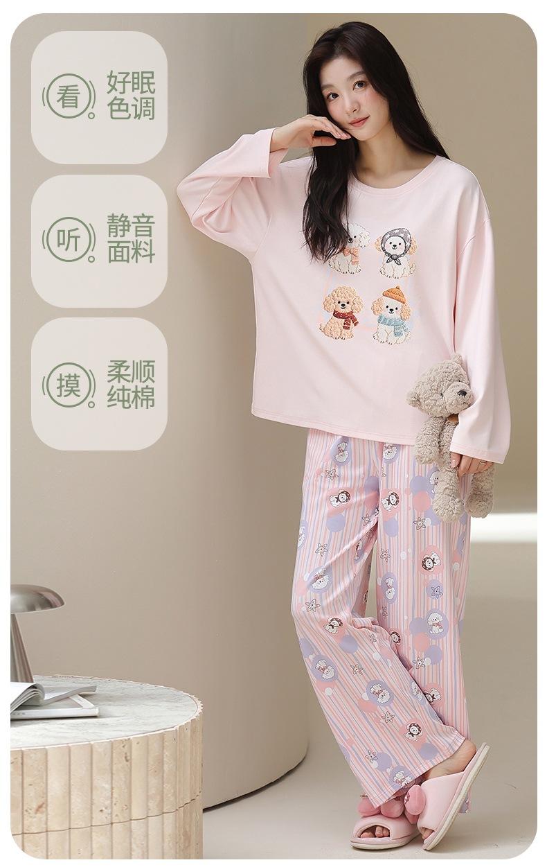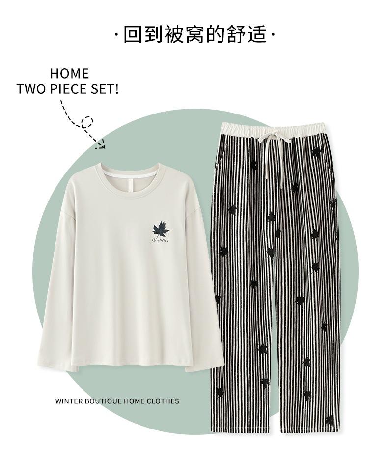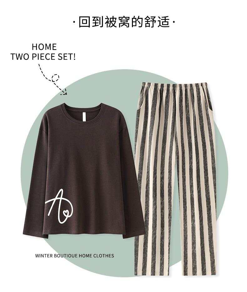 Venta al por mayor al contado de tiendas físicas Otoño nuevo pijama de algodón para mujer casual cuello redondo manga larga pantalón largo ropa de casa se puede usar para salir