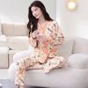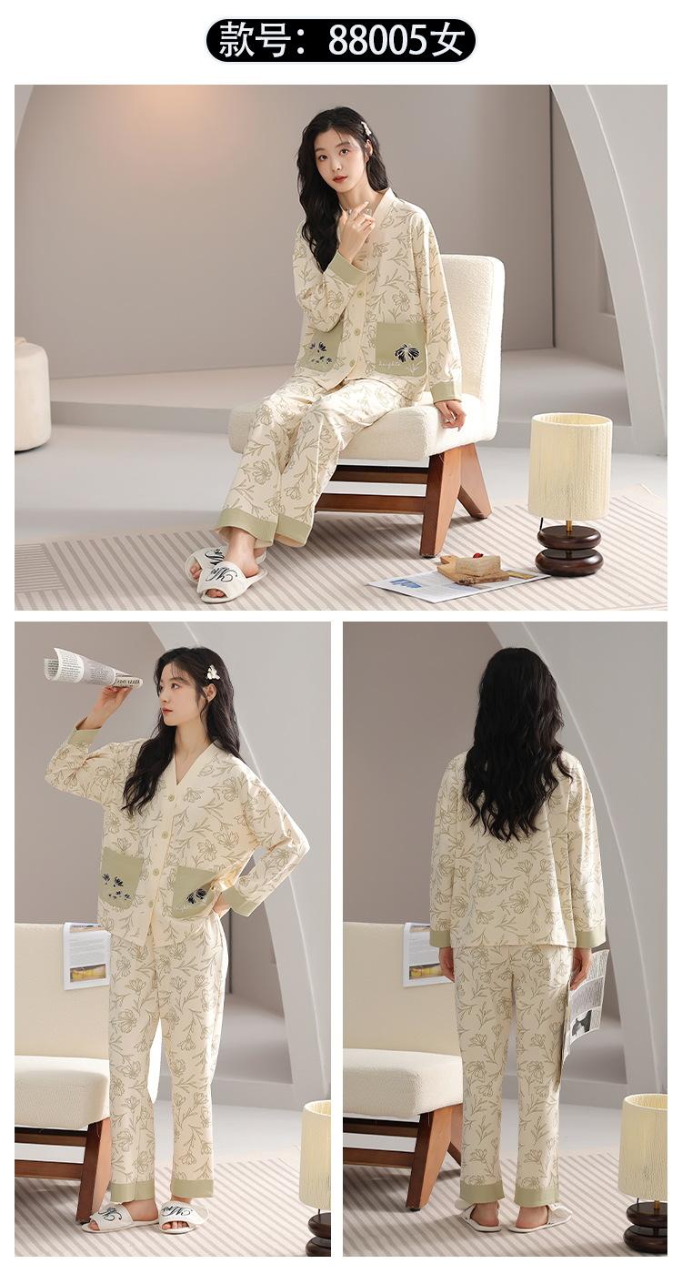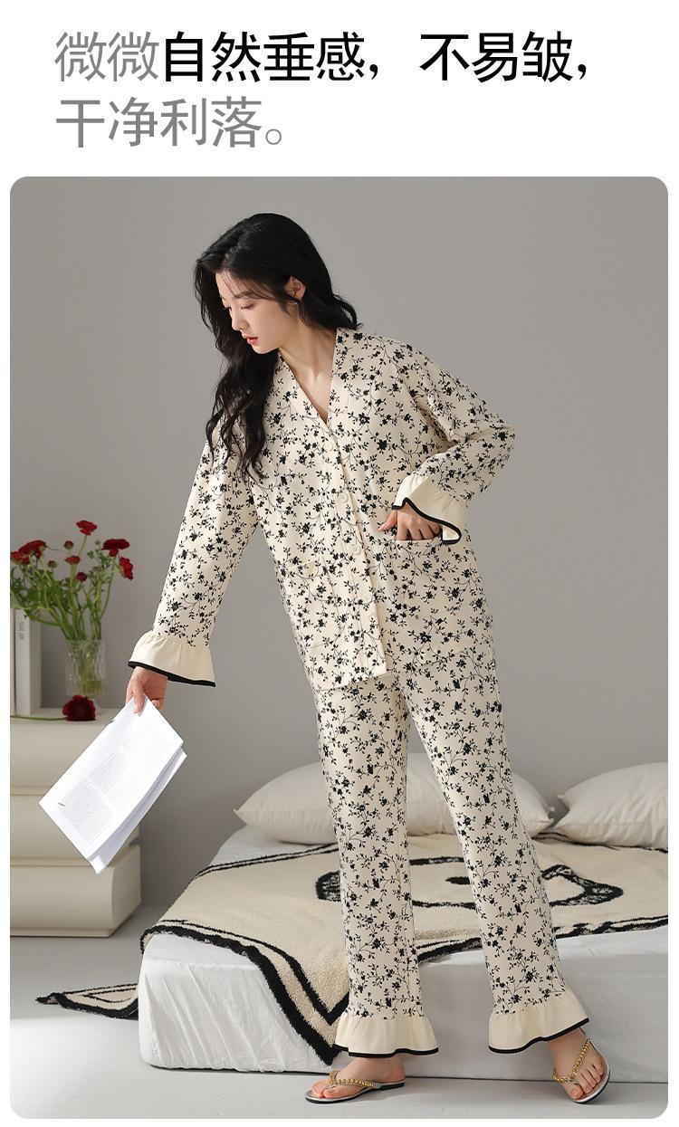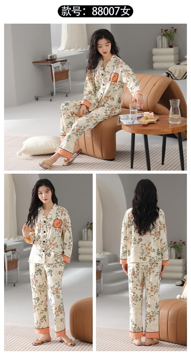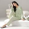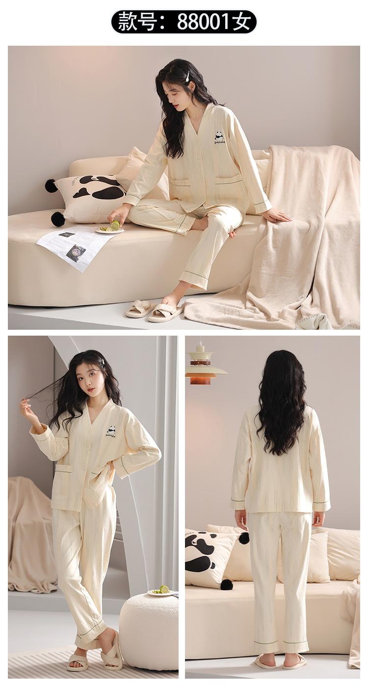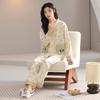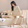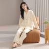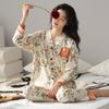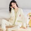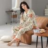Otoño Nuevo Pijama Cuello en V Mujer Antibacterial Algodón Puro Kimono Manga Larga Estilo Primavera y Otoño Dulce Dibujo Animado Conjunto Ropa de Dormir