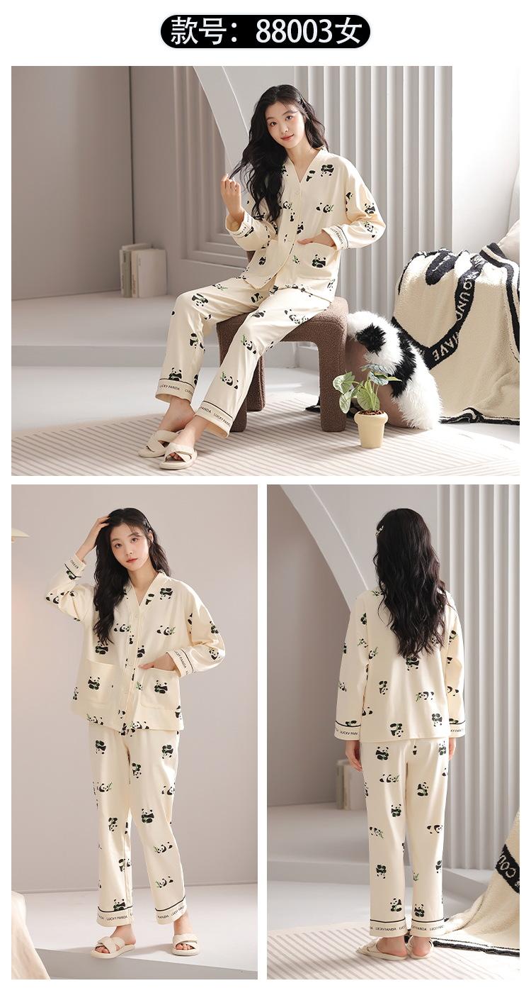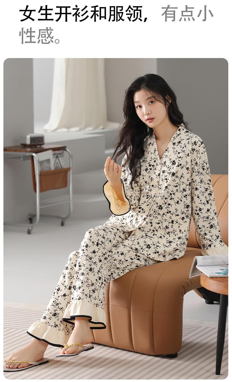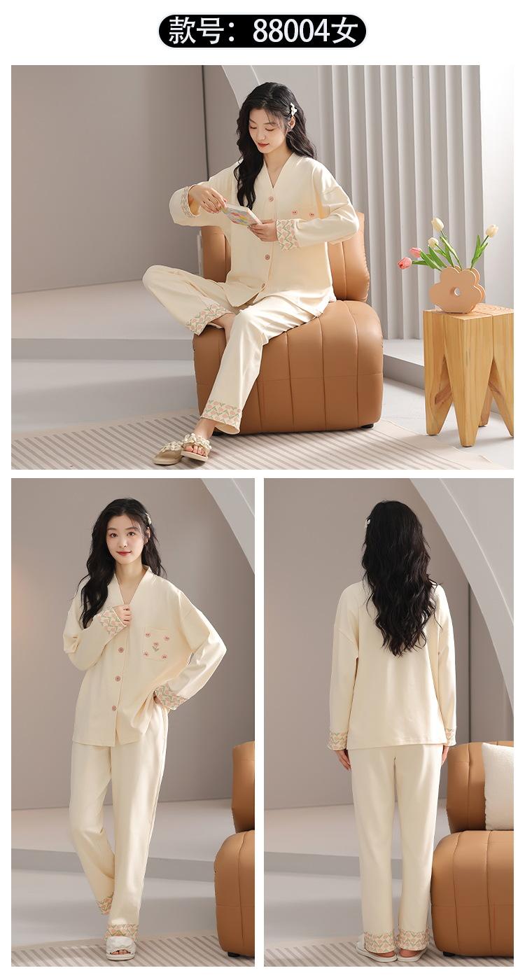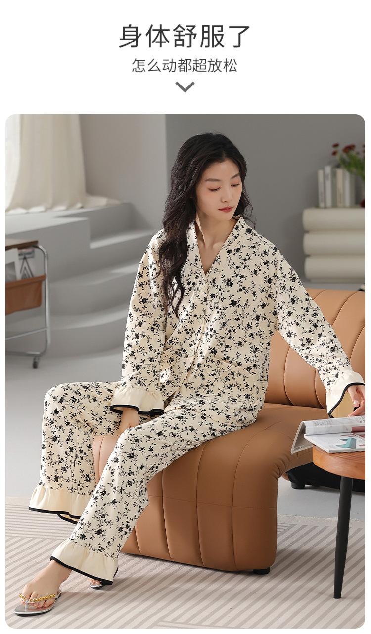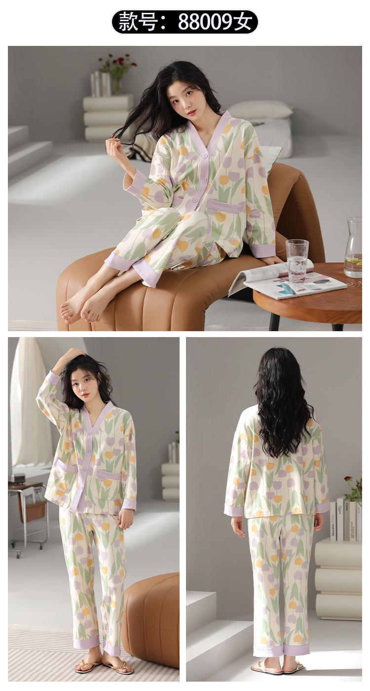 Otoño Nuevo Pijama Cuello en V Mujer Antibacterial Algodón Puro Kimono Manga Larga Estilo Primavera y Otoño Dulce Dibujo Animado Conjunto Ropa de Dormir