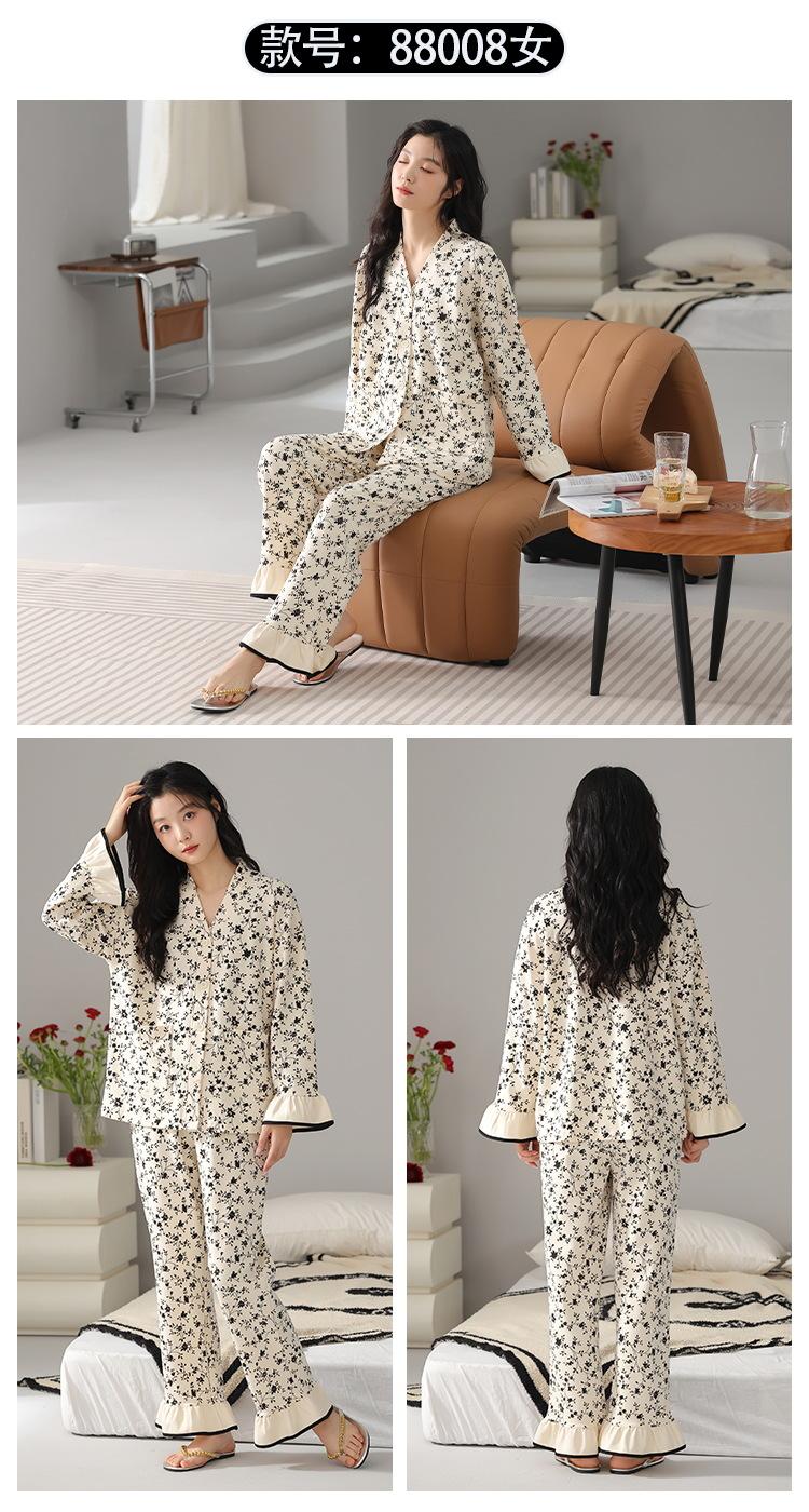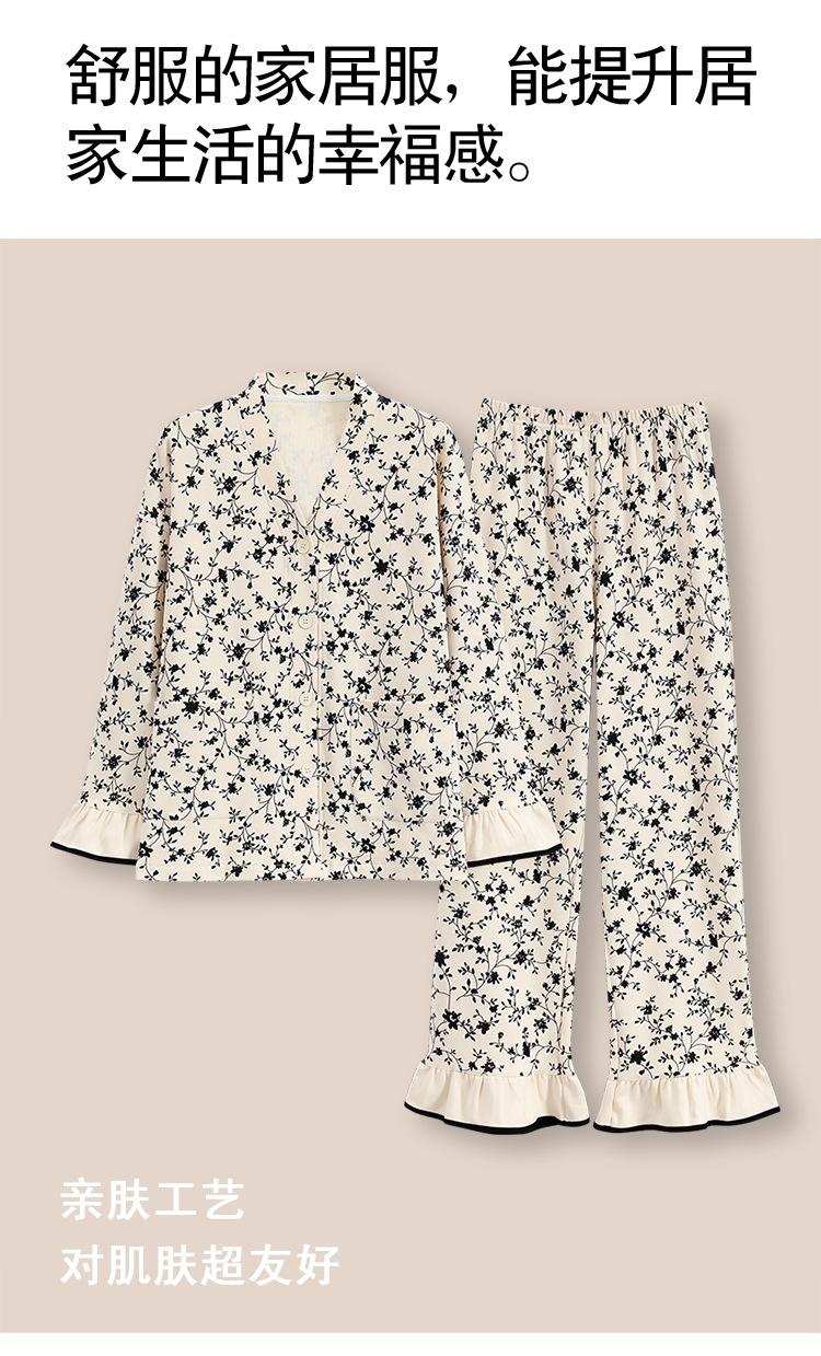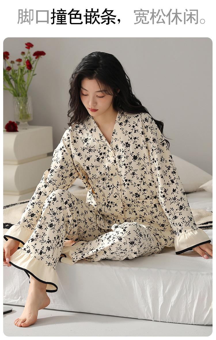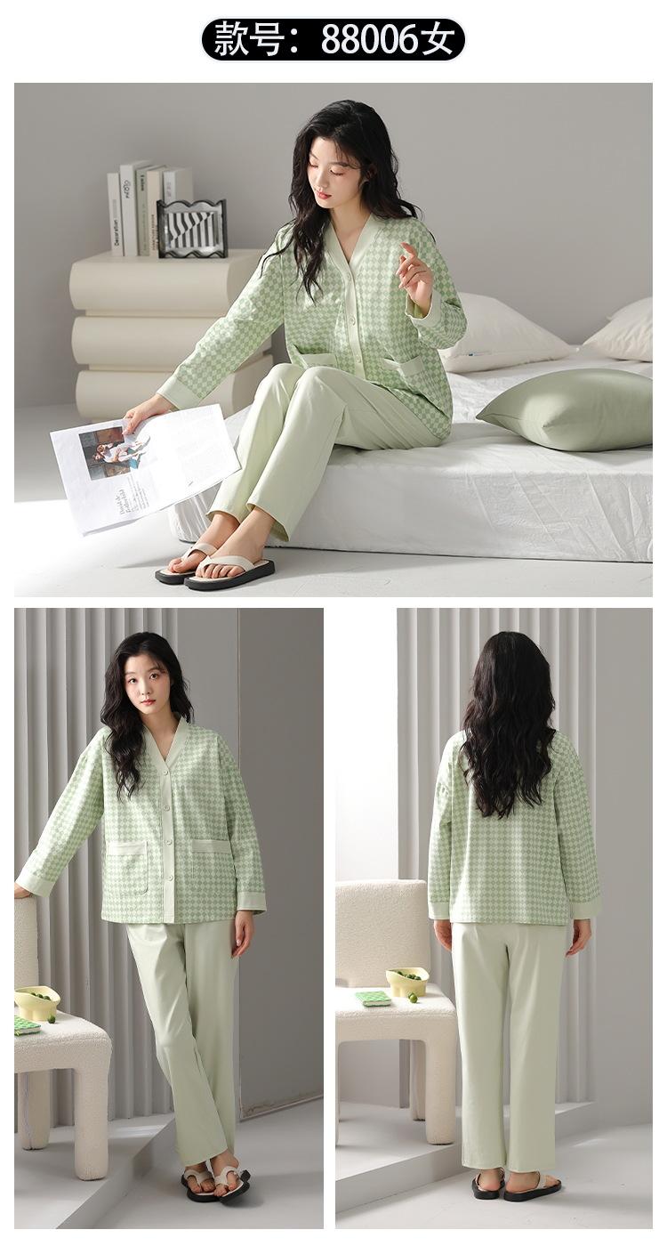 Otoño Nuevo Pijama Cuello en V Mujer Antibacterial Algodón Puro Kimono Manga Larga Estilo Primavera y Otoño Dulce Dibujo Animado Conjunto Ropa de Dormir