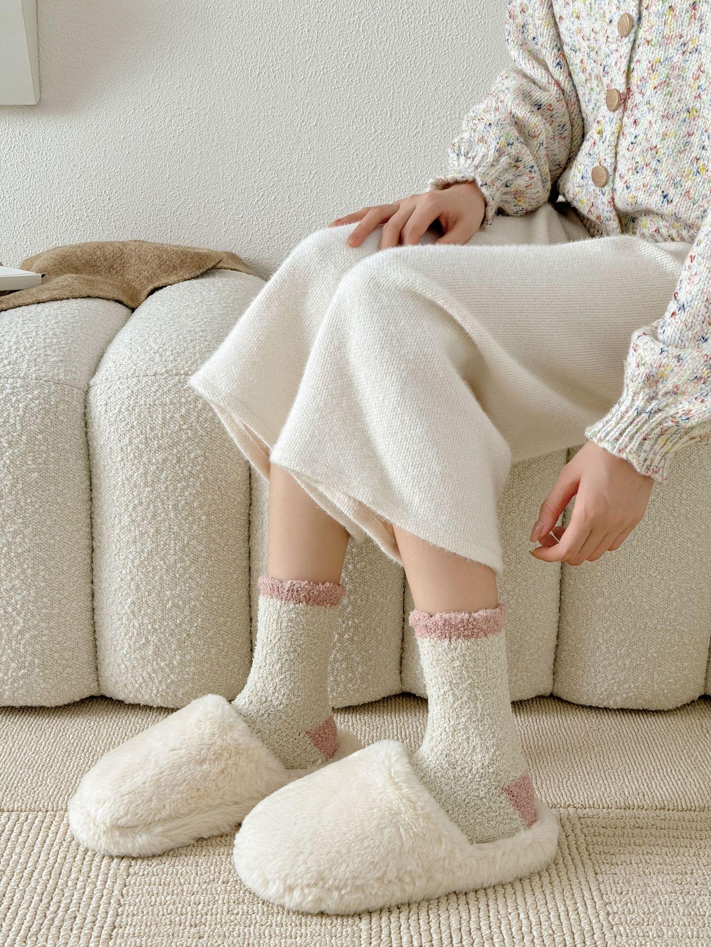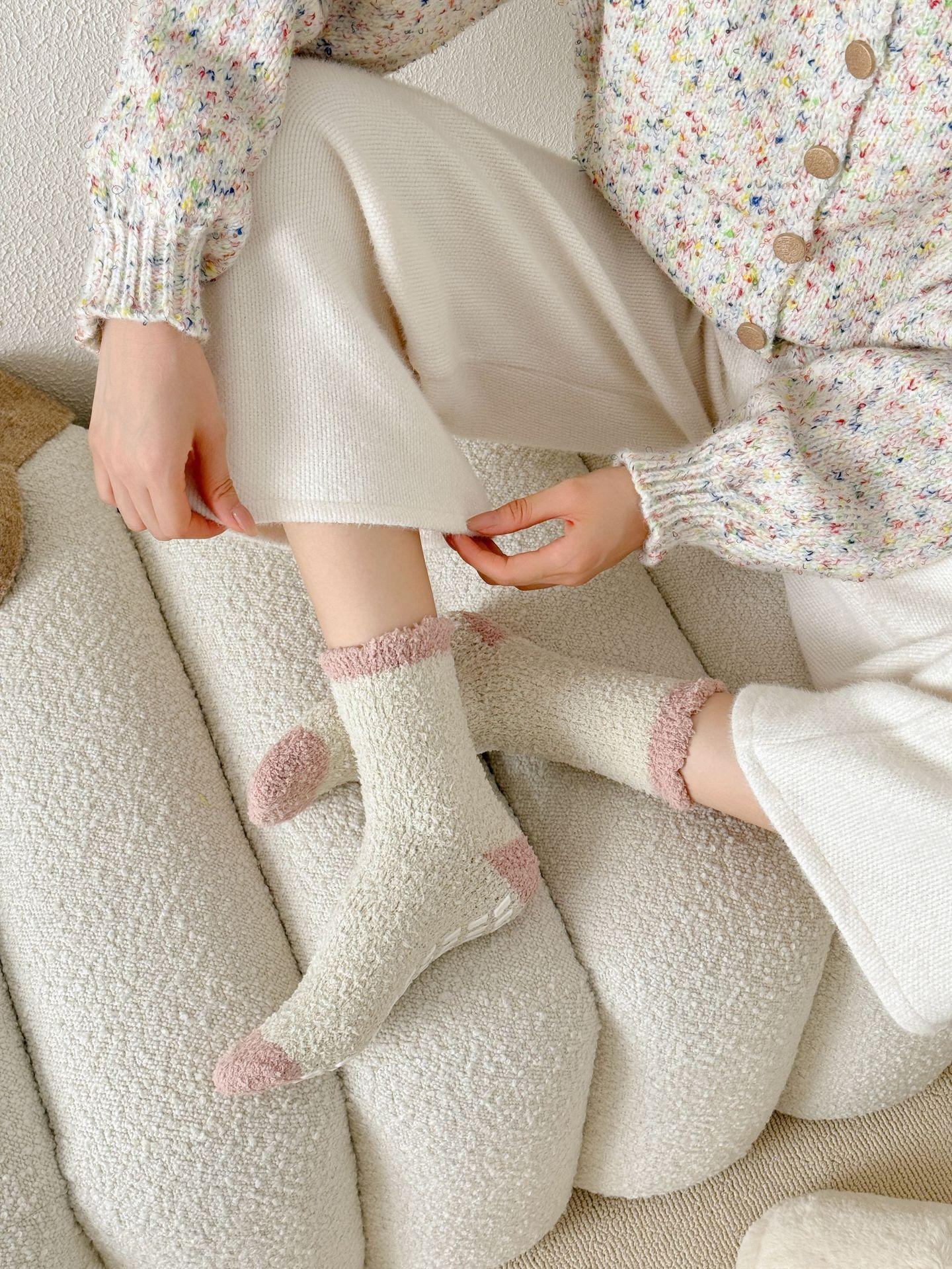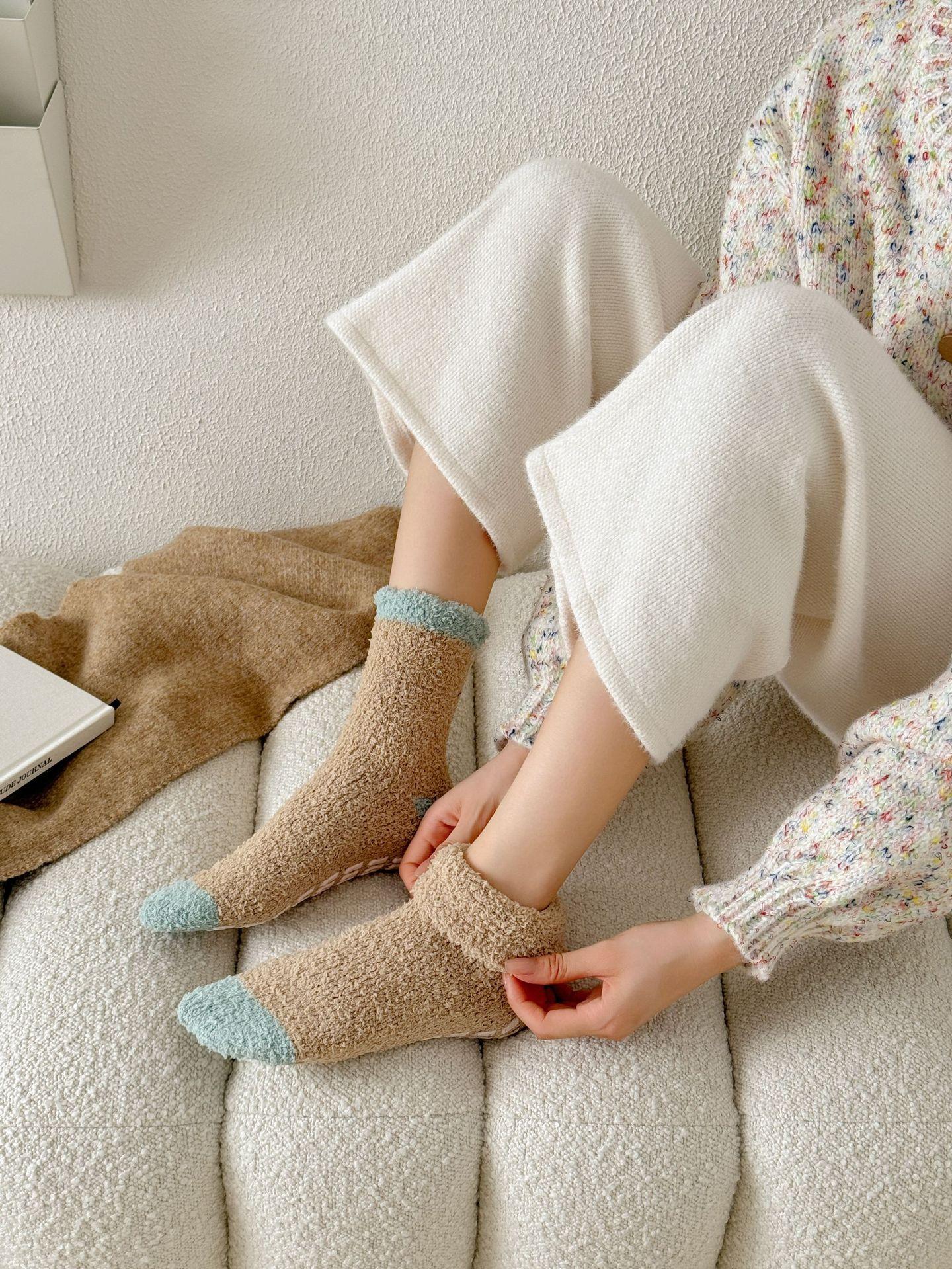 Calcetines Otoño Invierno Forro Polar Engrosados para Casa Media Pantorrilla Calcetines Otoño Invierno para Piso Calcetines de Vellón Coral Engrosados Súper Lindos Cálidos