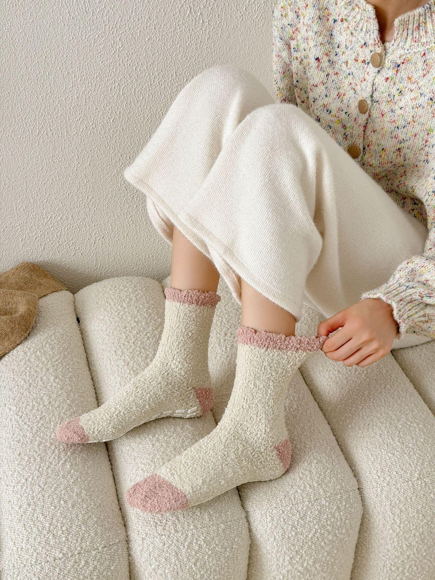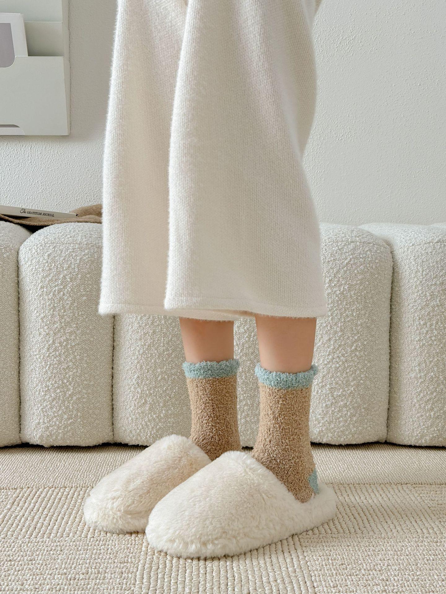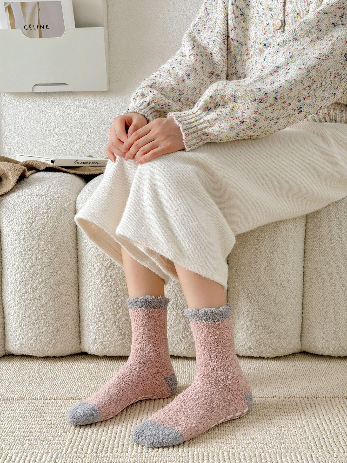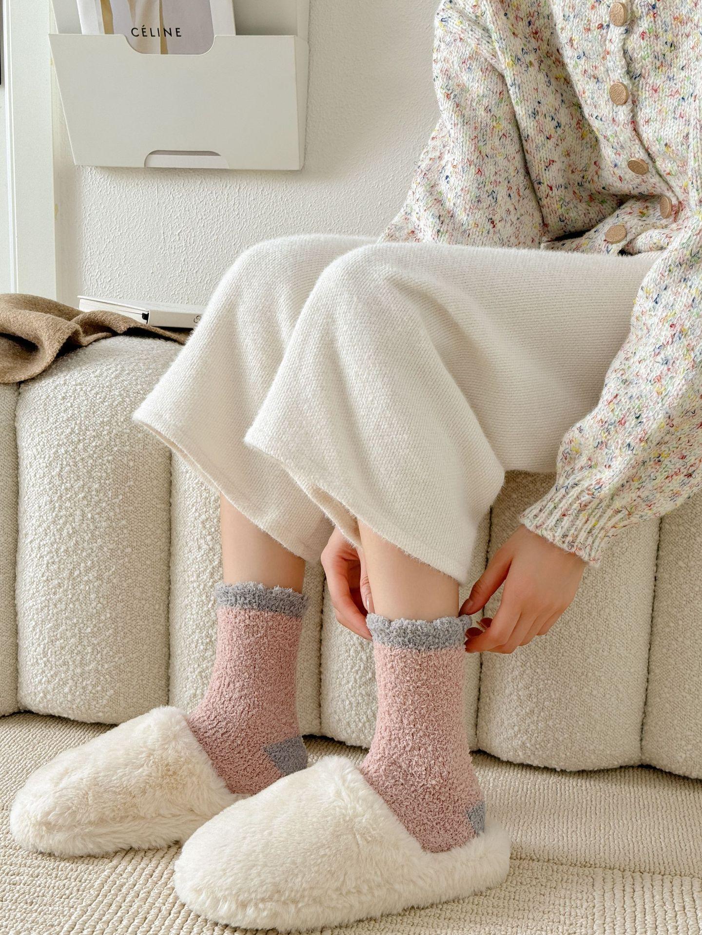 Calcetines Otoño Invierno Forro Polar Engrosados para Casa Media Pantorrilla Calcetines Otoño Invierno para Piso Calcetines de Vellón Coral Engrosados Súper Lindos Cálidos