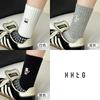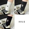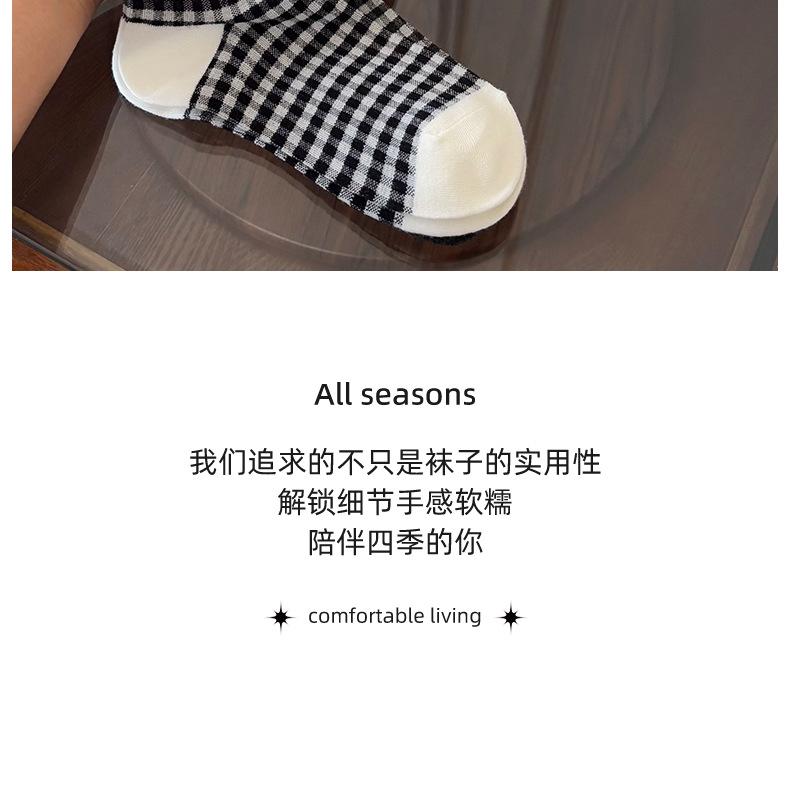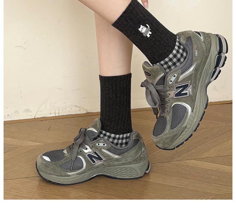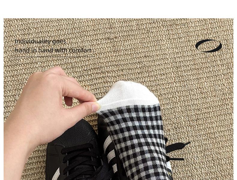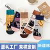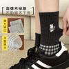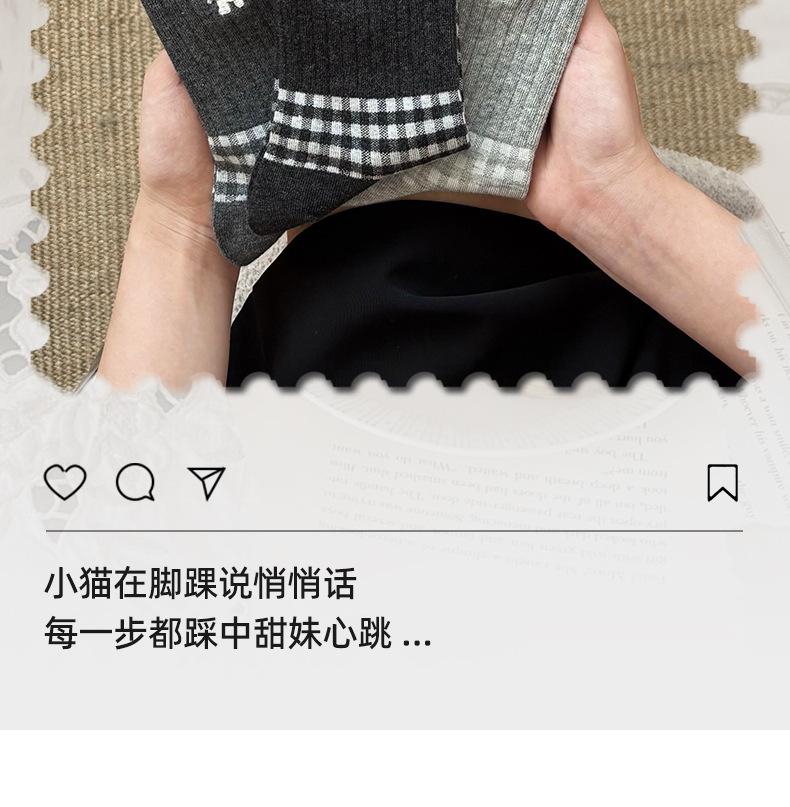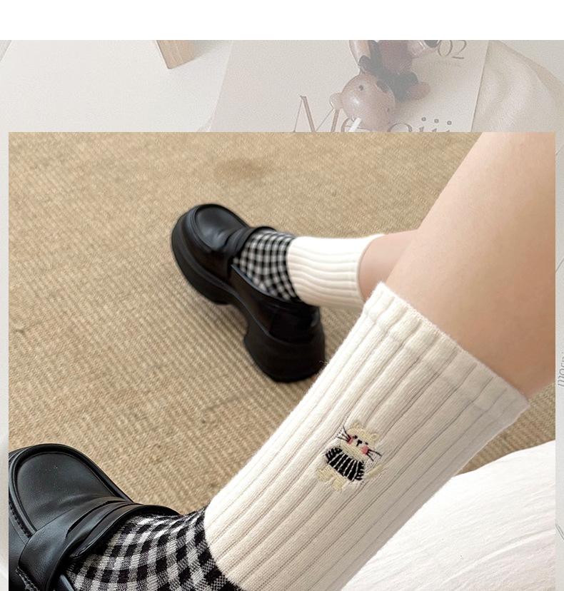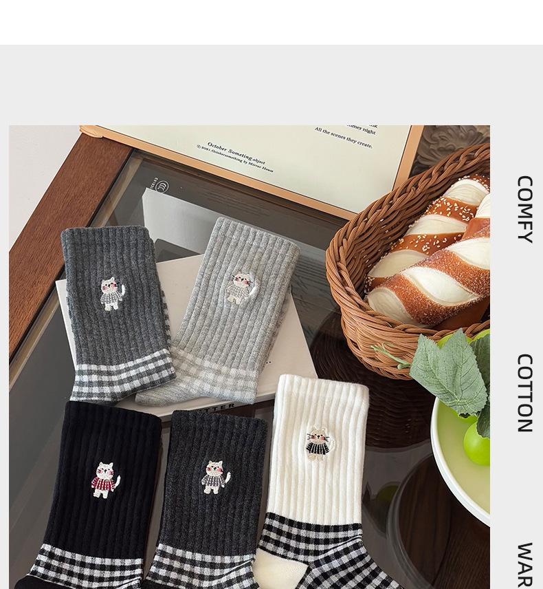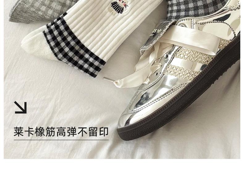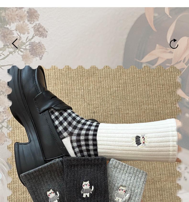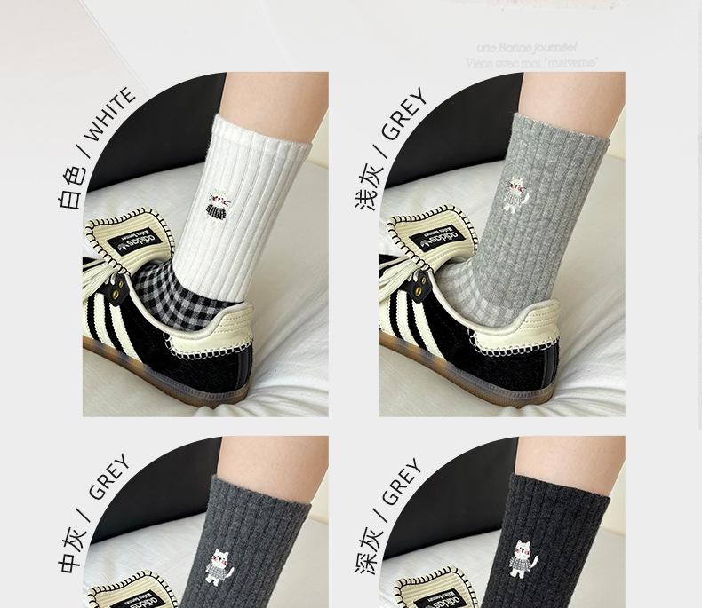 Otoño Nuevos Calcetines Calcetines de Algodón Estilo Universitario a Cuadros Japoneses Lindo Bordado de Gato de Dibujos Animados Calcetines Medianos para Mujer
