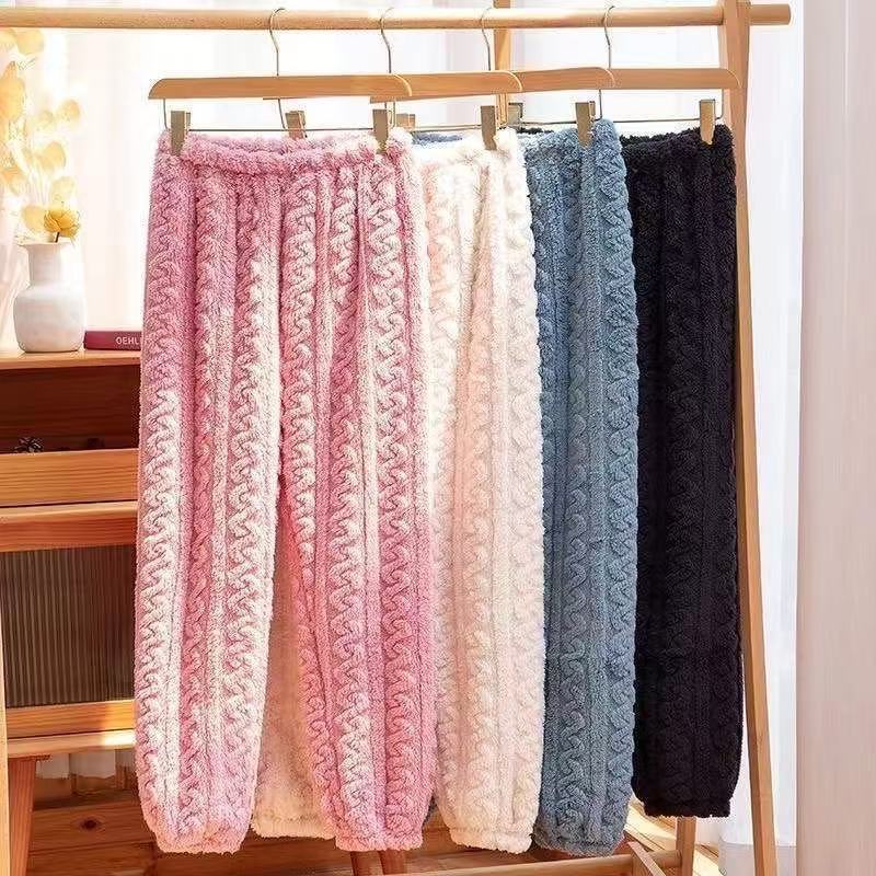 Pantalones de Pijama para Mujer Pantalones Largos Otoño Invierno Forro Polar de Coral Gruesos Talla Grande Pantalones Cálidos de Hada Franela Talla Grande Pantalones para Casa