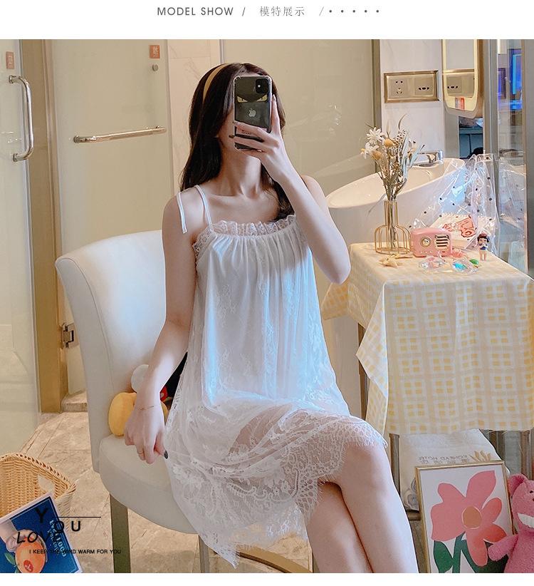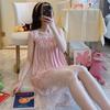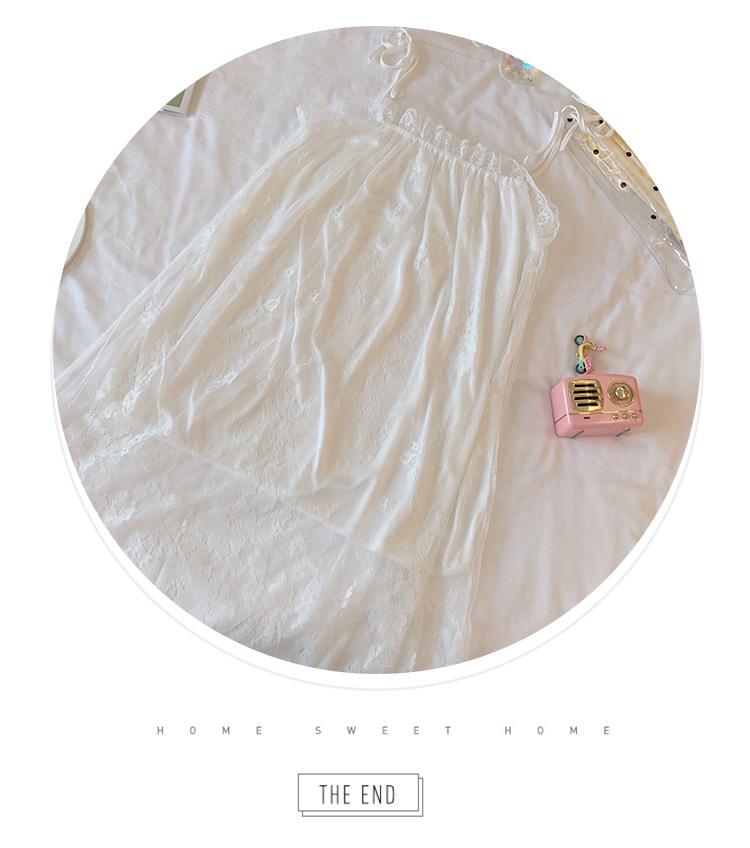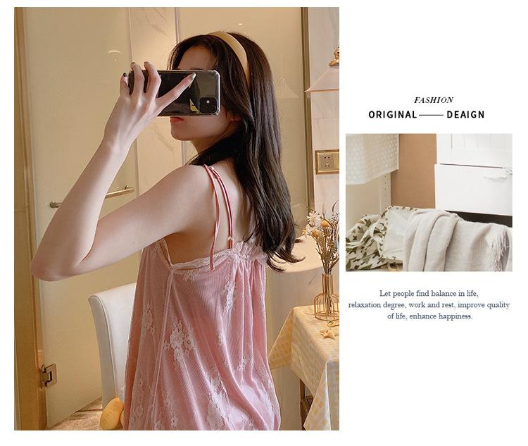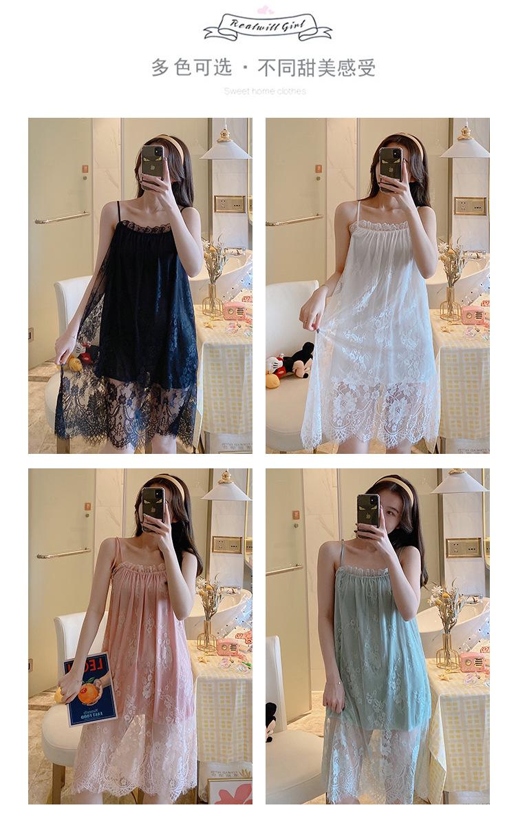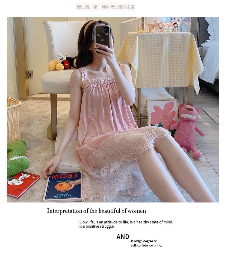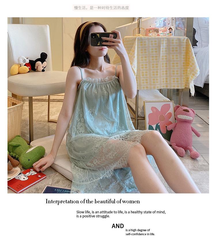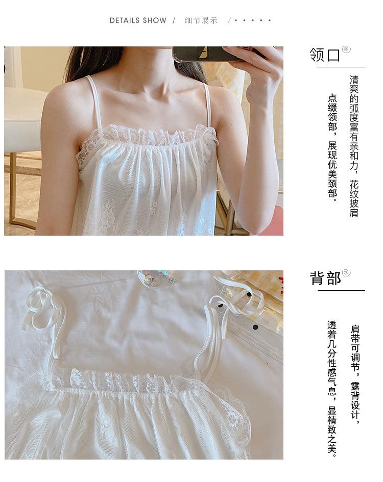 [Kamani] 501 Camisón de Verano para Mujer de Manga Corta Sexy con Tirantes Malla Encaje Estilo Princesa Pijama