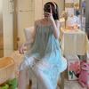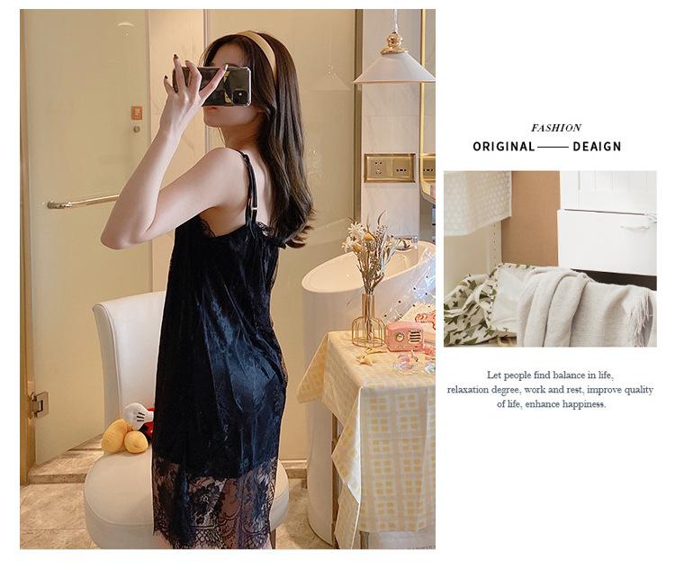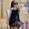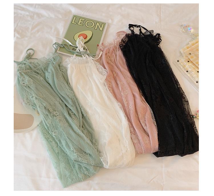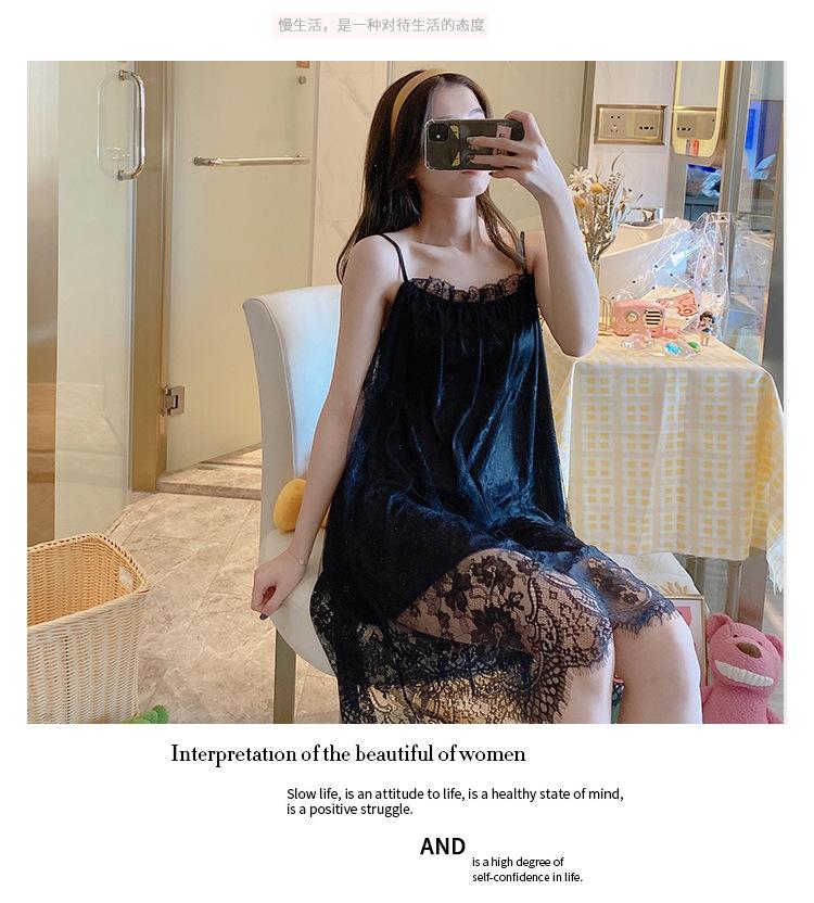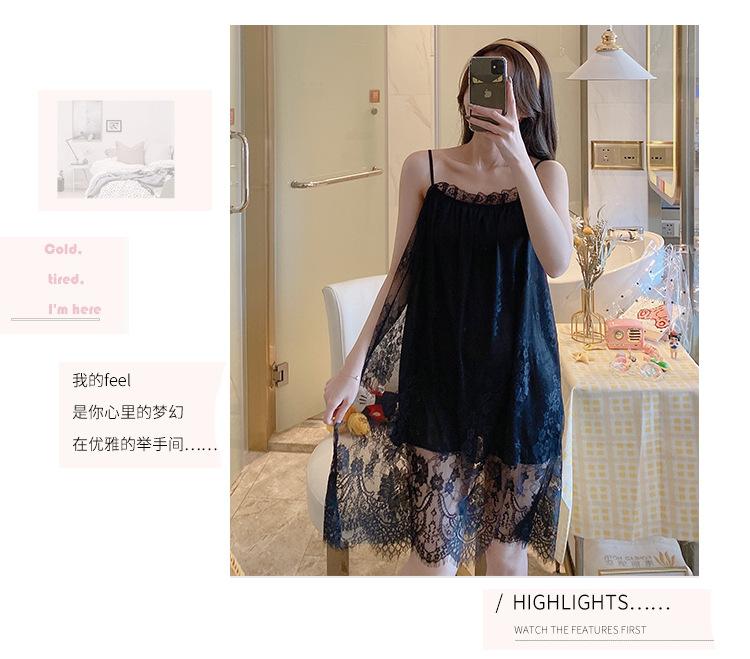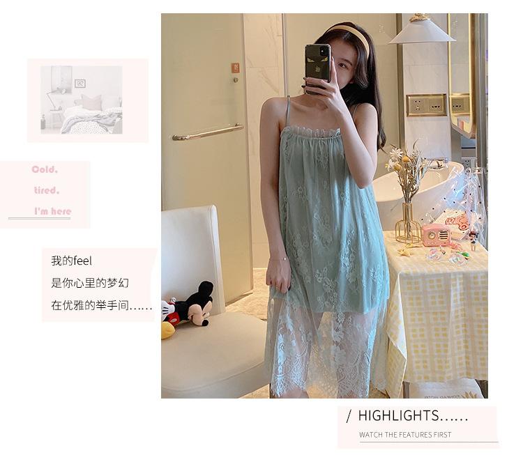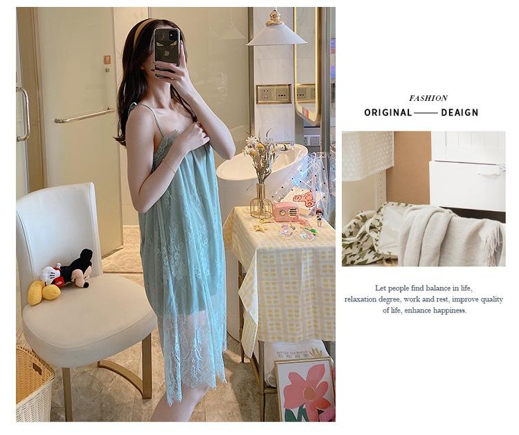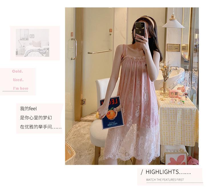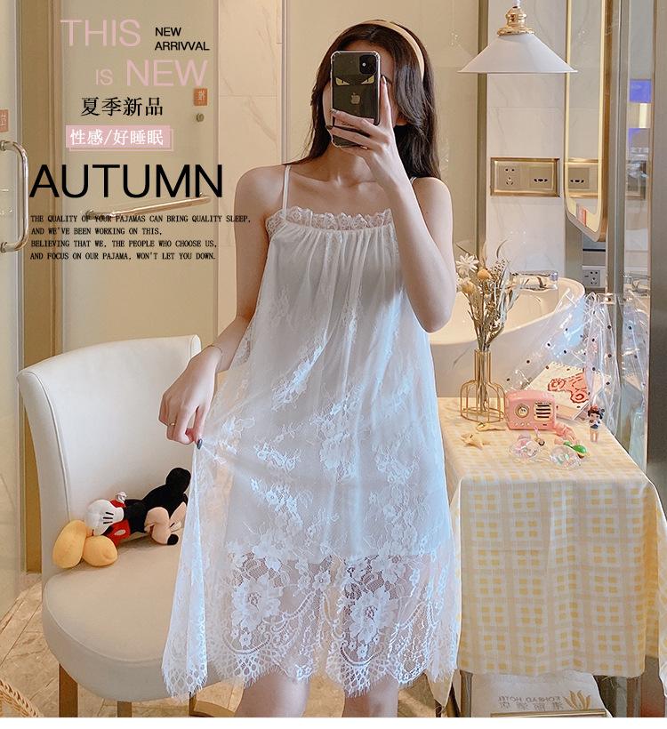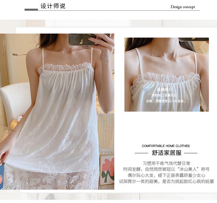 [Kamani] 501 Camisón de Verano para Mujer de Manga Corta Sexy con Tirantes Malla Encaje Estilo Princesa Pijama