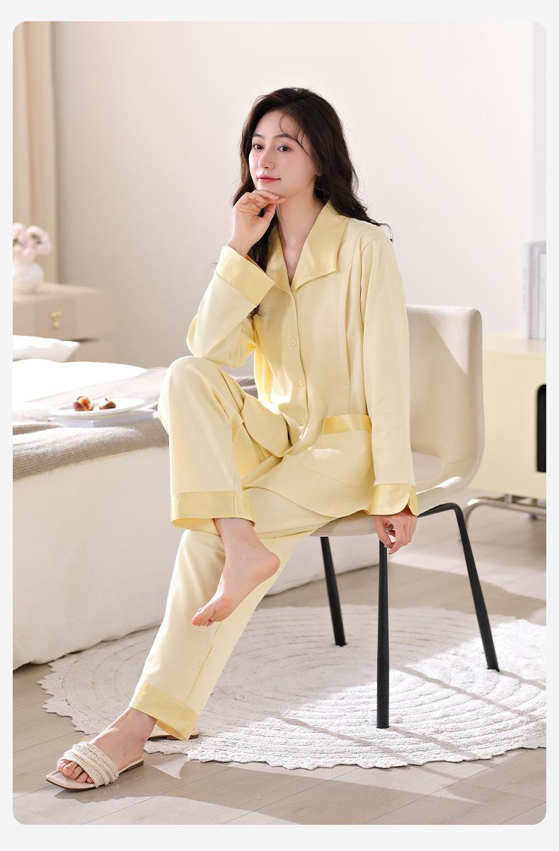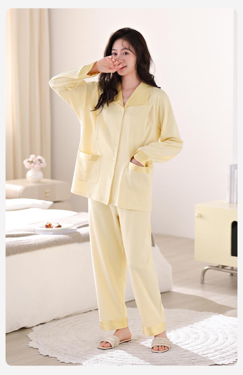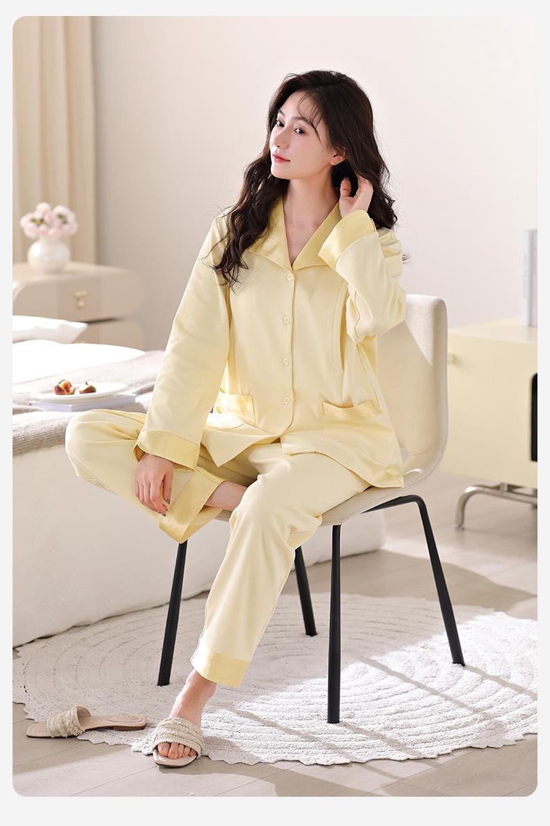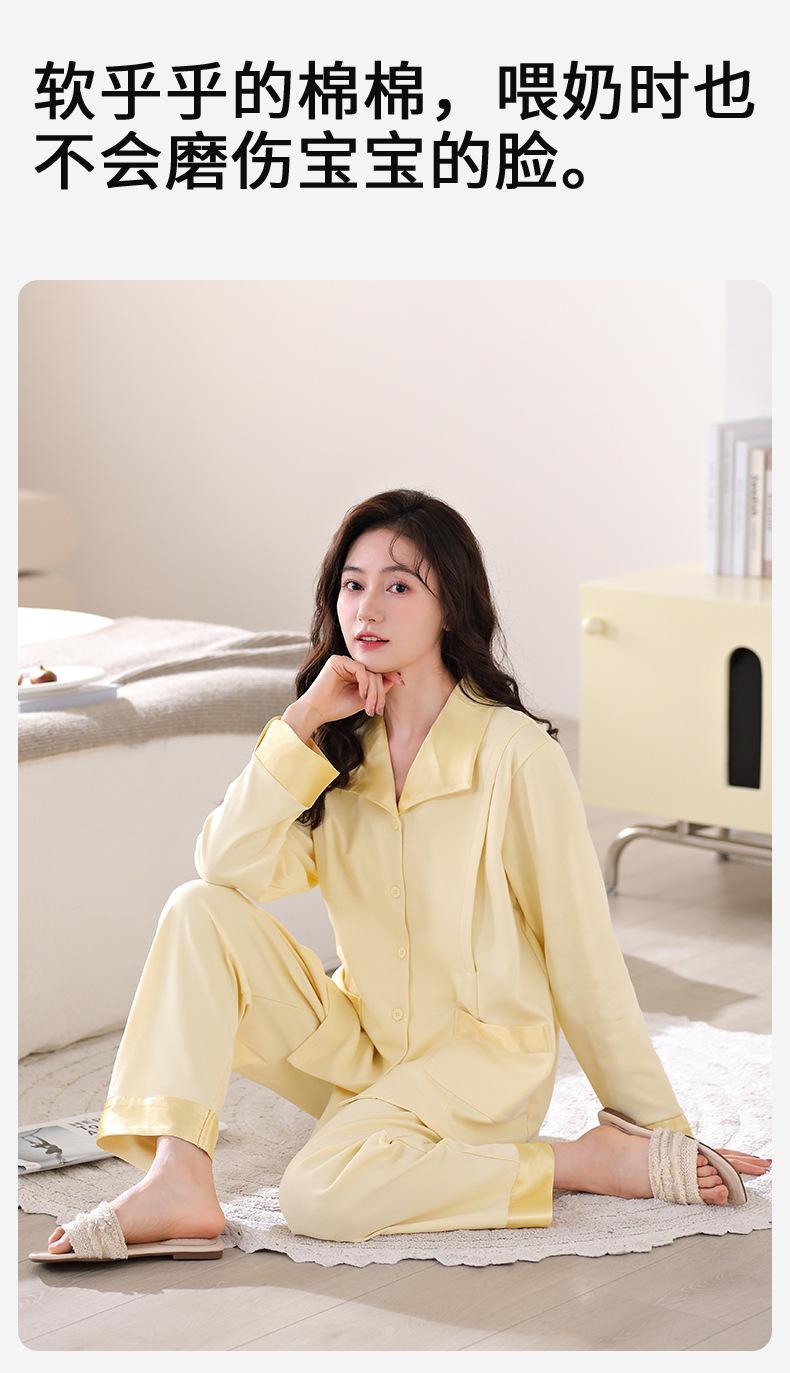 Ropa posparto Xi Yue nuevo estilo maternidad lactancia color sólido pijamas primavera y otoño algodón puro cuello vuelto ropa de lactancia para mujeres embarazadas ropa para el hogar