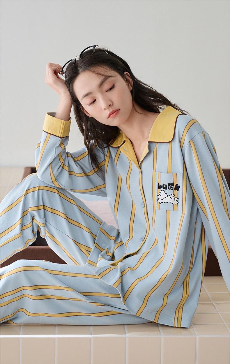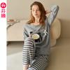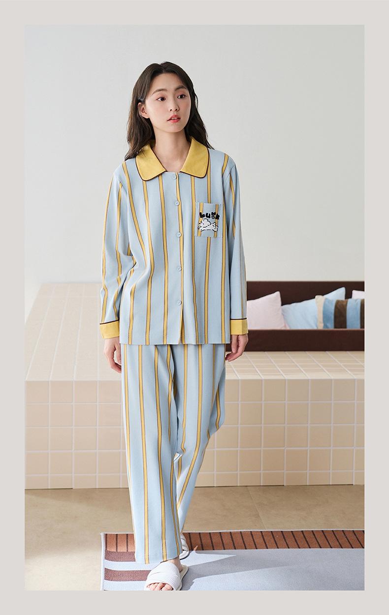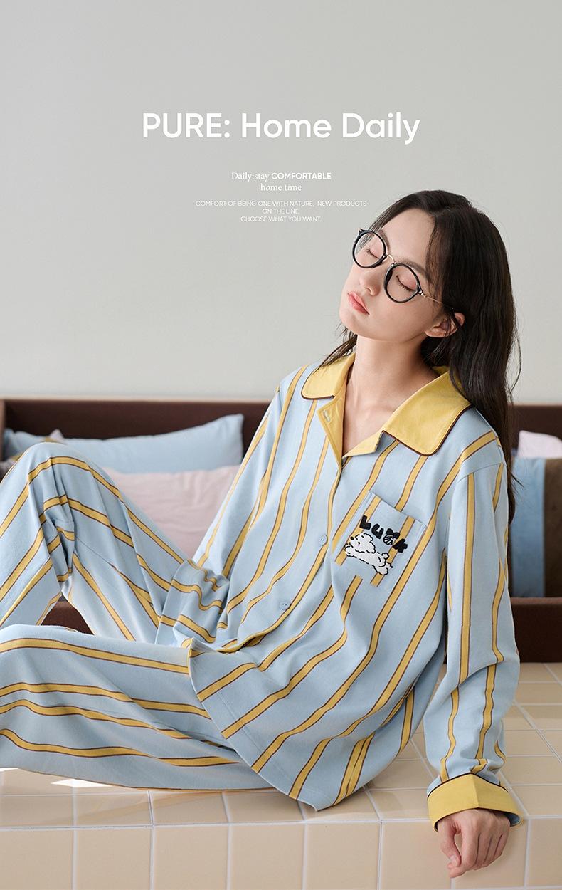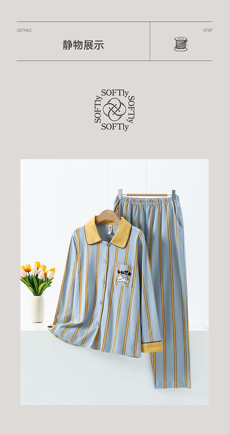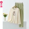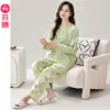 Fenteng [Algodón para Dormir] Pijama Mujer Primavera Otoño Algodón Puro Manga Larga Pantalón Largo Todo Algodón Se Puede Usar Afuera Conjunto Ropa de Casa Mujer