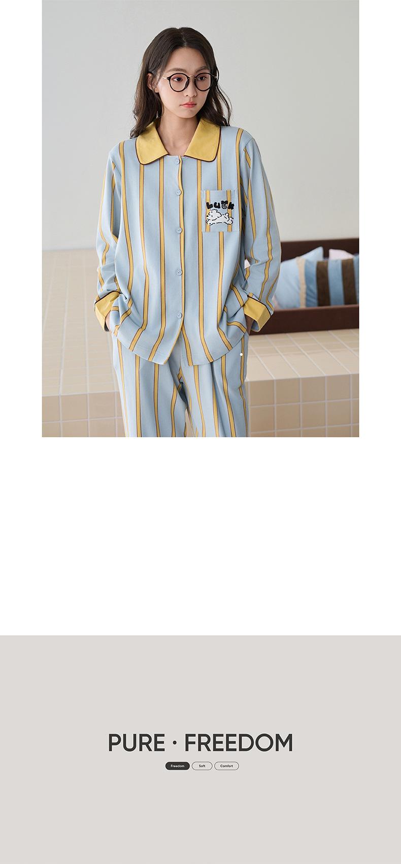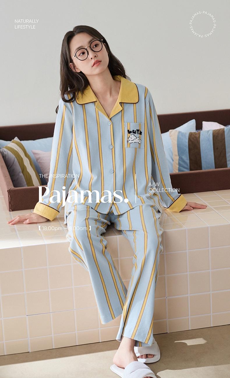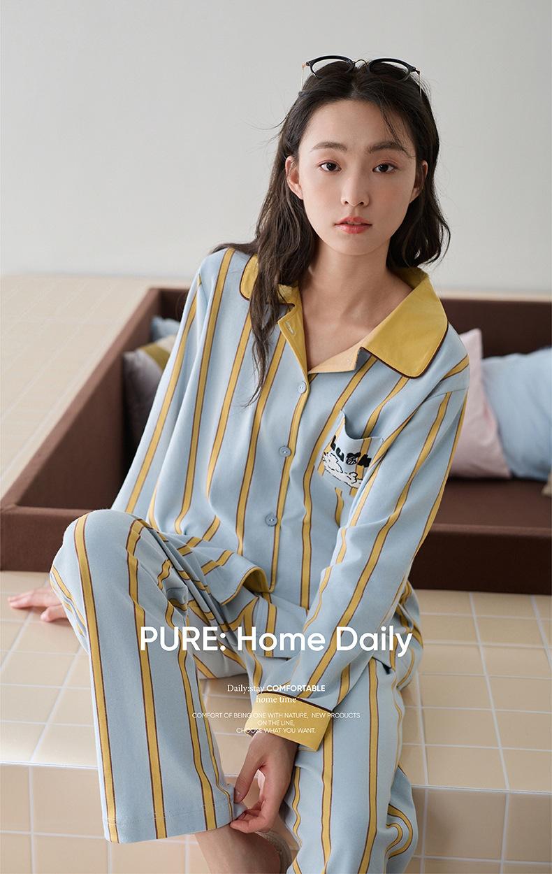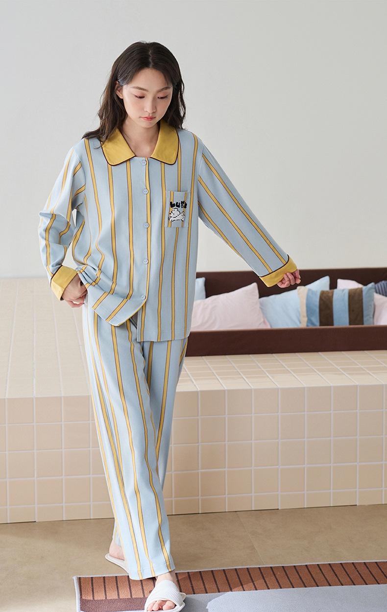 Fenteng [Algodón para Dormir] Pijama Mujer Primavera Otoño Algodón Puro Manga Larga Pantalón Largo Todo Algodón Se Puede Usar Afuera Conjunto Ropa de Casa Mujer