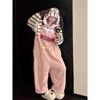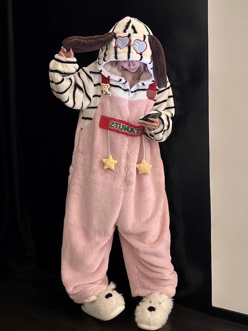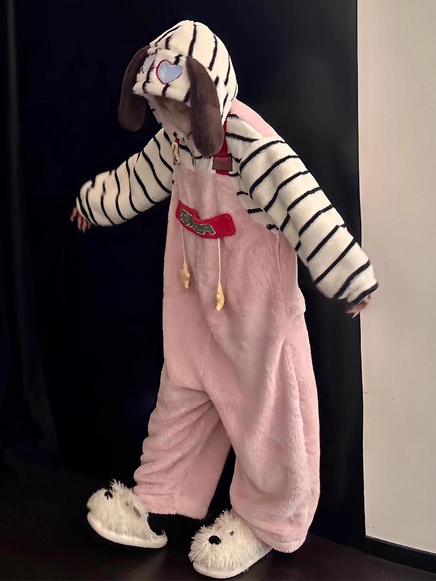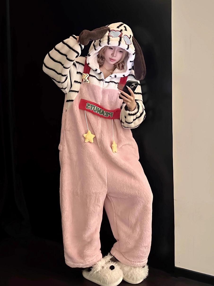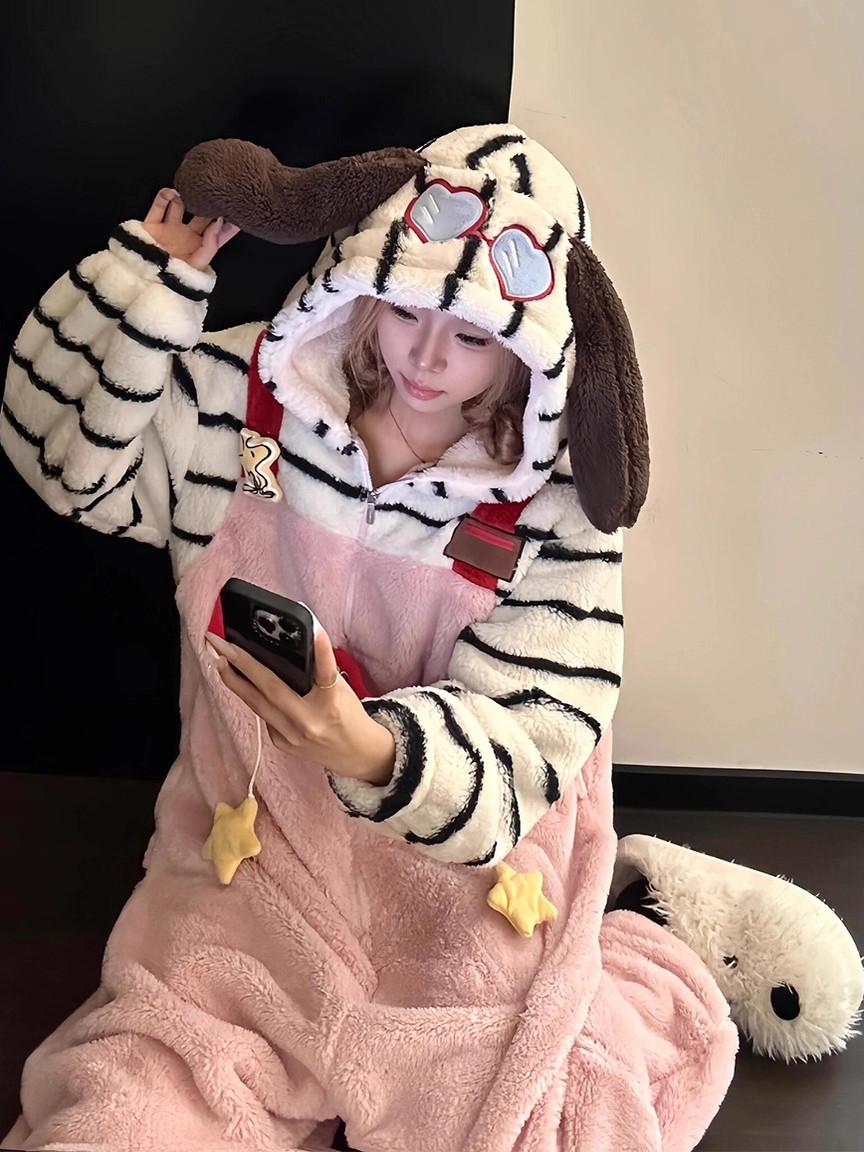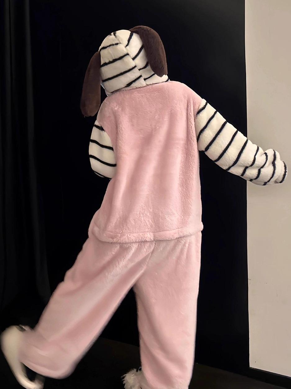Pijama dulce y encantador de orejas de cachorro de terciopelo medio para mujer otoño e invierno cálido para el hogar casual suelto cómodo mameluco
