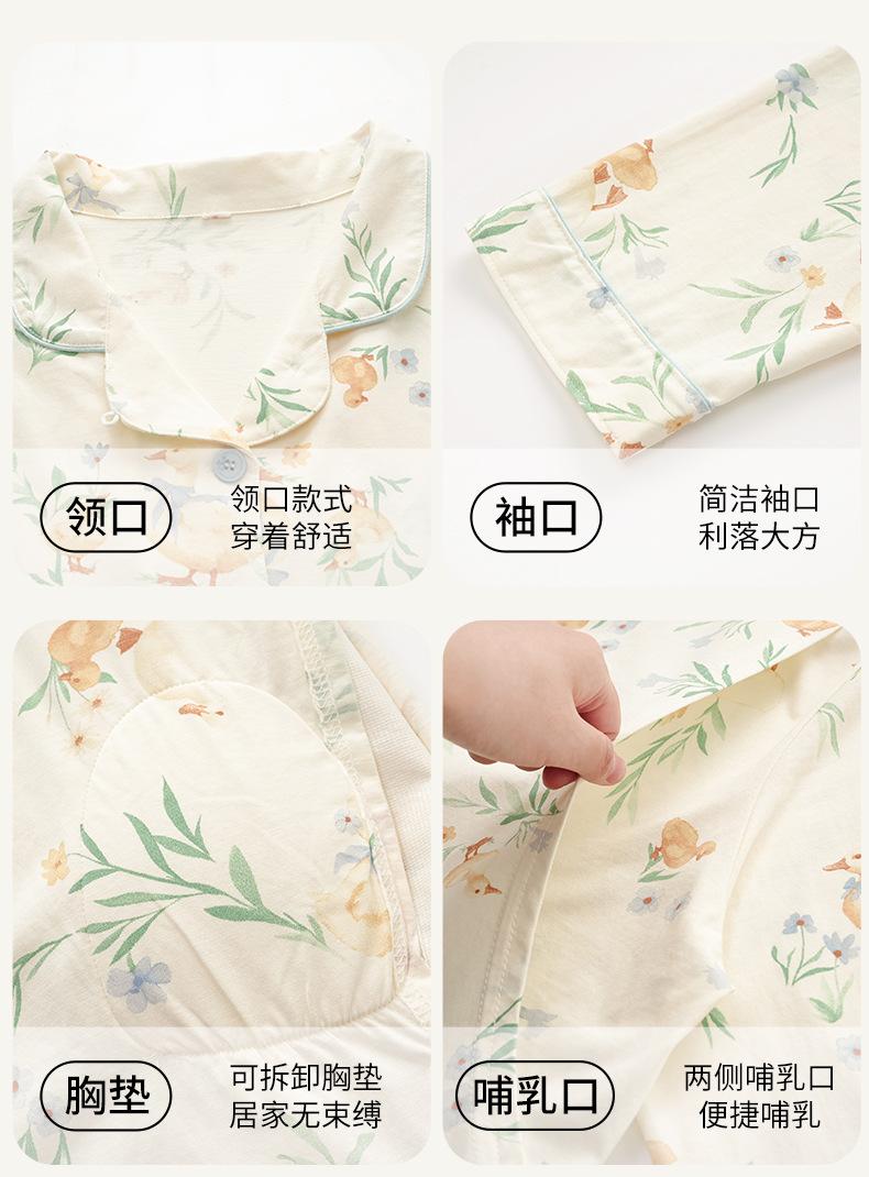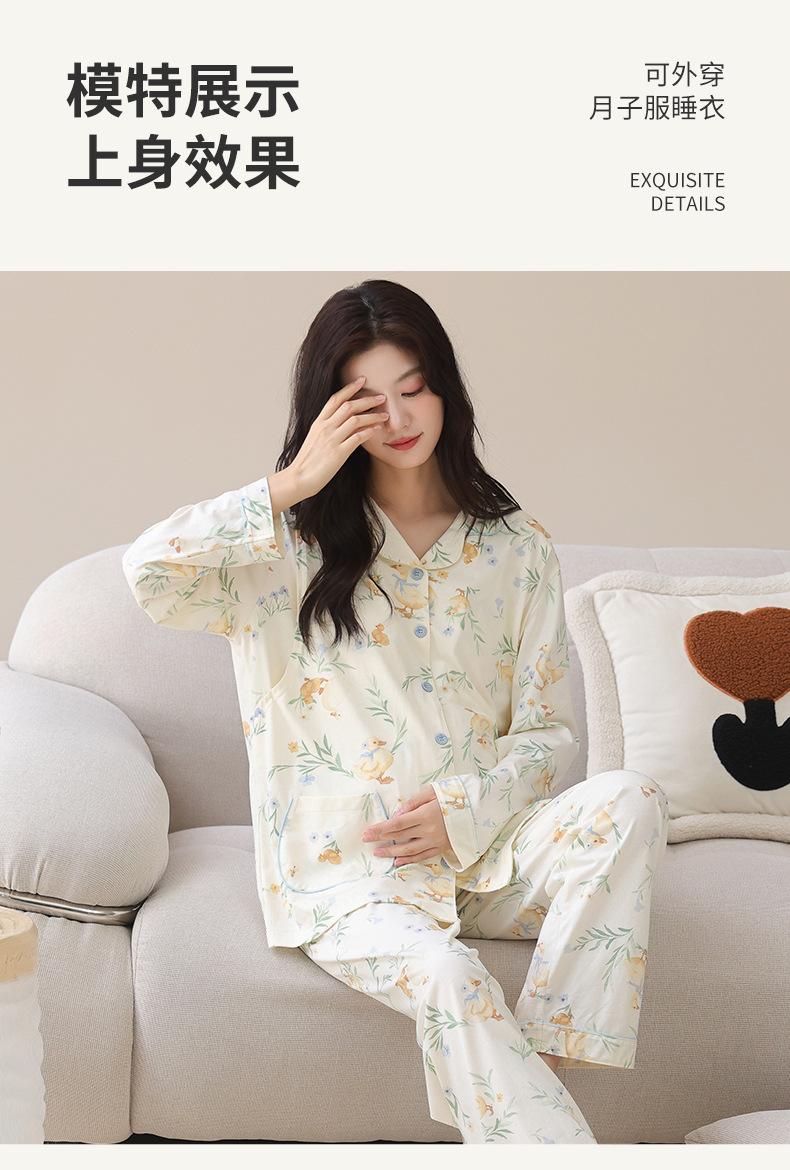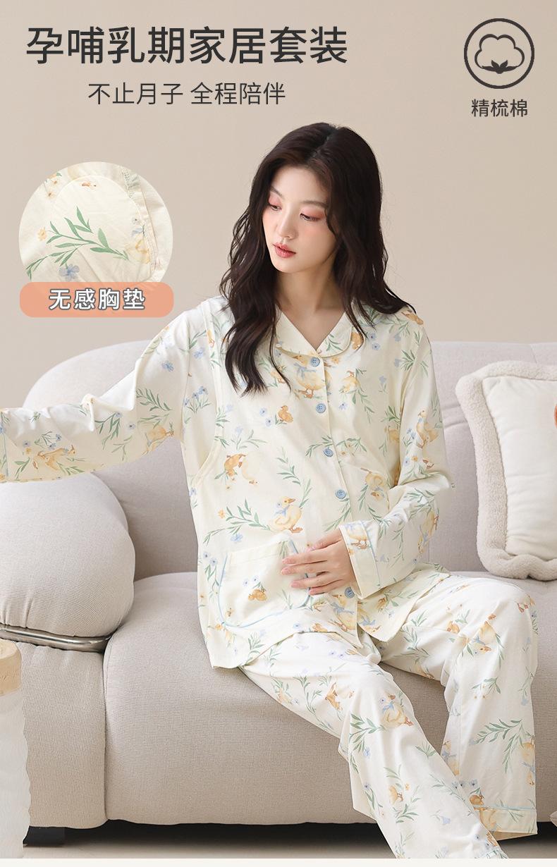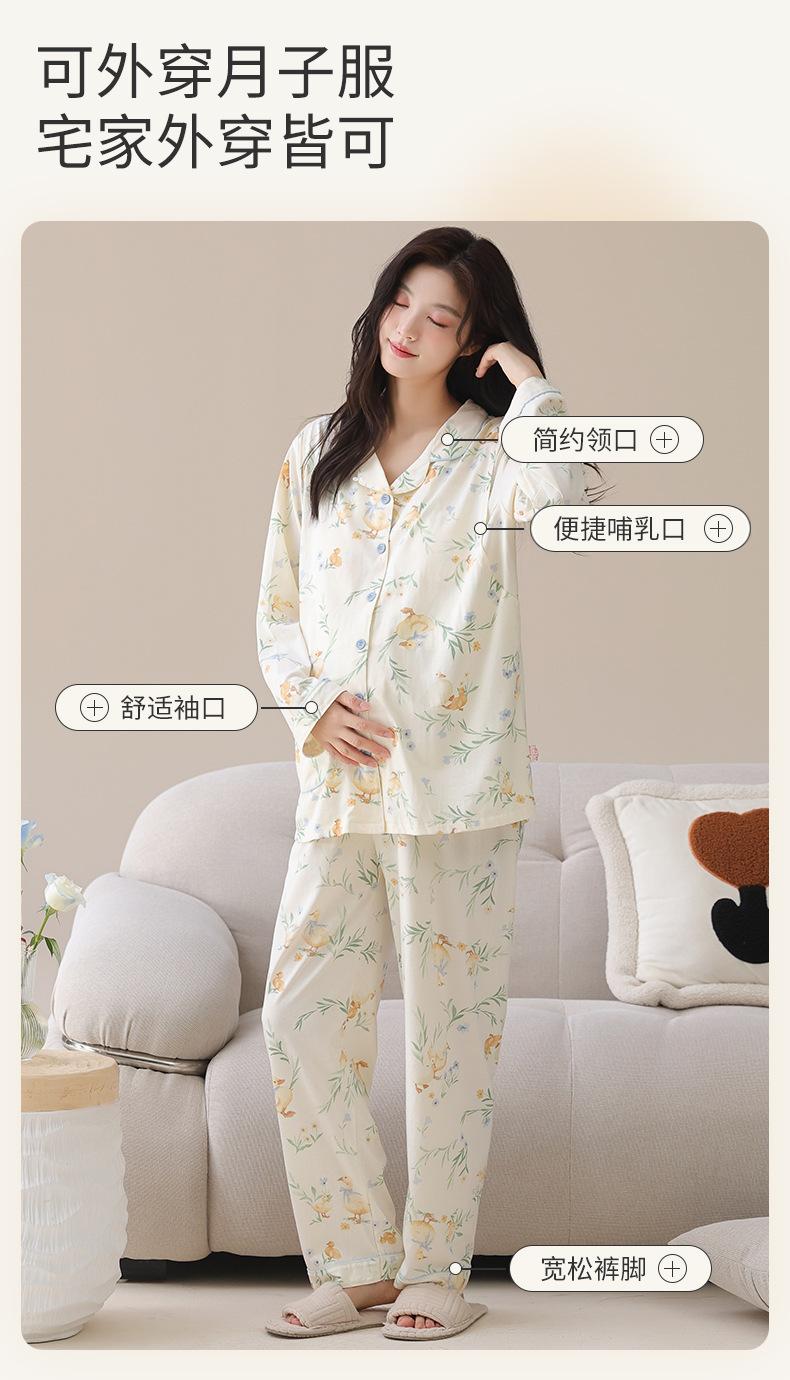 Xi Yue Venta al por Mayor Nuevo Estilo Algodón Imitación Manga Larga Ropa de Maternidad Otoño con Almohadillas para el Busto Pijama de Lactancia Set para Lactancia Postparto para Mujeres Embarazadas