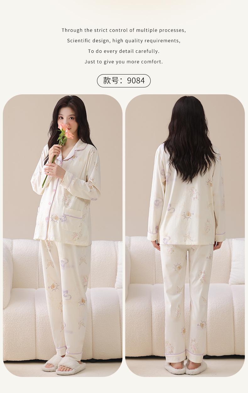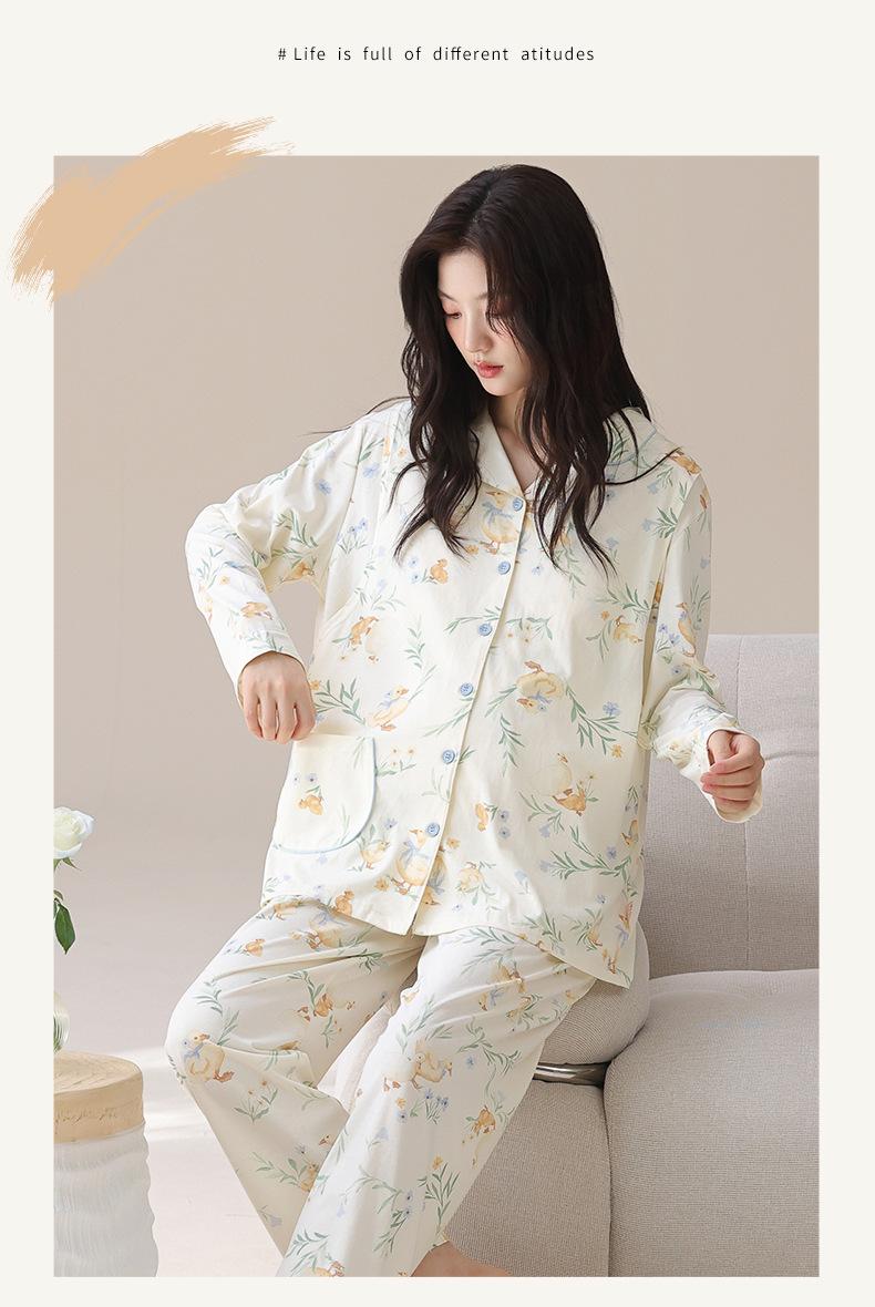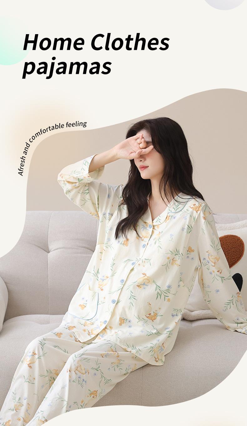 Xi Yue Venta al por Mayor Nuevo Estilo Algodón Imitación Manga Larga Ropa de Maternidad Otoño con Almohadillas para el Busto Pijama de Lactancia Set para Lactancia Postparto para Mujeres Embarazadas