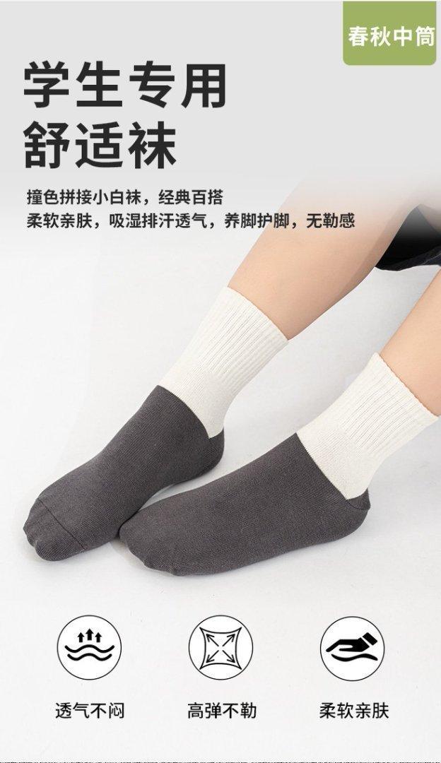Calcetines para niños primavera y otoño estudiante niños y niñas calcetines blancos otoño e invierno fondo gris tubo medio calcetines deportivos niños medianos y grandes blanco resistente a la suciedad