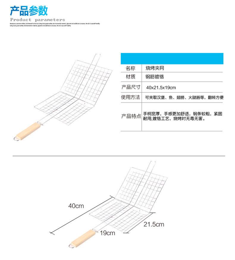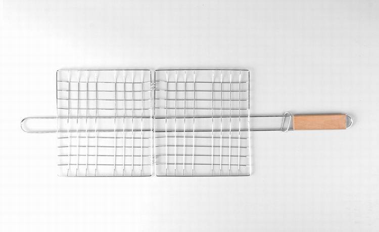 Parrilla para Barbacoa Multifuncional con Mango de Madera, Parrilla para Pollo, Parrilla para BBQ, Rejilla Cuadrada para Barbacoa, Herramienta para Barbacoa al Aire Libre