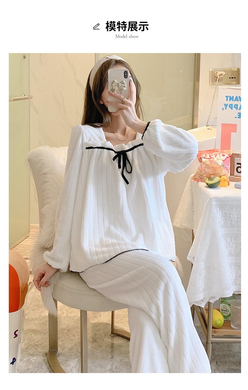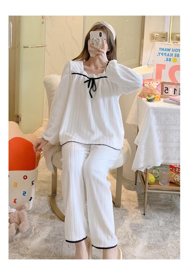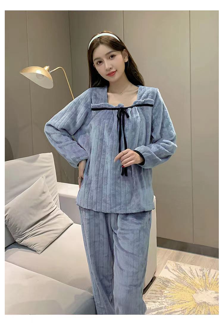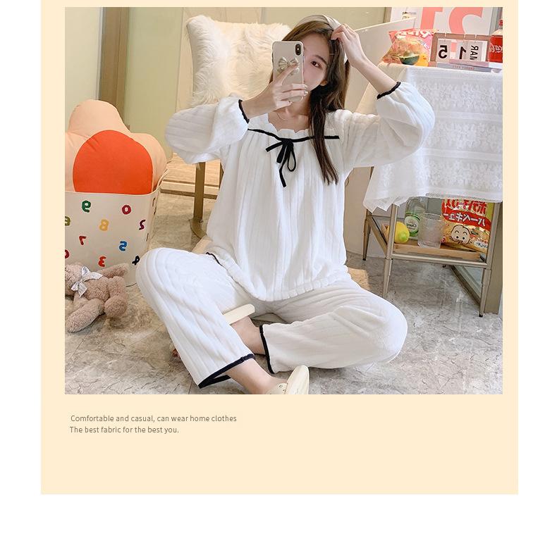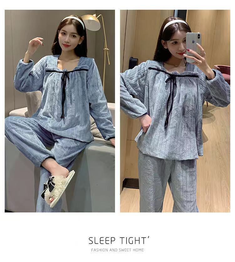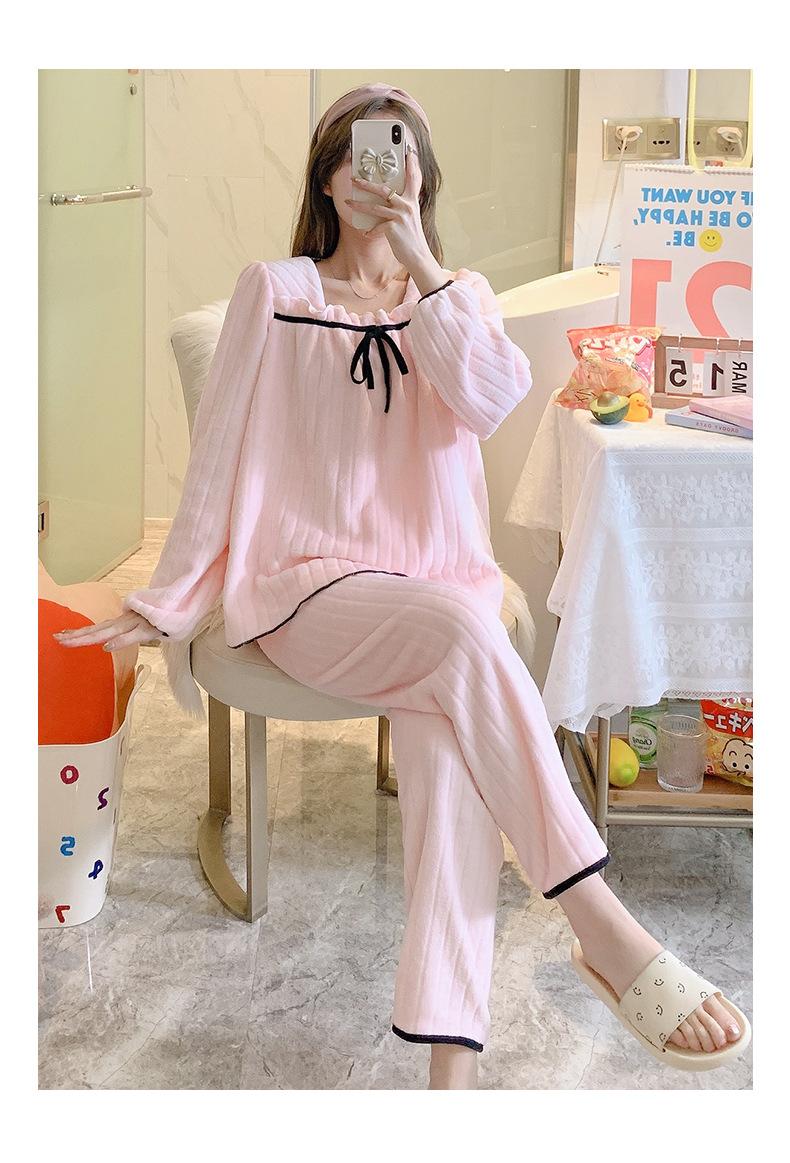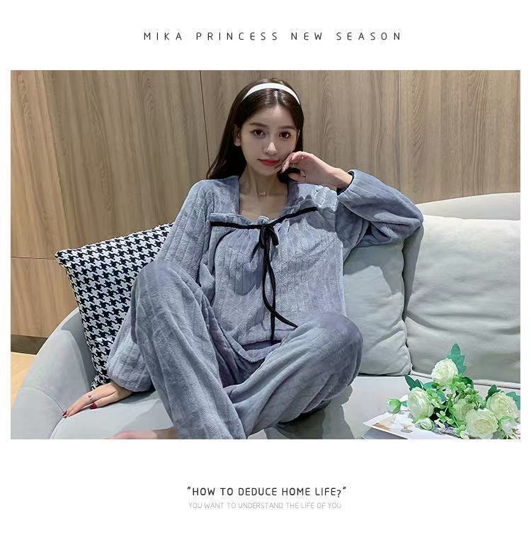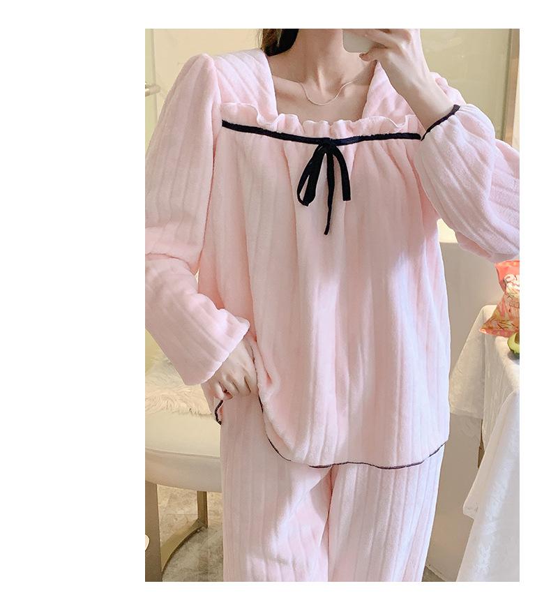 Pijama de otoño e invierno para mujer, invierno de forro polar de coral engrosado y plus terciopelo, lindo estilo princesa de corte, conjunto de ropa de casa de franela