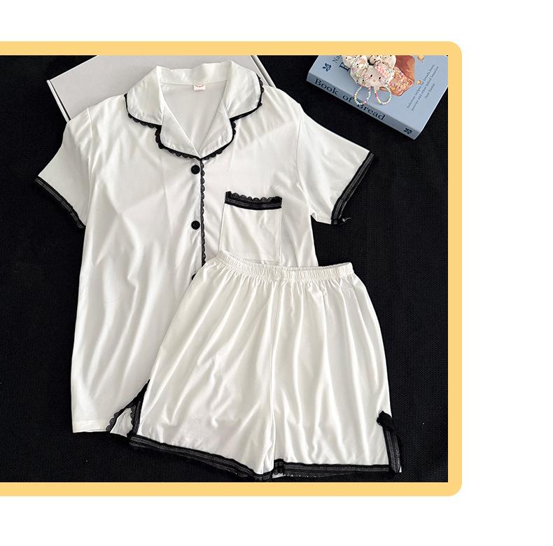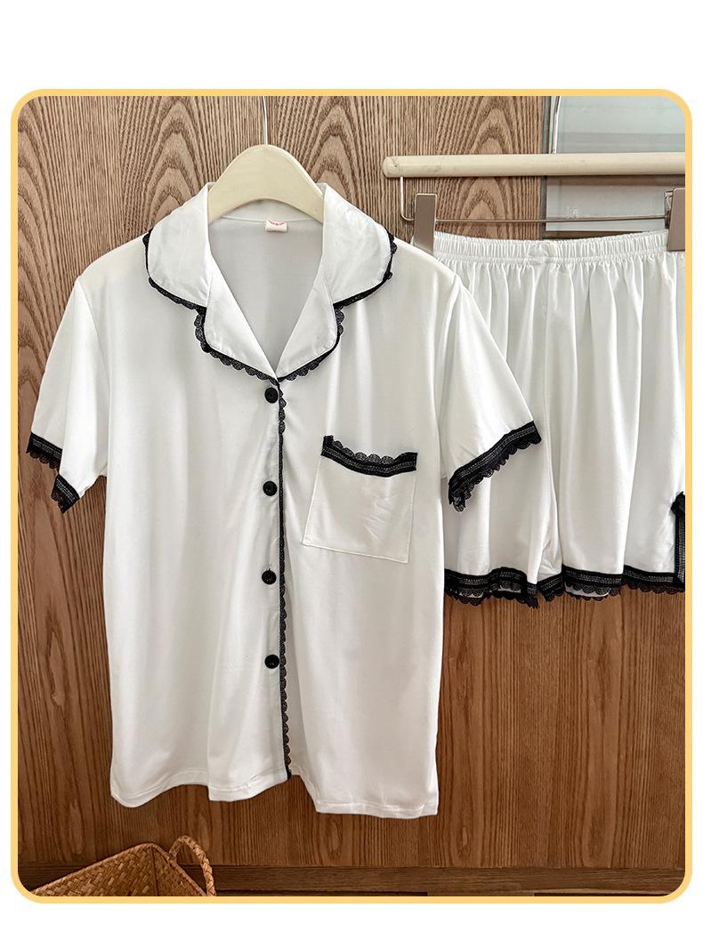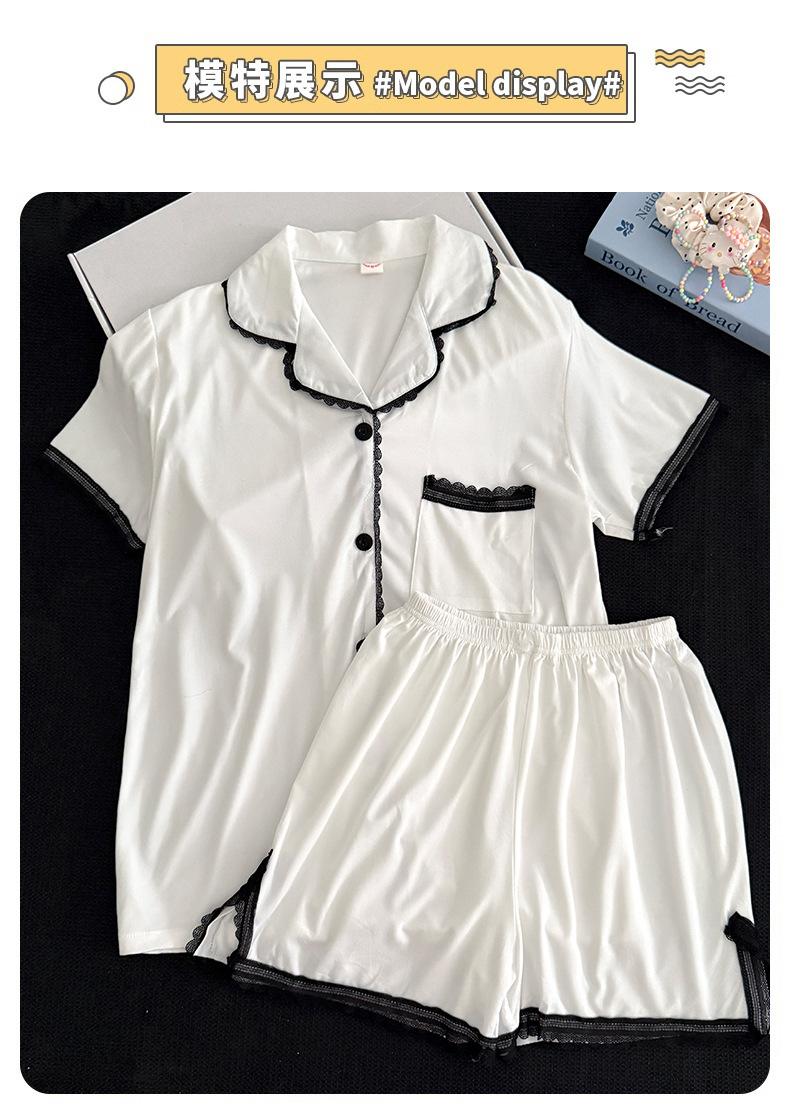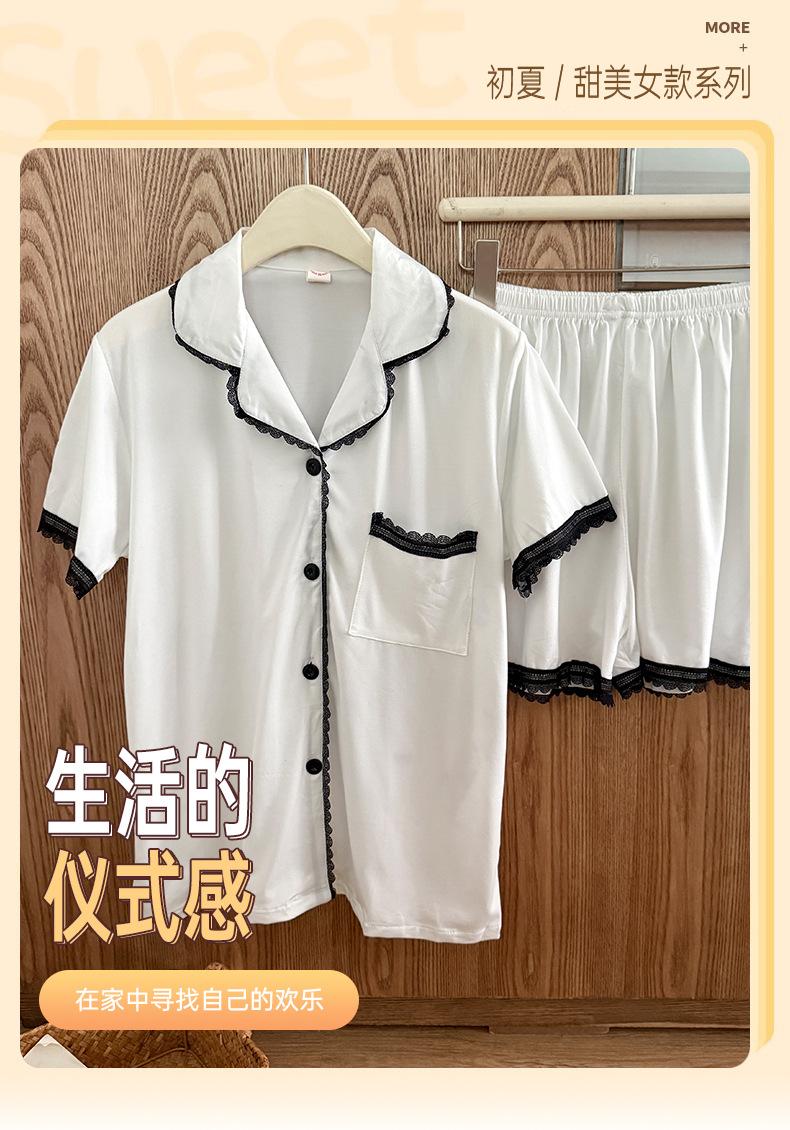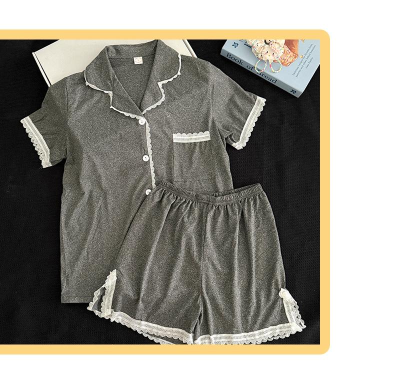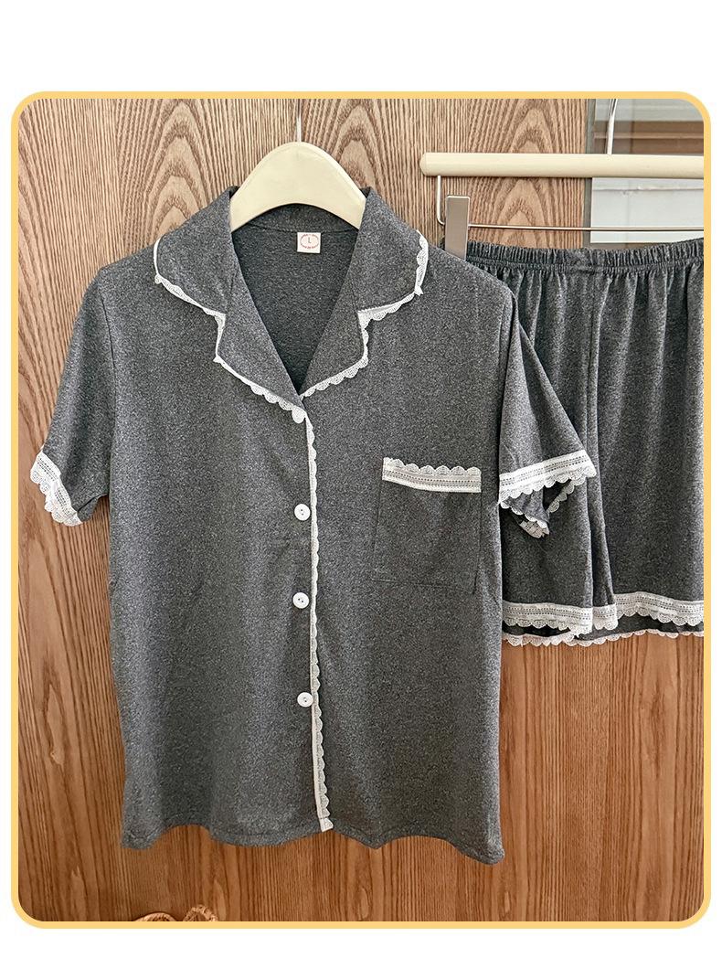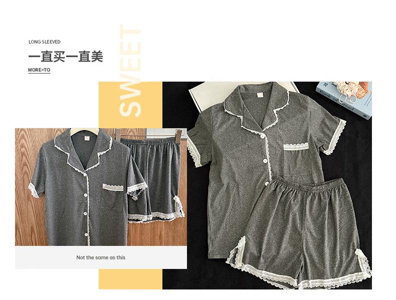 Cárdigan de Encaje Corto de Verano para Mujer Transfronterizo de Solapa Sencillo de Color Sólido Pijama Imitación Algodón Cómodo y Transpirable