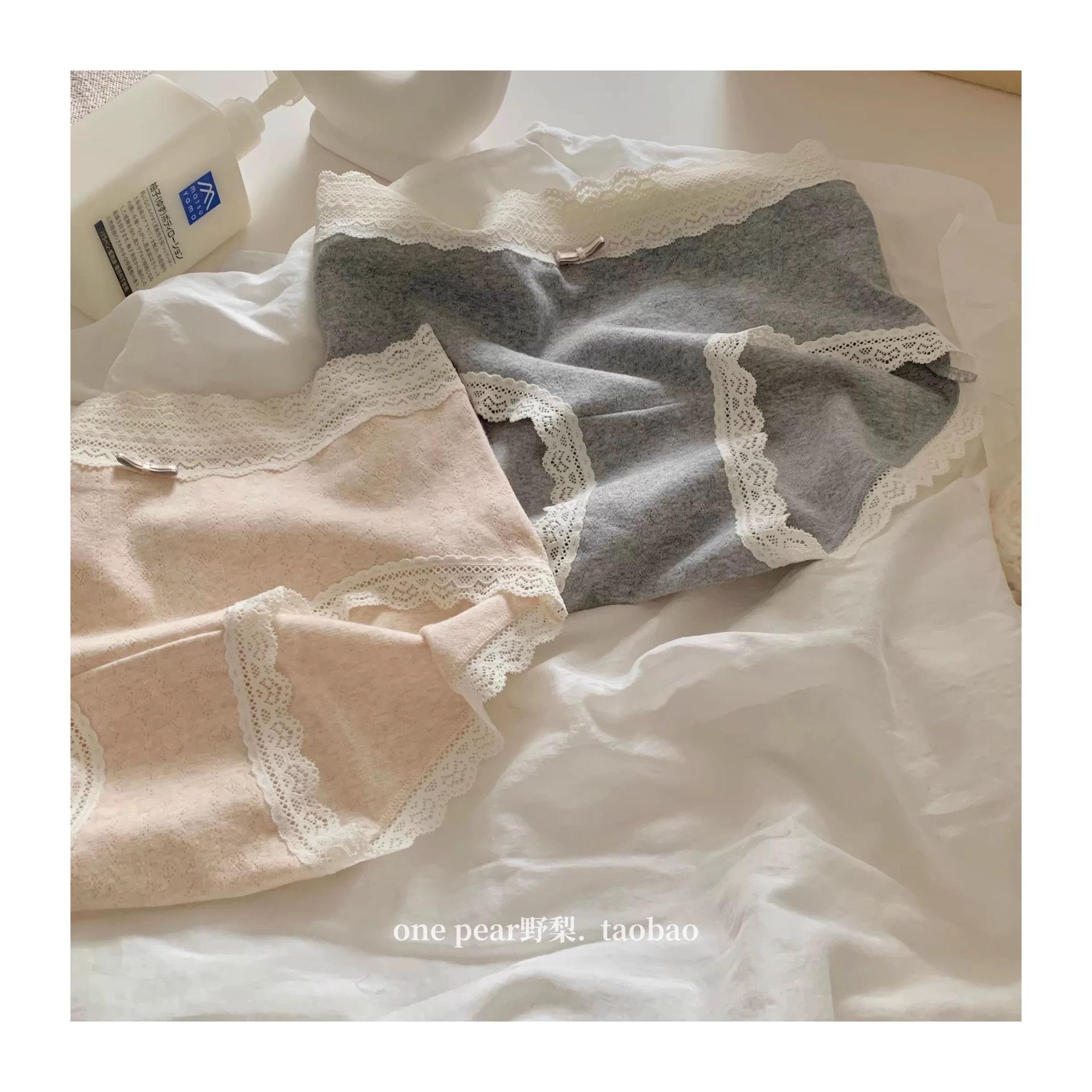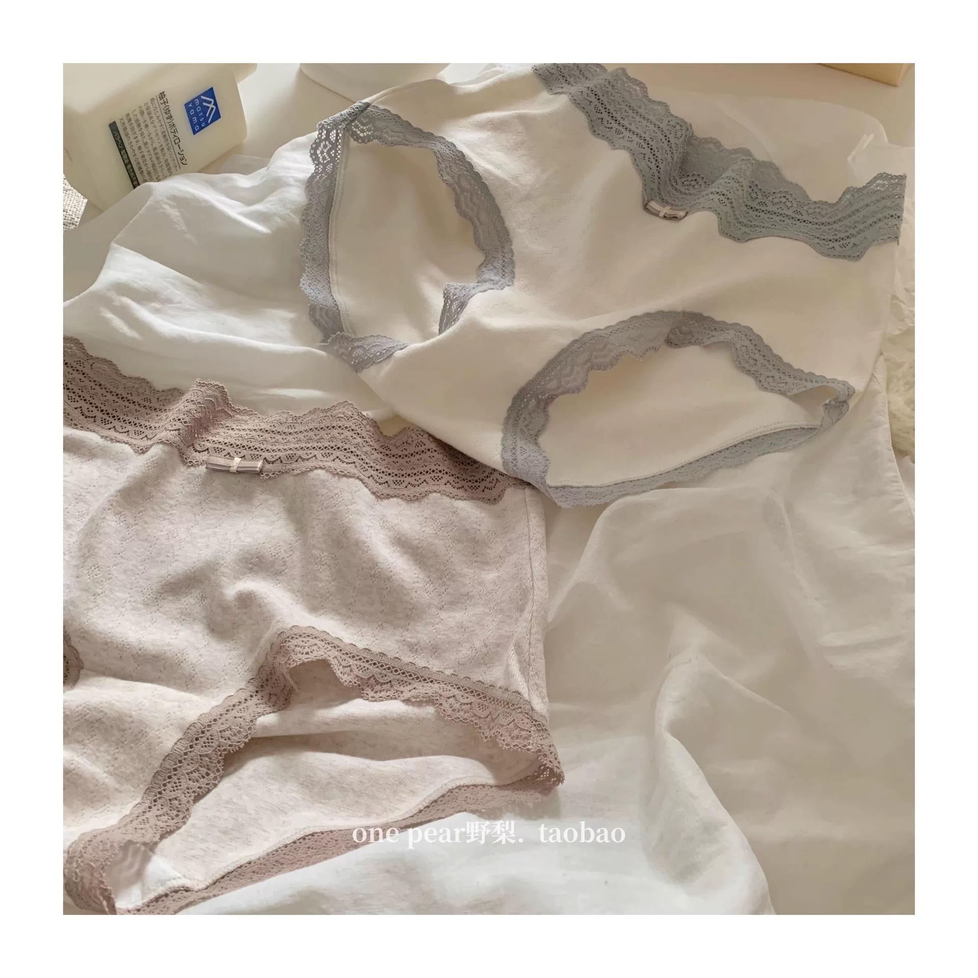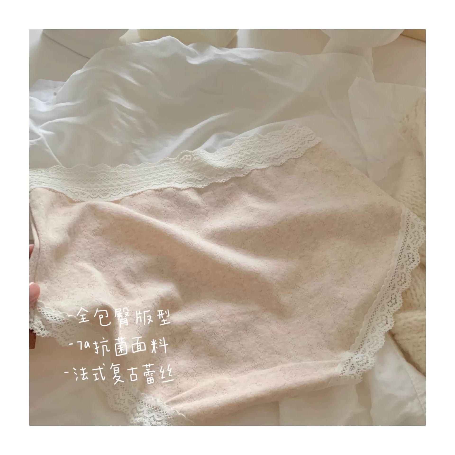 Encaje Romántico Francés Dulce Suave Transpirable 7A Algodón Puro Antibacterial Cintura Media-Alta Cubre Cadera Ropa Interior Calzones de Mujer
