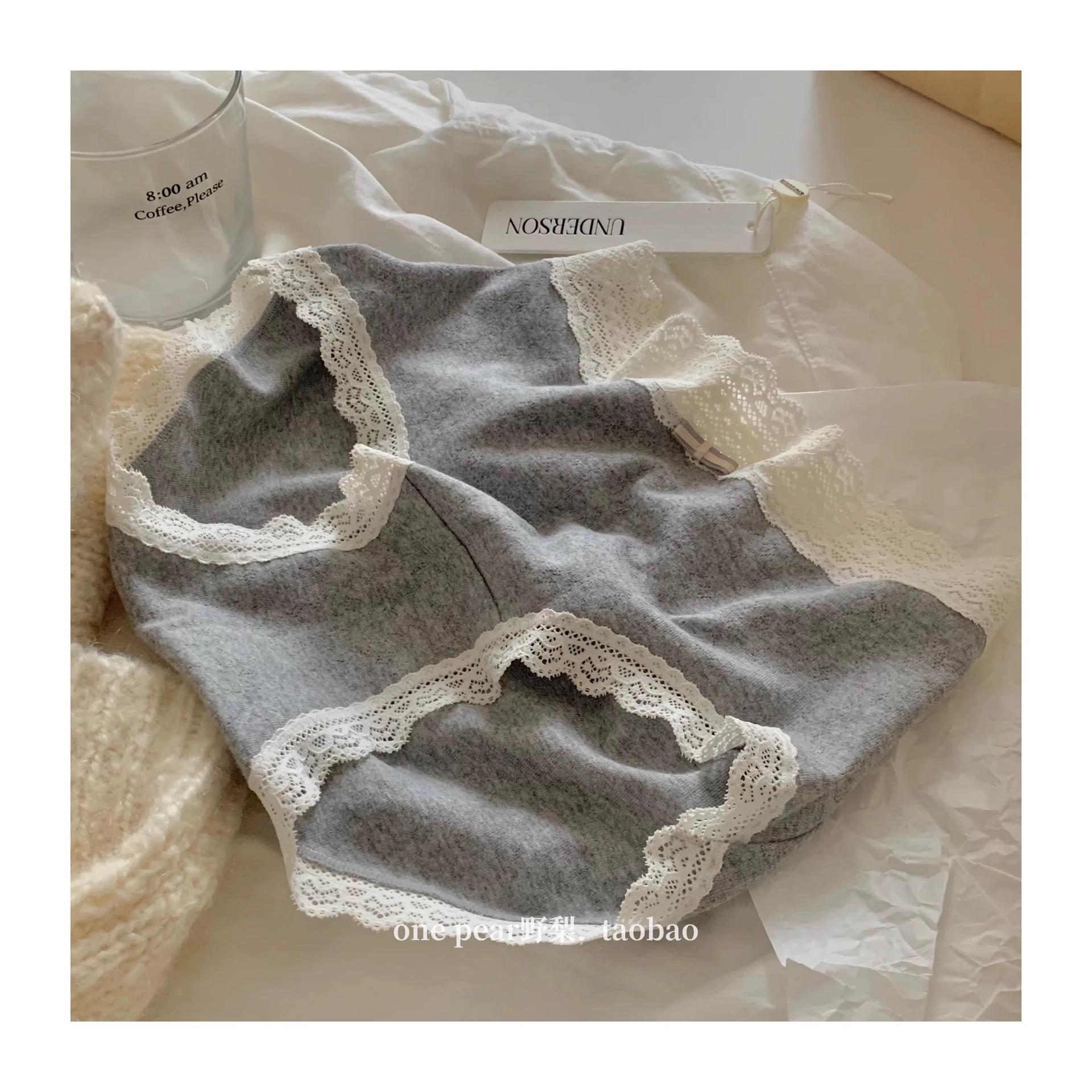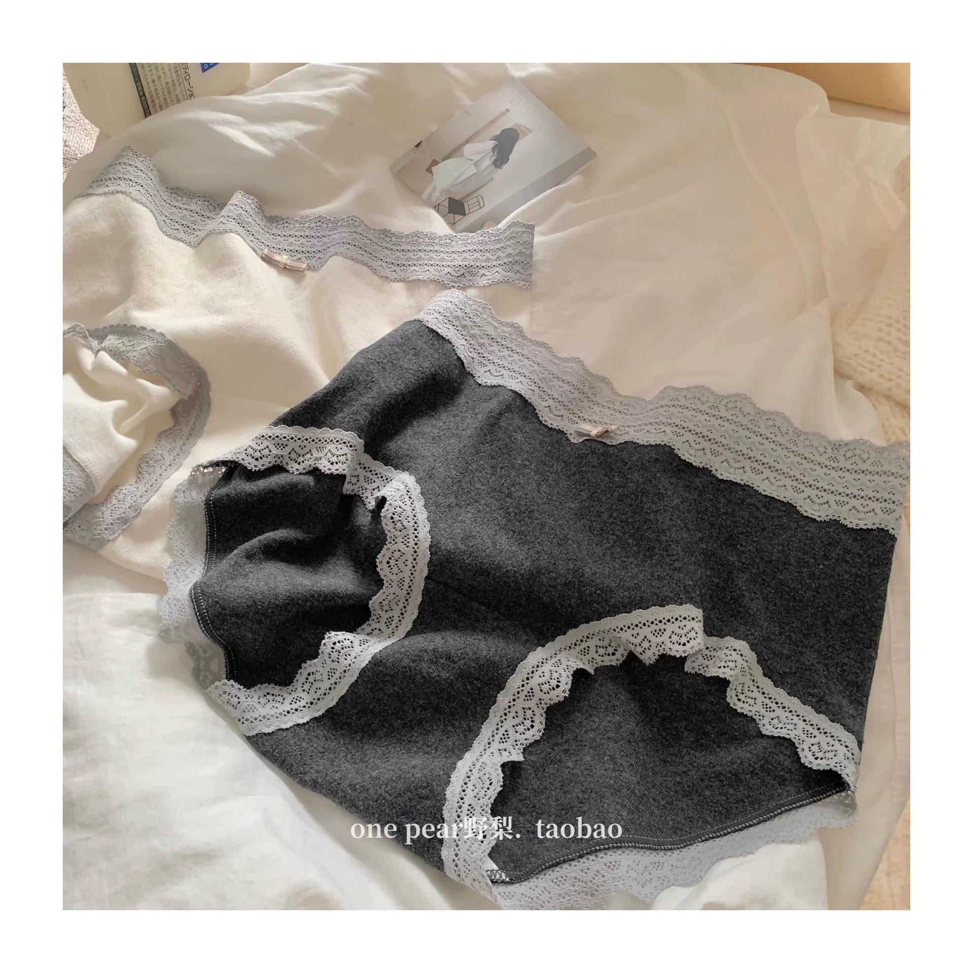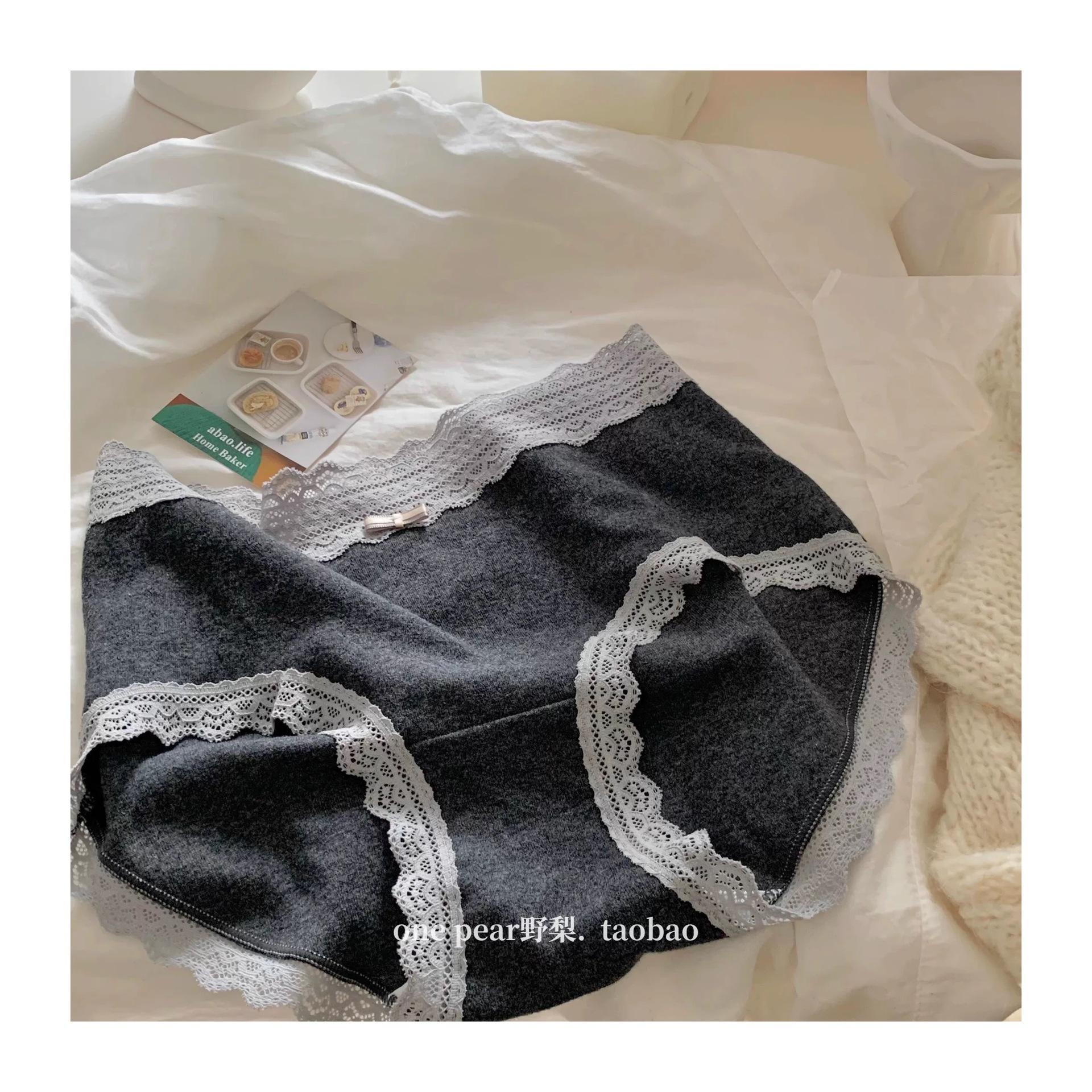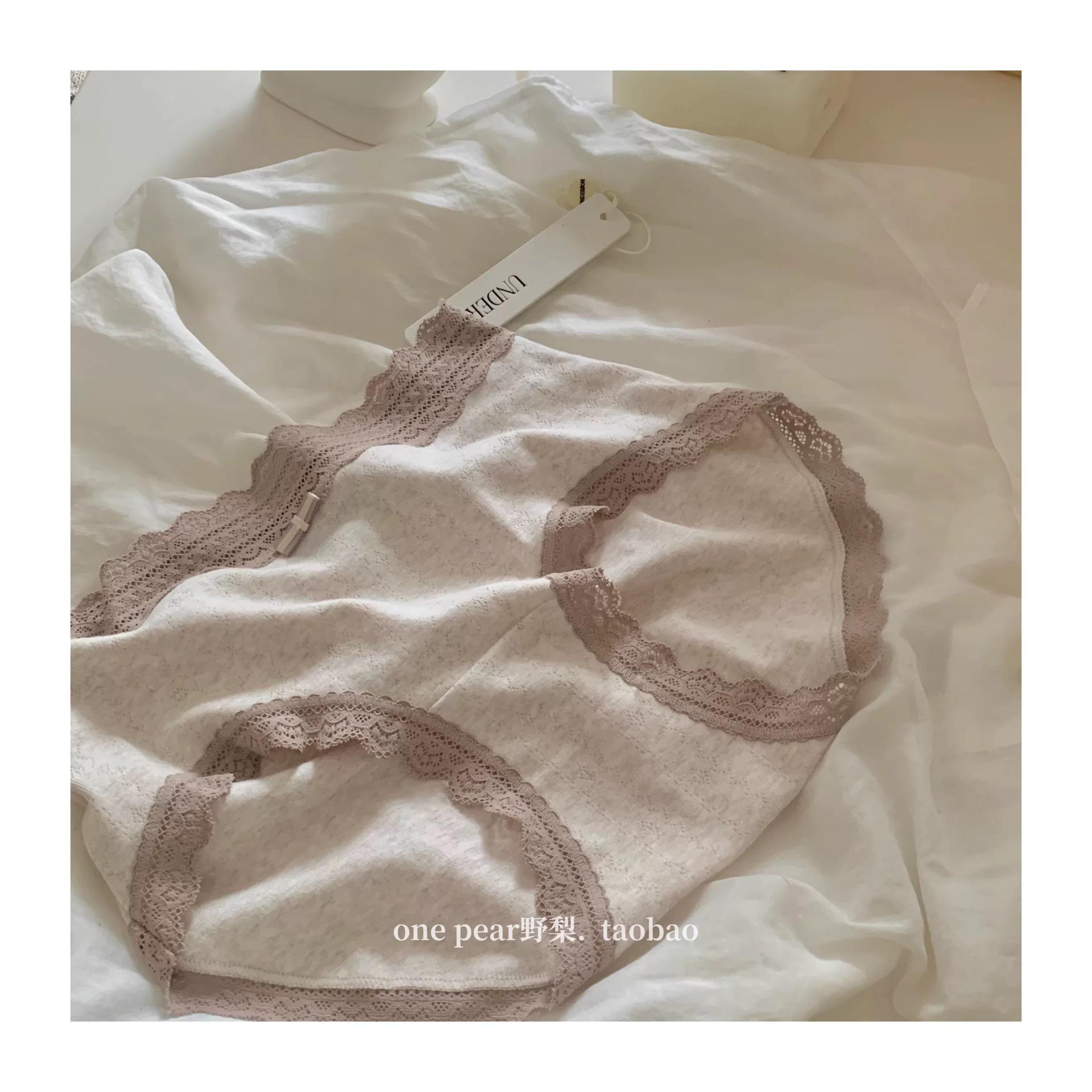 Encaje Romántico Francés Dulce Suave Transpirable 7A Algodón Puro Antibacterial Cintura Media-Alta Cubre Cadera Ropa Interior Calzones de Mujer