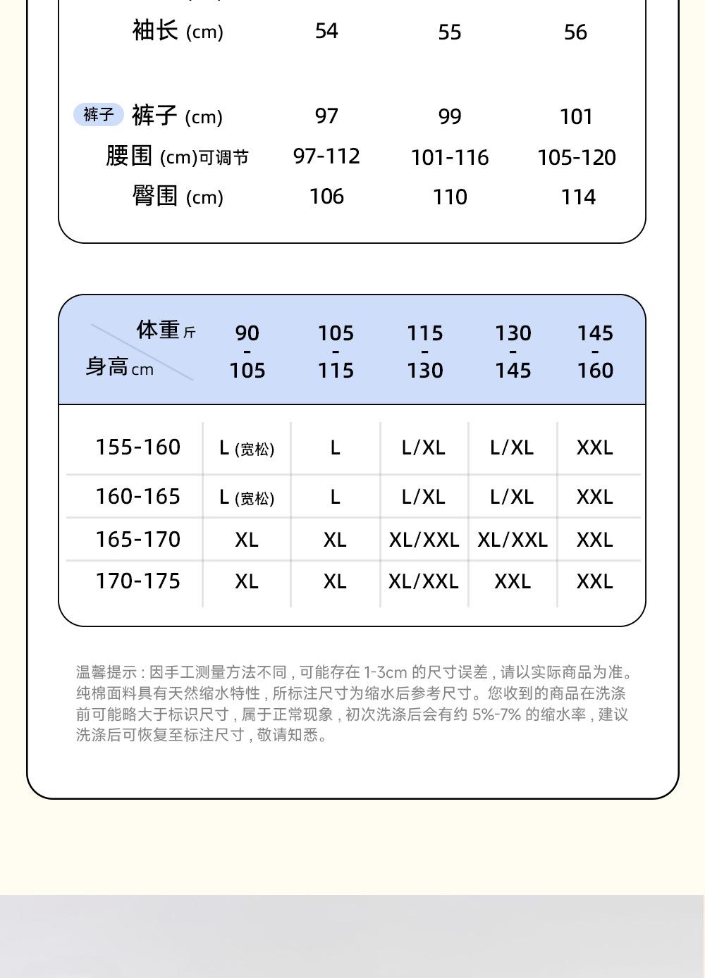 L size (100-130 catties), XL (130-160 catties), XXL (150-180 catties)