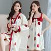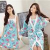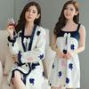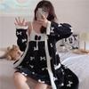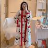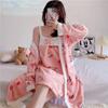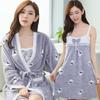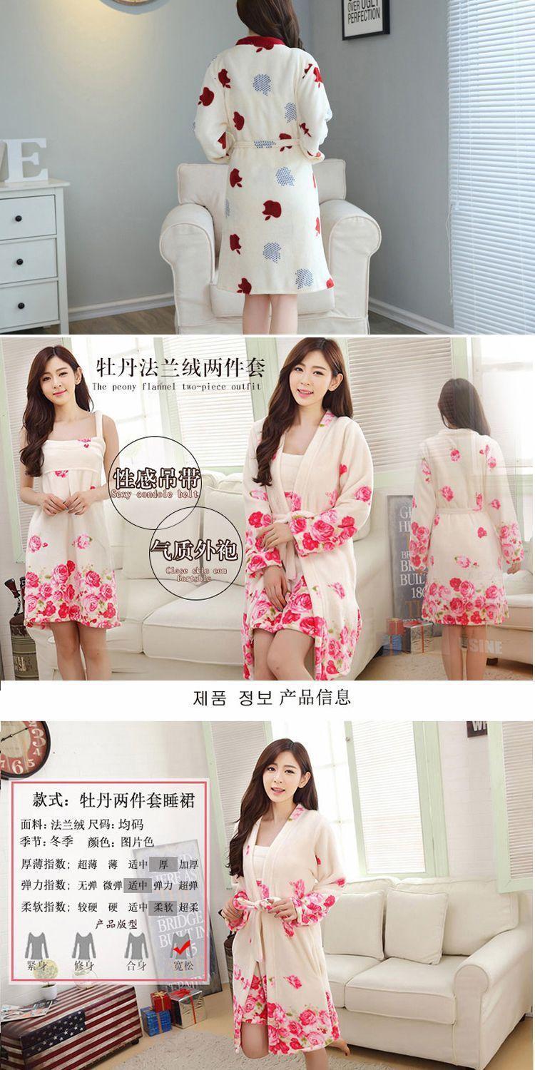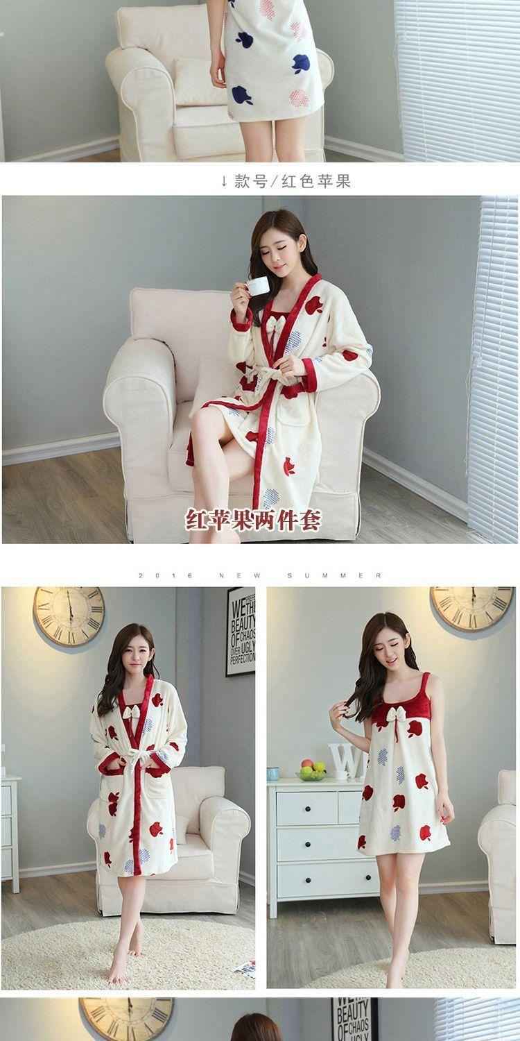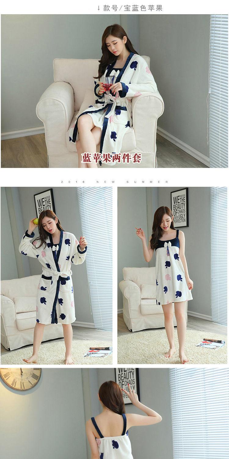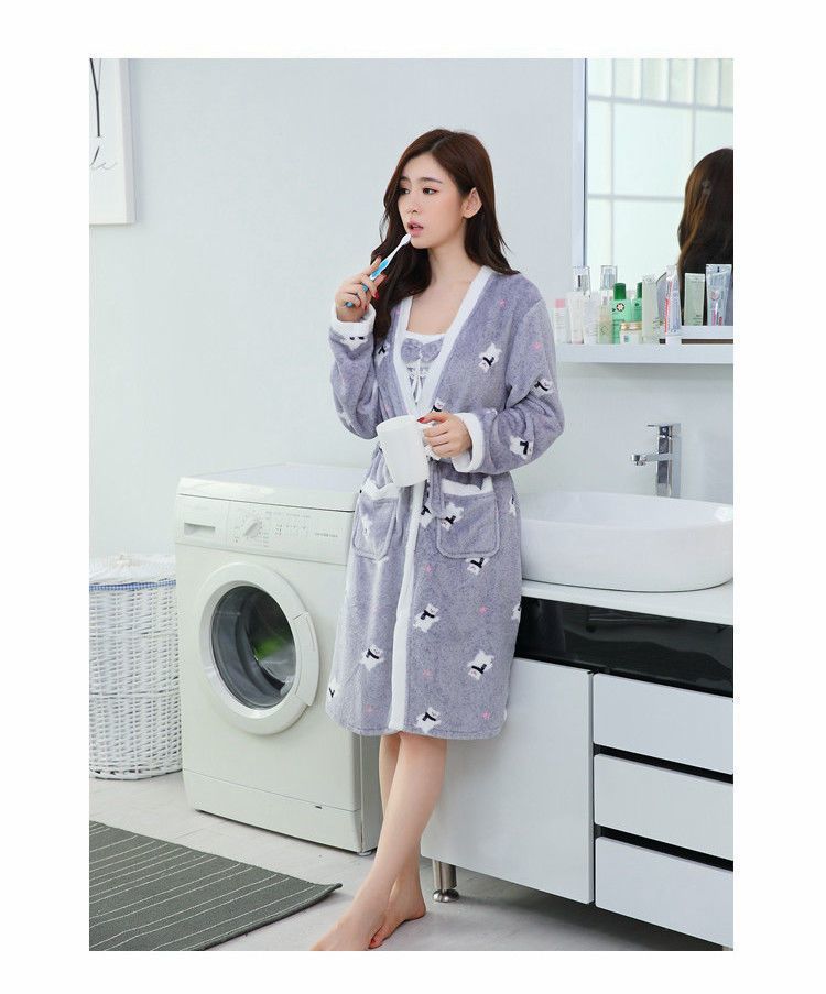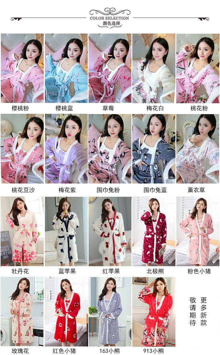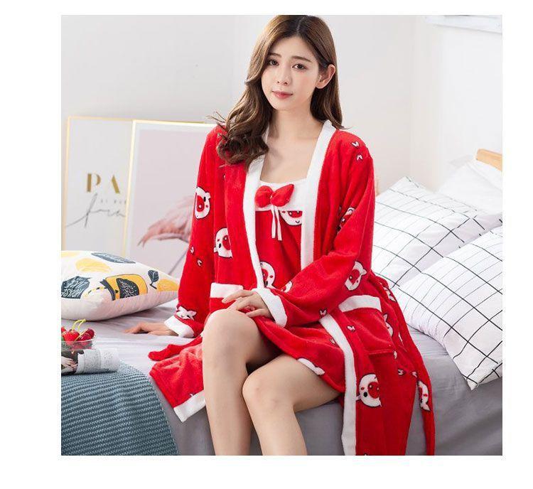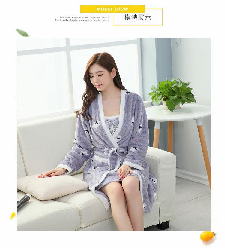 Pijamas de Mujer Otoño e Invierno Bata de Noche de Forro Polar Coral de Manga Larga Gruesa Linda Franela Conjunto de Dos Piezas Bata Ropa para el Hogar