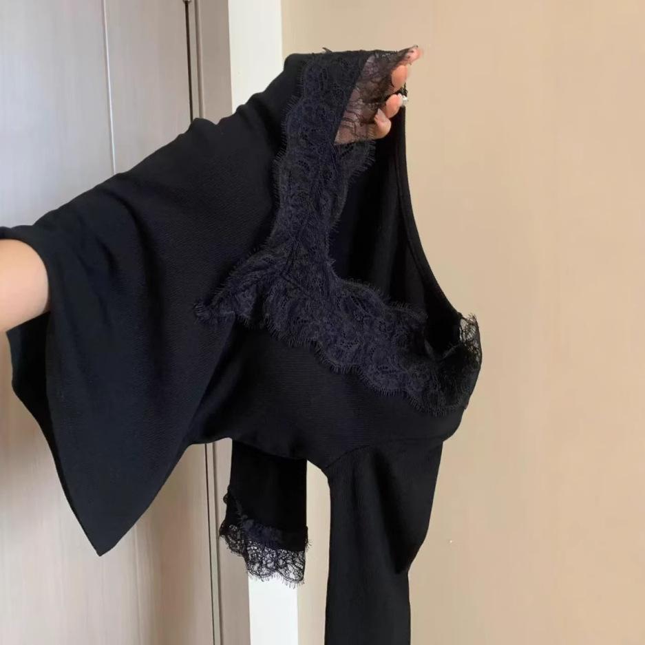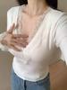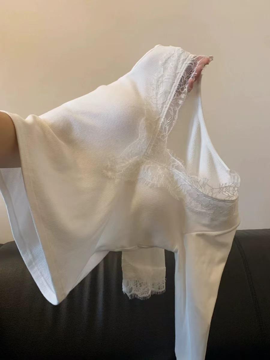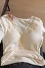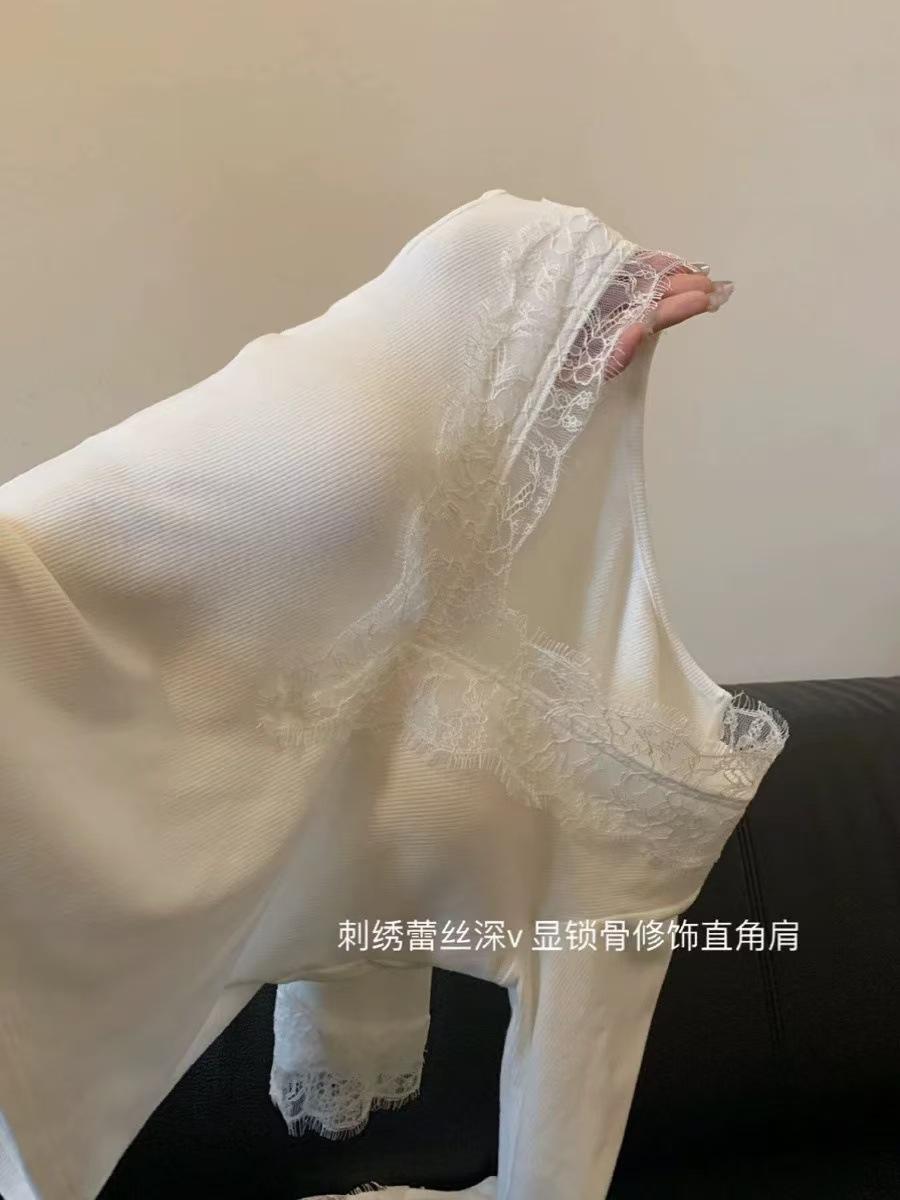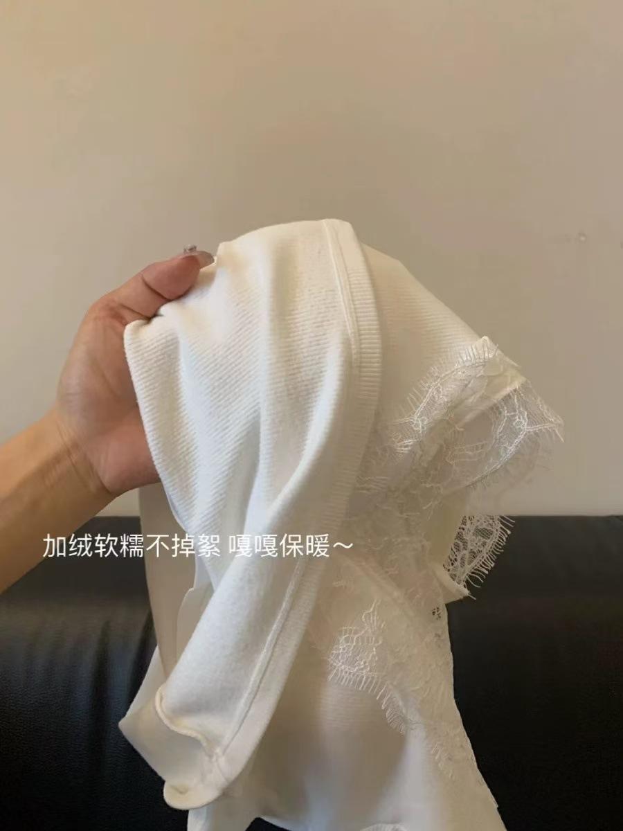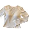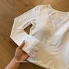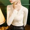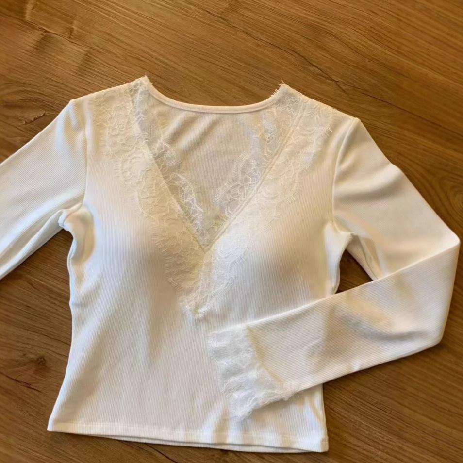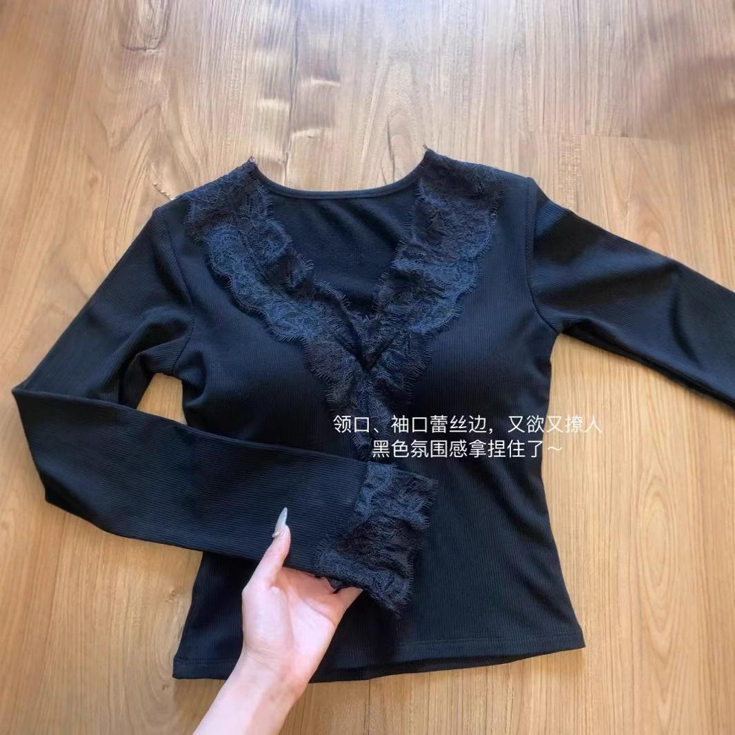 Playera sexy de encaje con cuello en V y manga larga, camisa básica para mujer, estilo nuevo de otoño, de alta gama, ajustada, cálida, cepillada