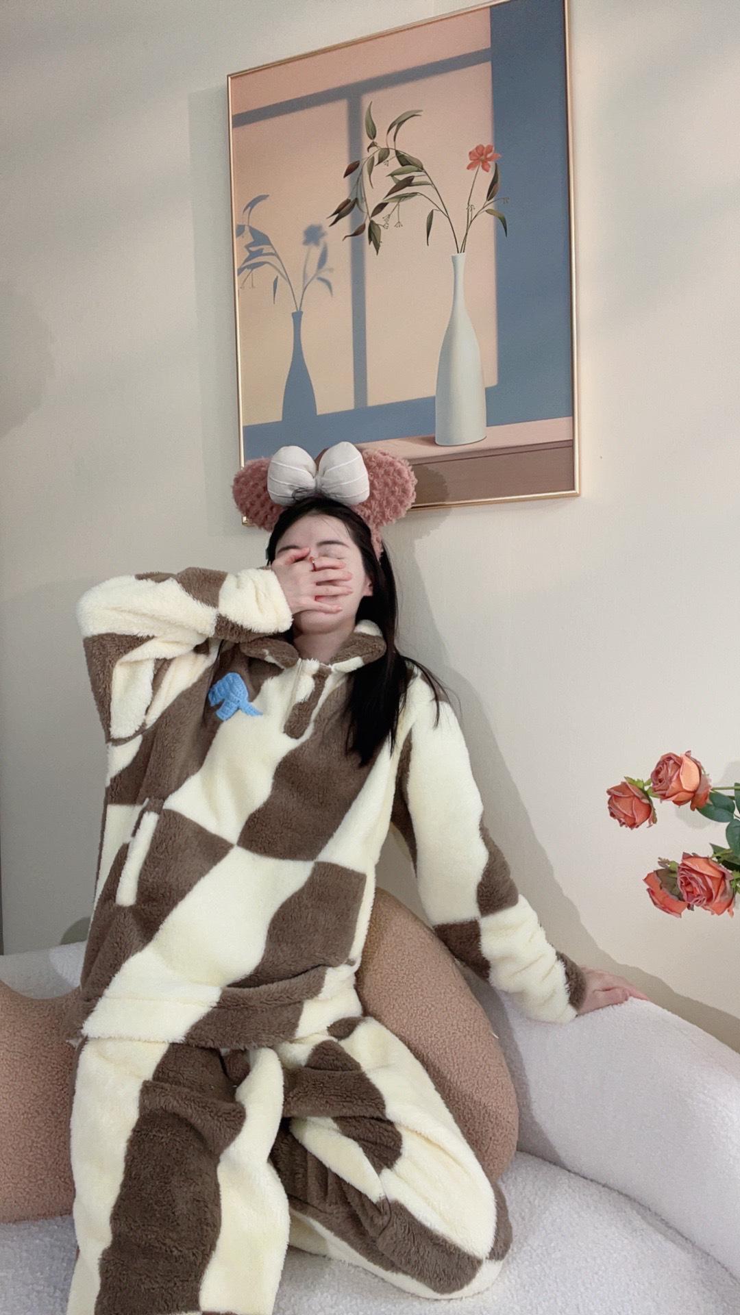 Pijamas de Invierno para Mujer de Forro Polar Coral con Forro Polar, Traje Grueso de Dos Piezas, Lindo Dulce Otoño e Invierno, Conjunto de Ropa para el Hogar de Felpa