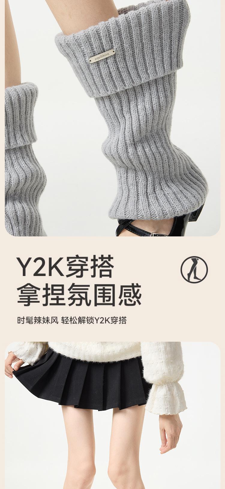 Calentadores de Pierna Arrugados Etiqueta Dorada de Terciopelo de Ciervo para Mujer Otoño Invierno Tejidos Adelgazantes Chica Sexy Versátiles Simples Calentadores de Pierna Calcetines Cálidos Mujer