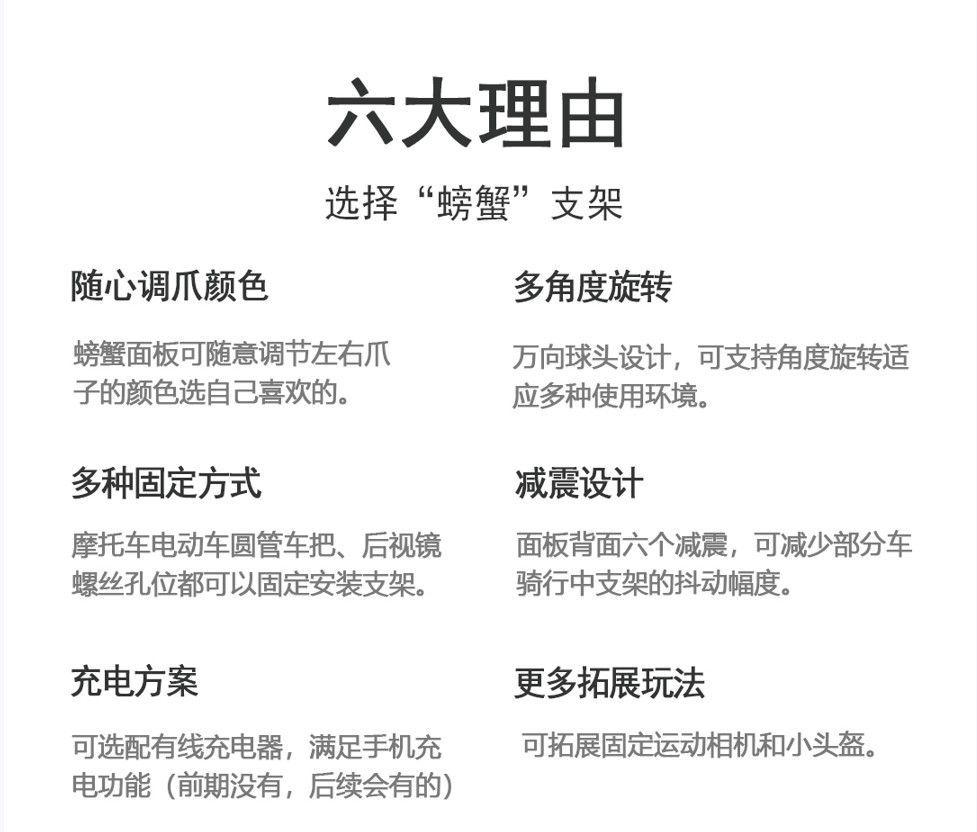 2024 productos genuinos Soporte para teléfono móvil Cangrejo de color Conmemorativo Amortiguador Motocicleta Vehículo eléctrico Antirrobo Cinco soportes iguales