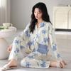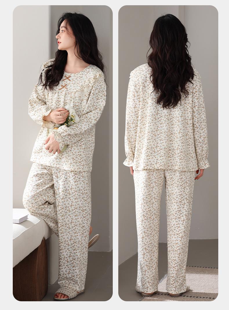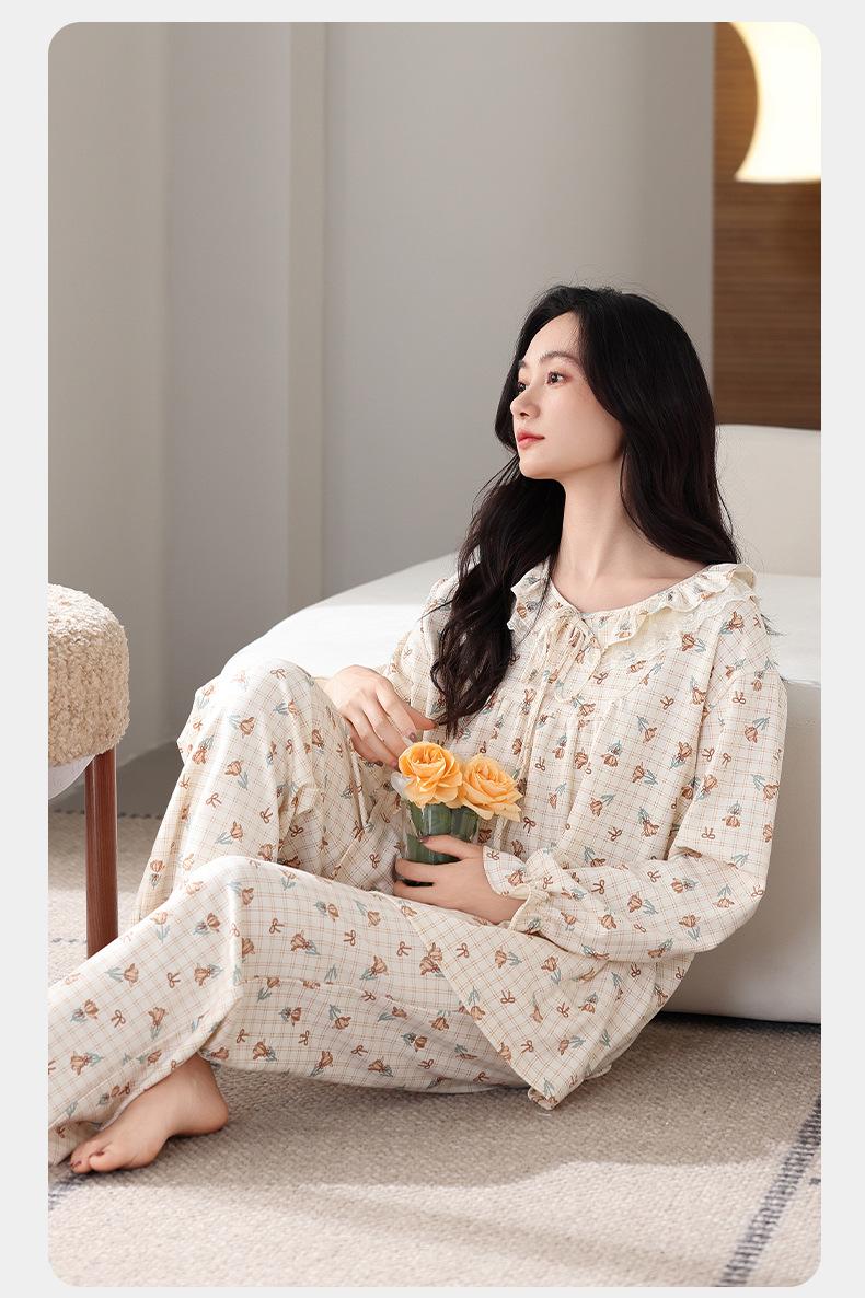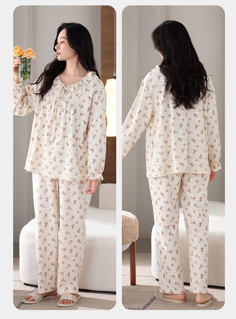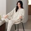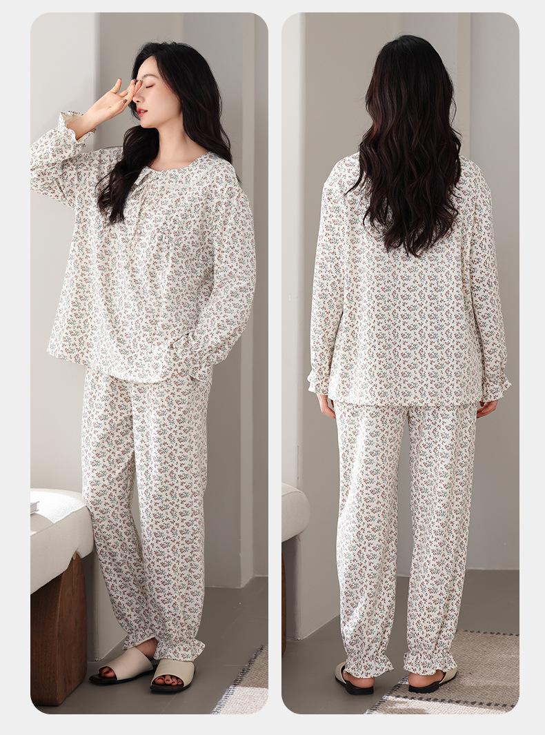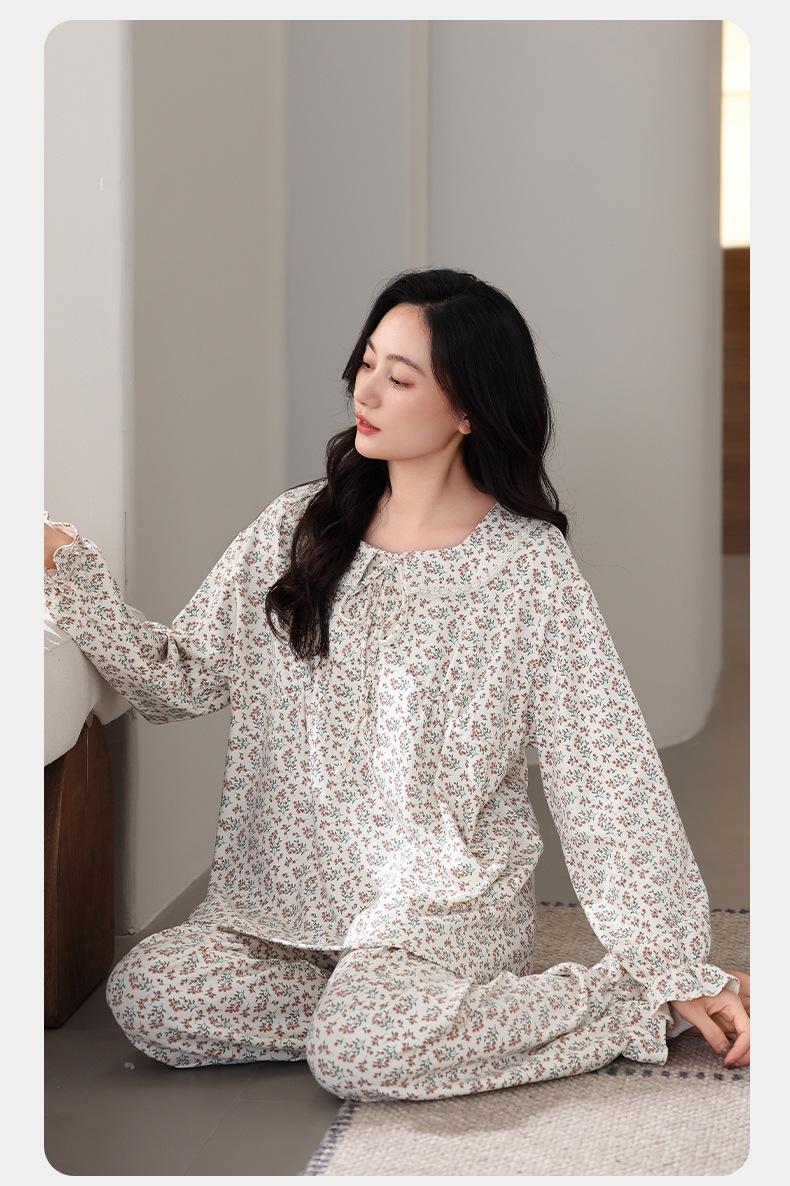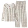 Pijamas de Primavera y Otoño para Mujer Otoño Algodón Puro Manga Larga Ropa de Casa Otoño Mujer Madura Jersey Traje de Algodón Puro