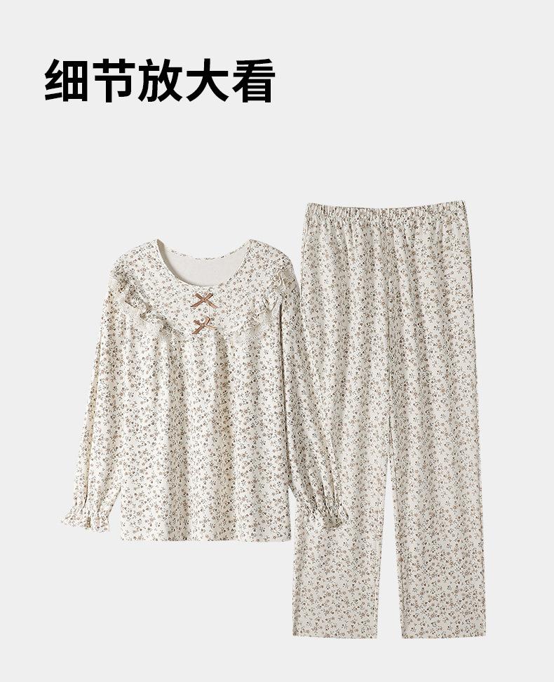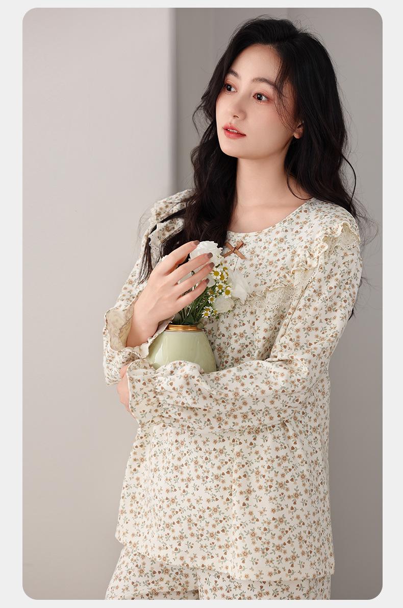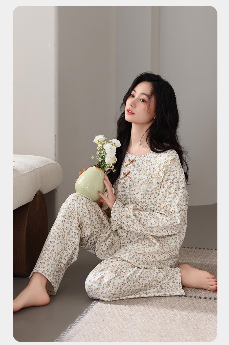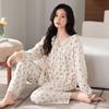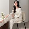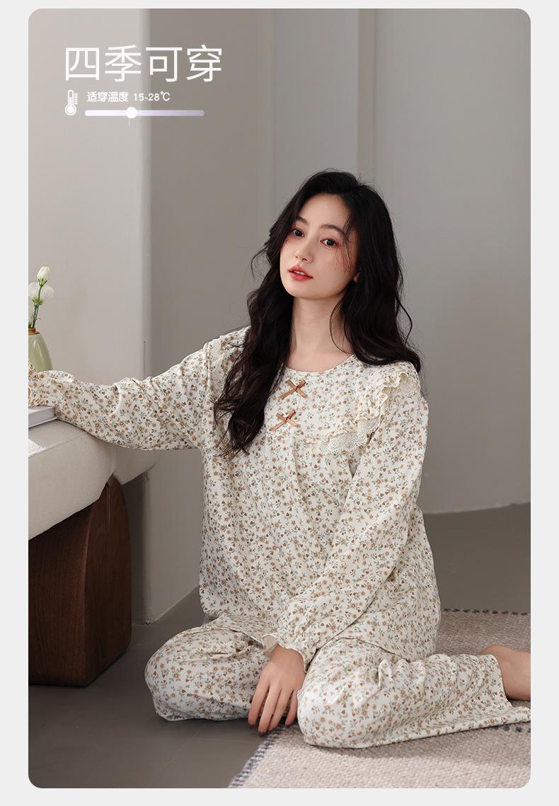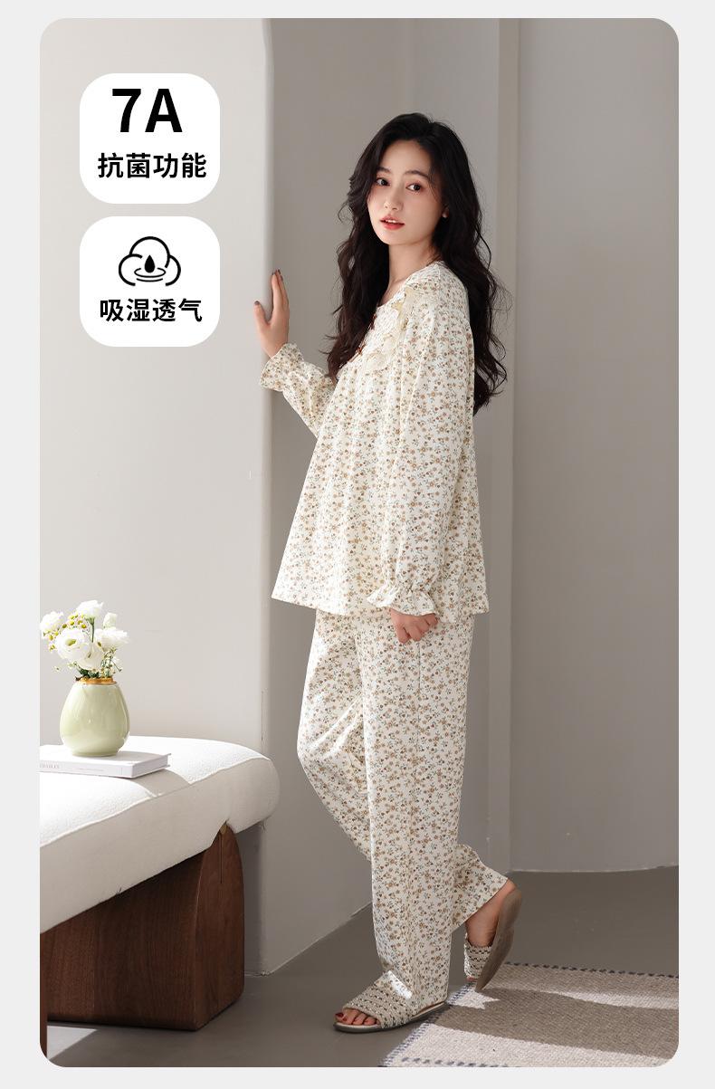 Pijamas de Primavera y Otoño para Mujer Otoño Algodón Puro Manga Larga Ropa de Casa Otoño Mujer Madura Jersey Traje de Algodón Puro