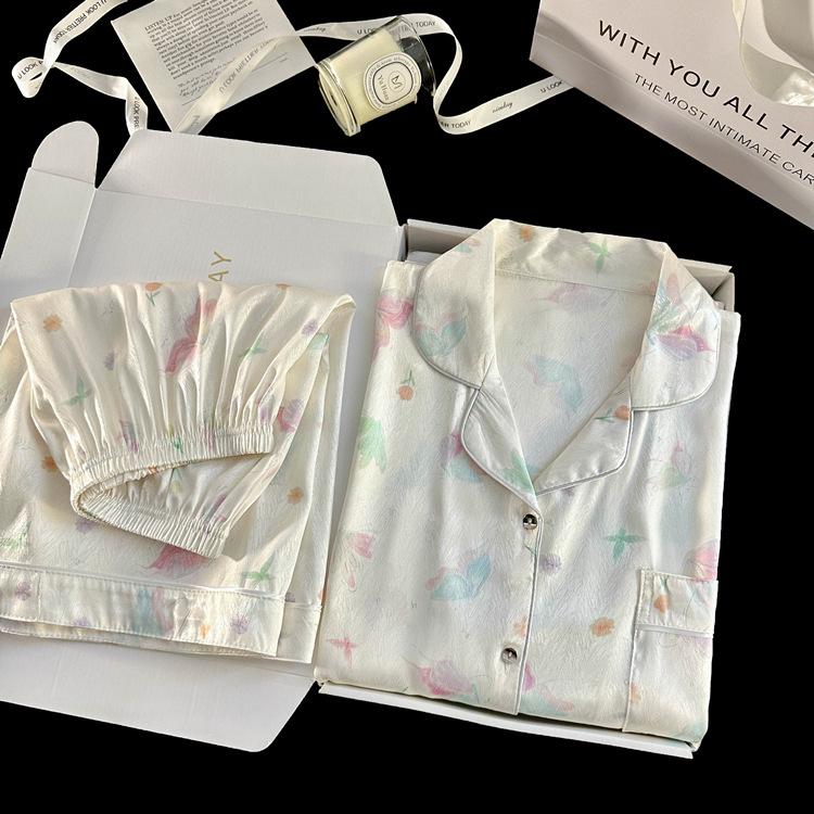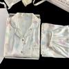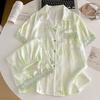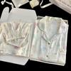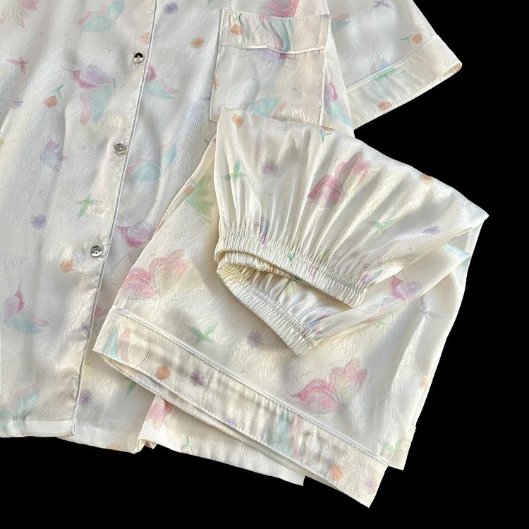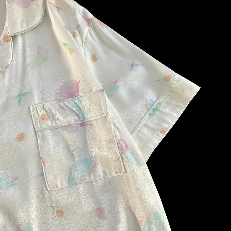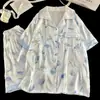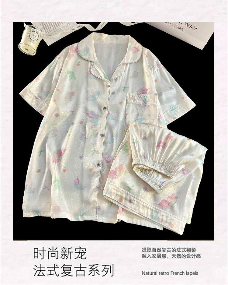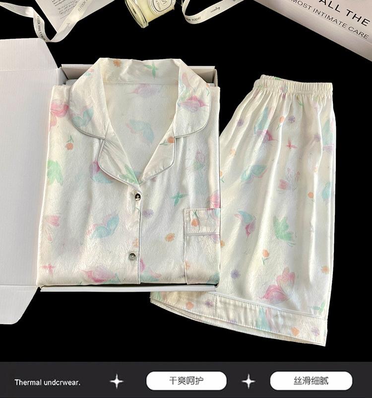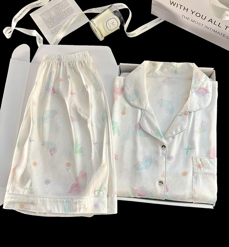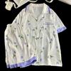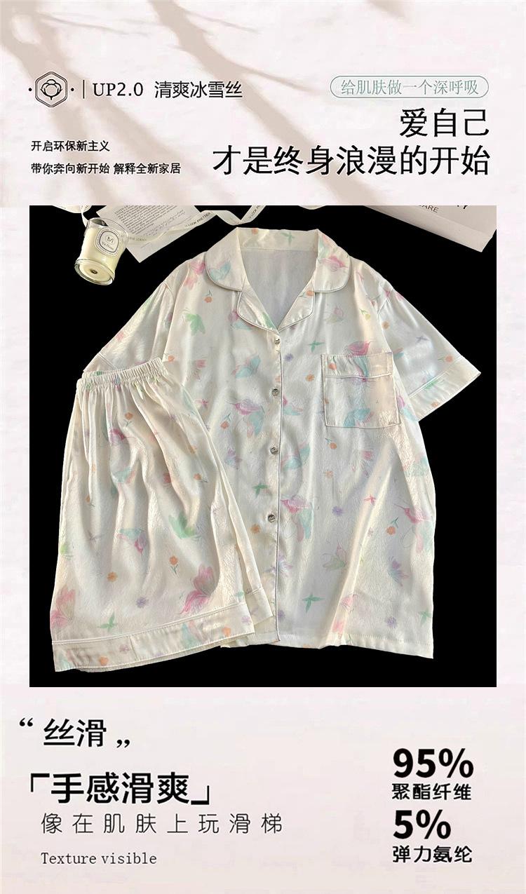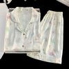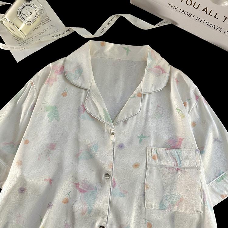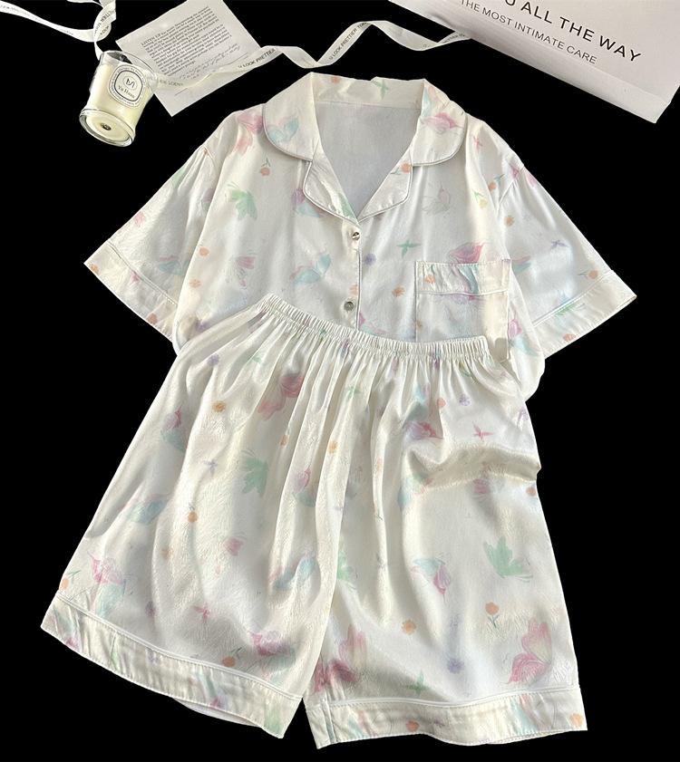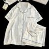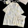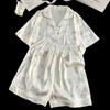 2025 Nuevo Verano Manga Corta Shorts Pijama de Seda Hielo y Nieve Cárdigan Solapa Dulce Ropa para el Hogar Traje Delgado