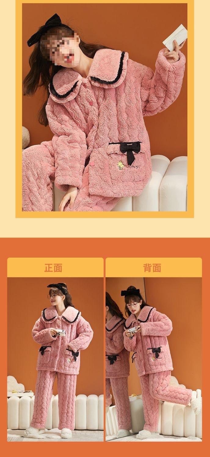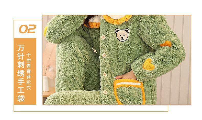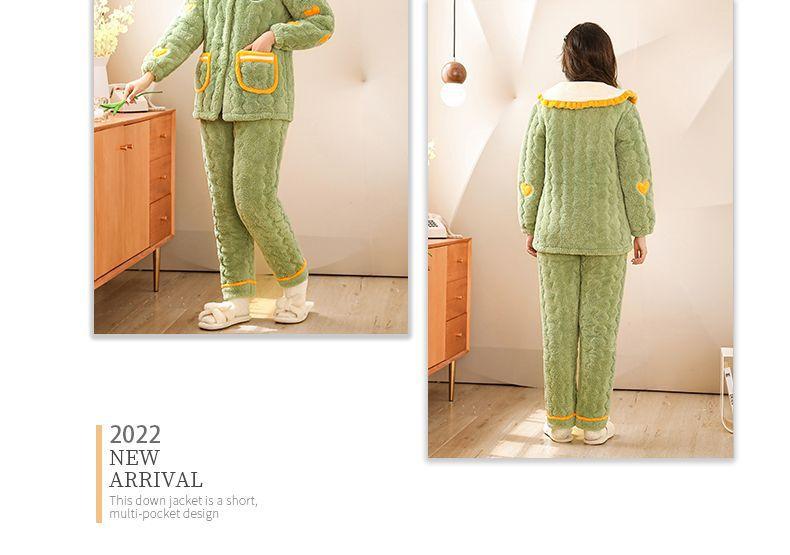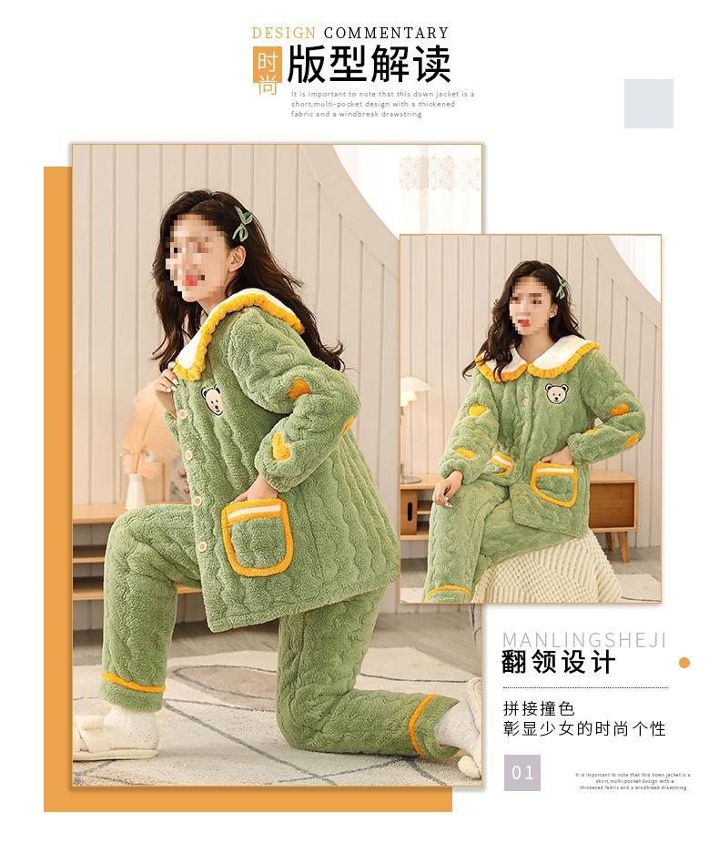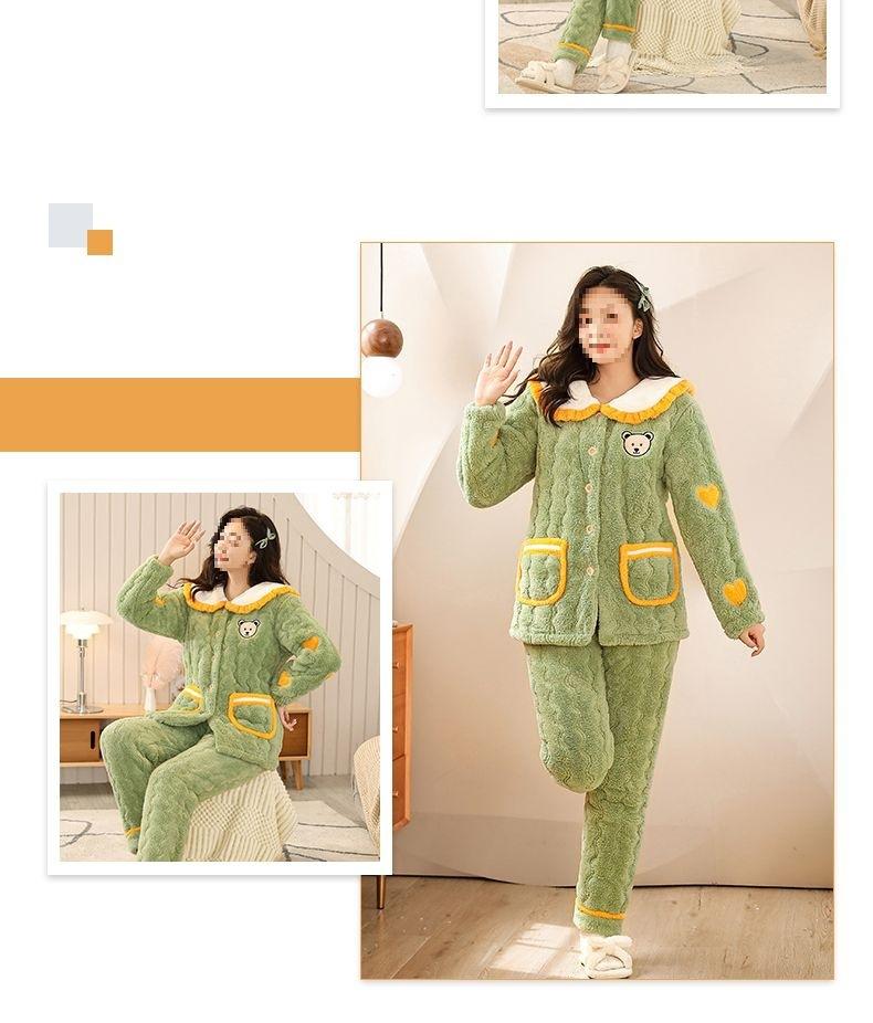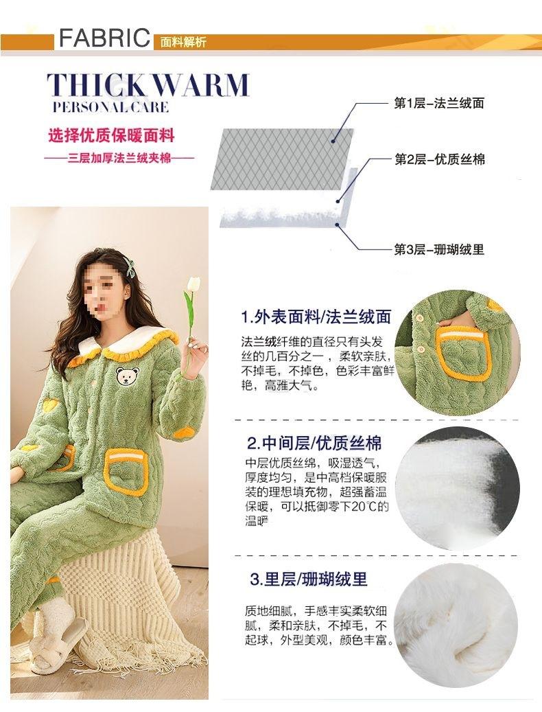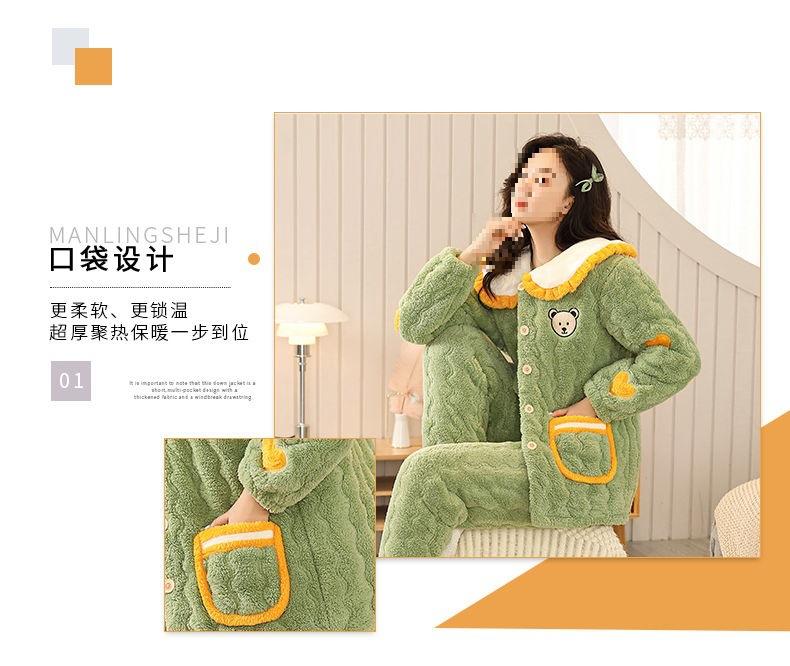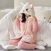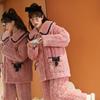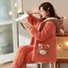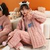 Pijamas de Invierno para Mujer Forro Polar Coral Espesado y Franela Estilo Otoño e Invierno Lindo Ropa de Casa Set de Invierno