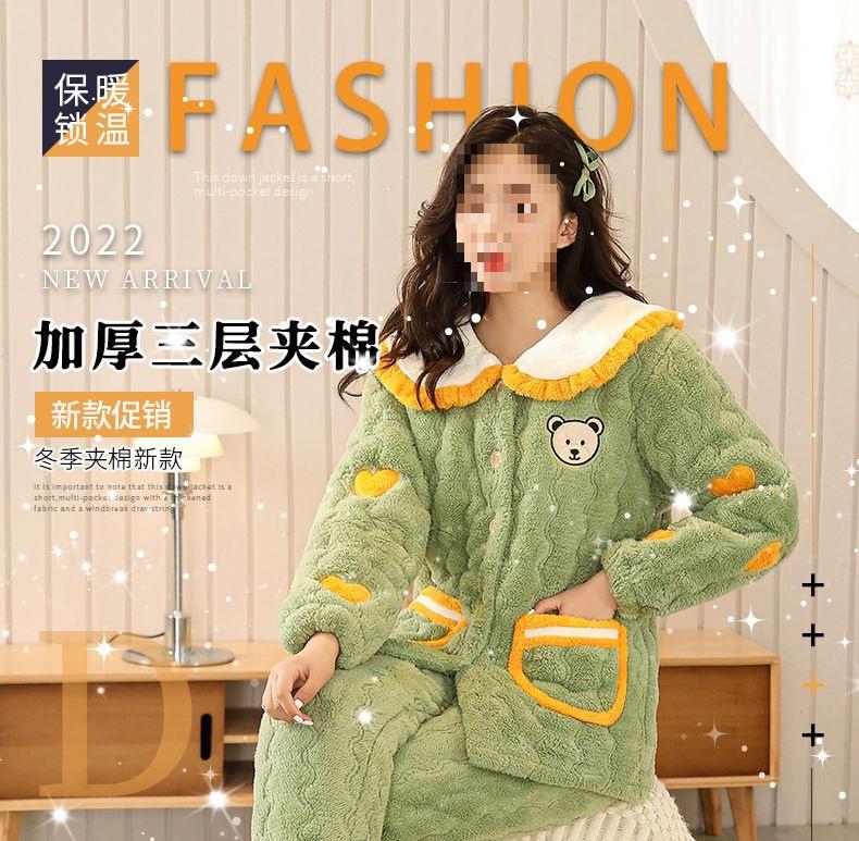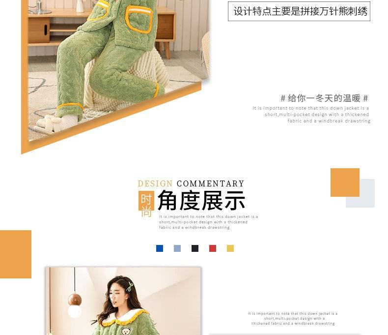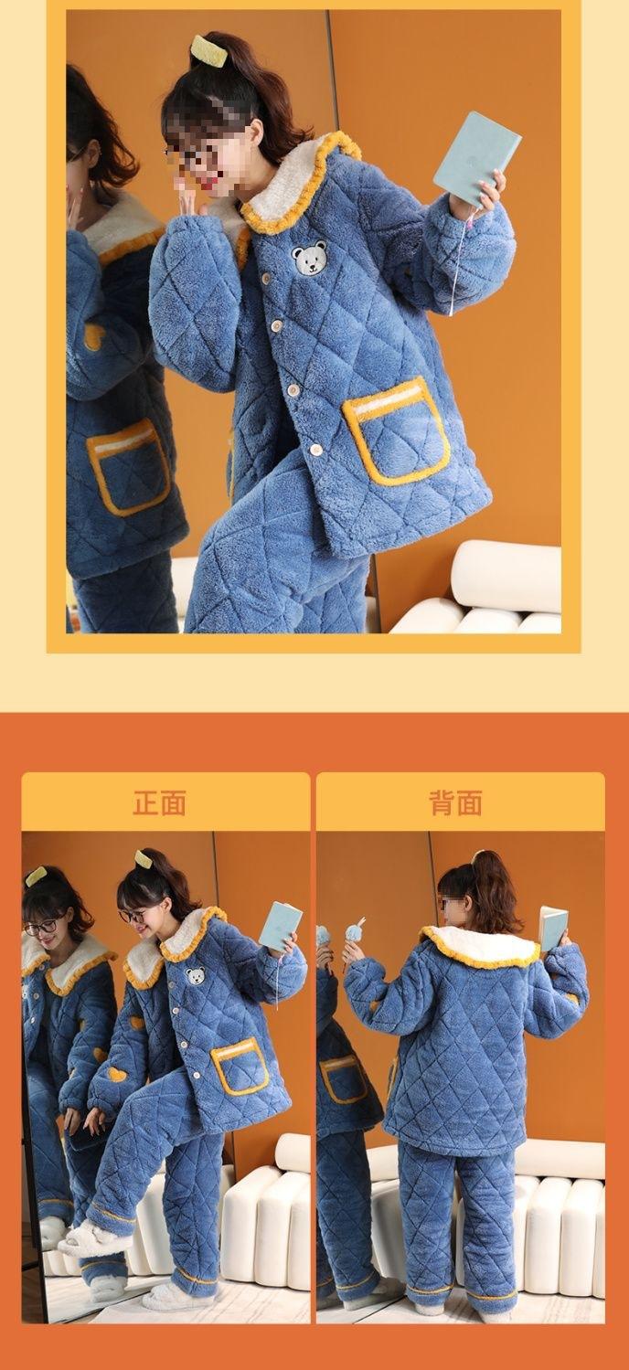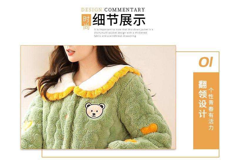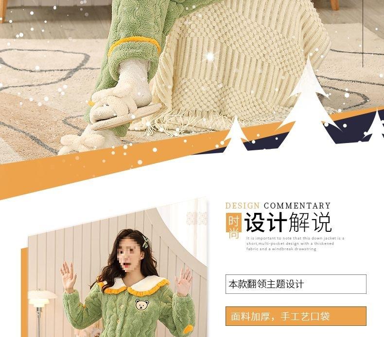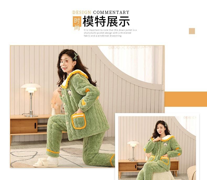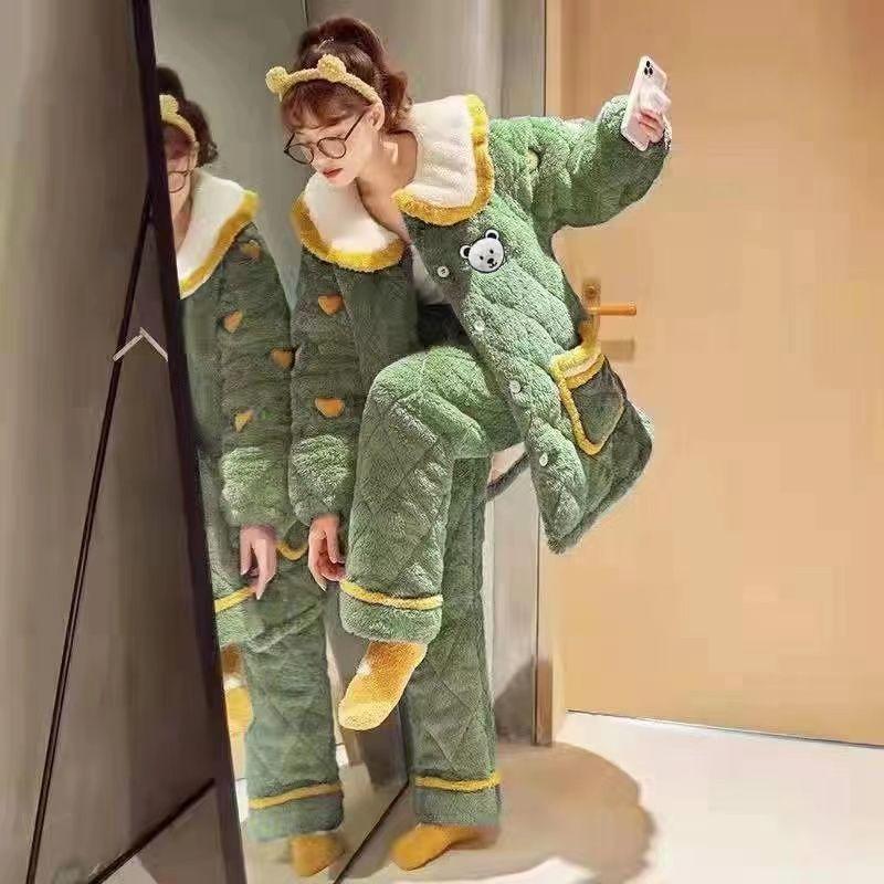 Pijamas de Invierno para Mujer Forro Polar Coral Espesado y Franela Estilo Otoño e Invierno Lindo Ropa de Casa Set de Invierno